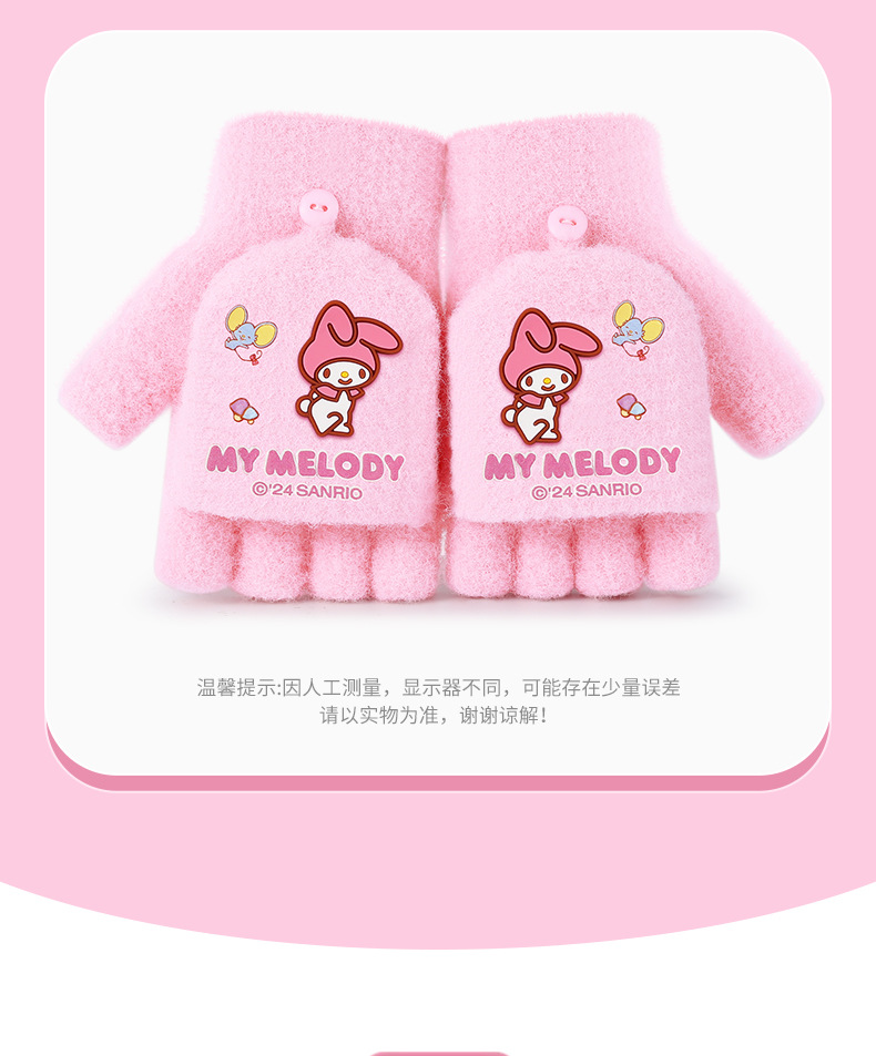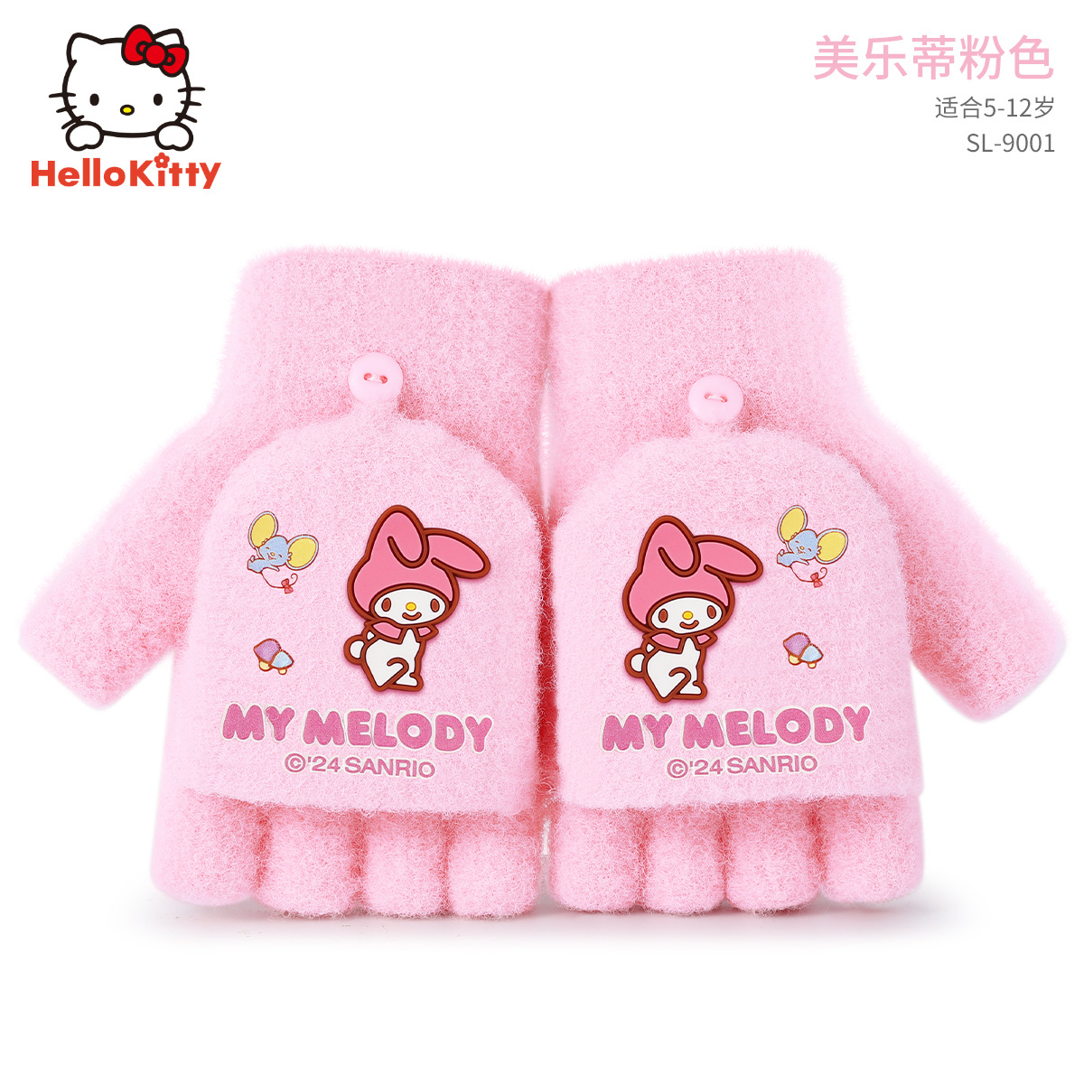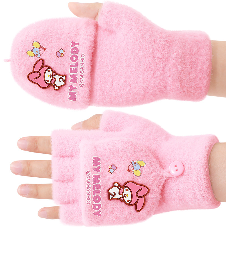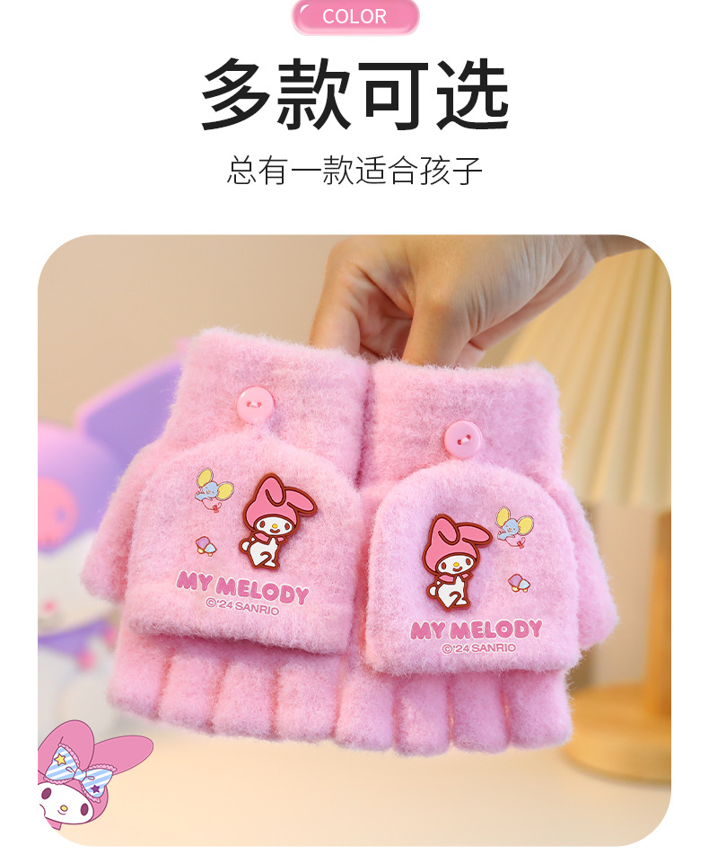 멜로디 어린이 장갑 쿨로 미 겨울 따뜻한 가을과 겨울 어린이 소녀 2024 새로운 반 손가락 플립 쓰기