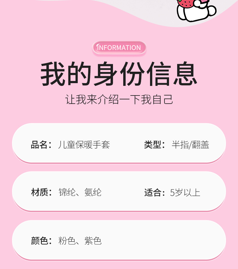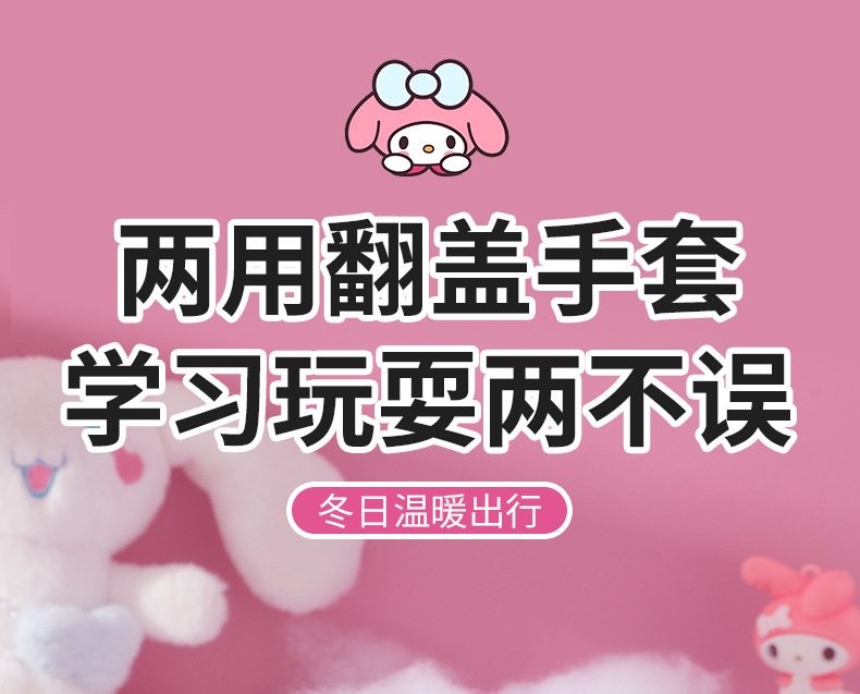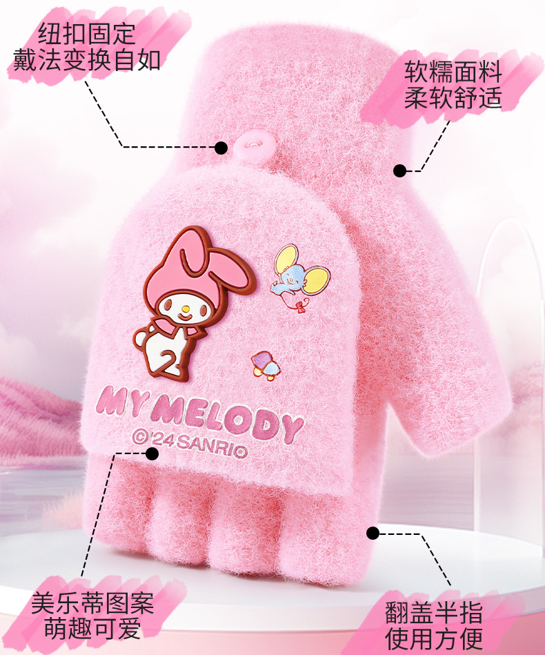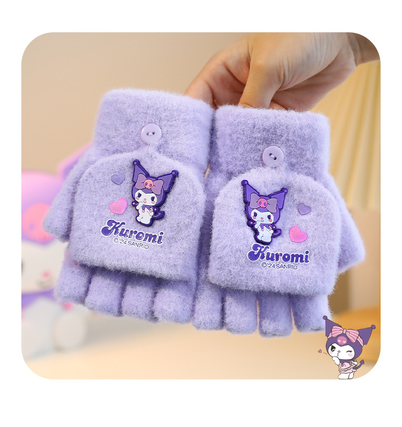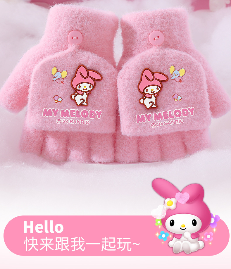 멜로디 어린이 장갑 쿨로 미 겨울 따뜻한 가을과 겨울 어린이 소녀 2024 새로운 반 손가락 플립 쓰기