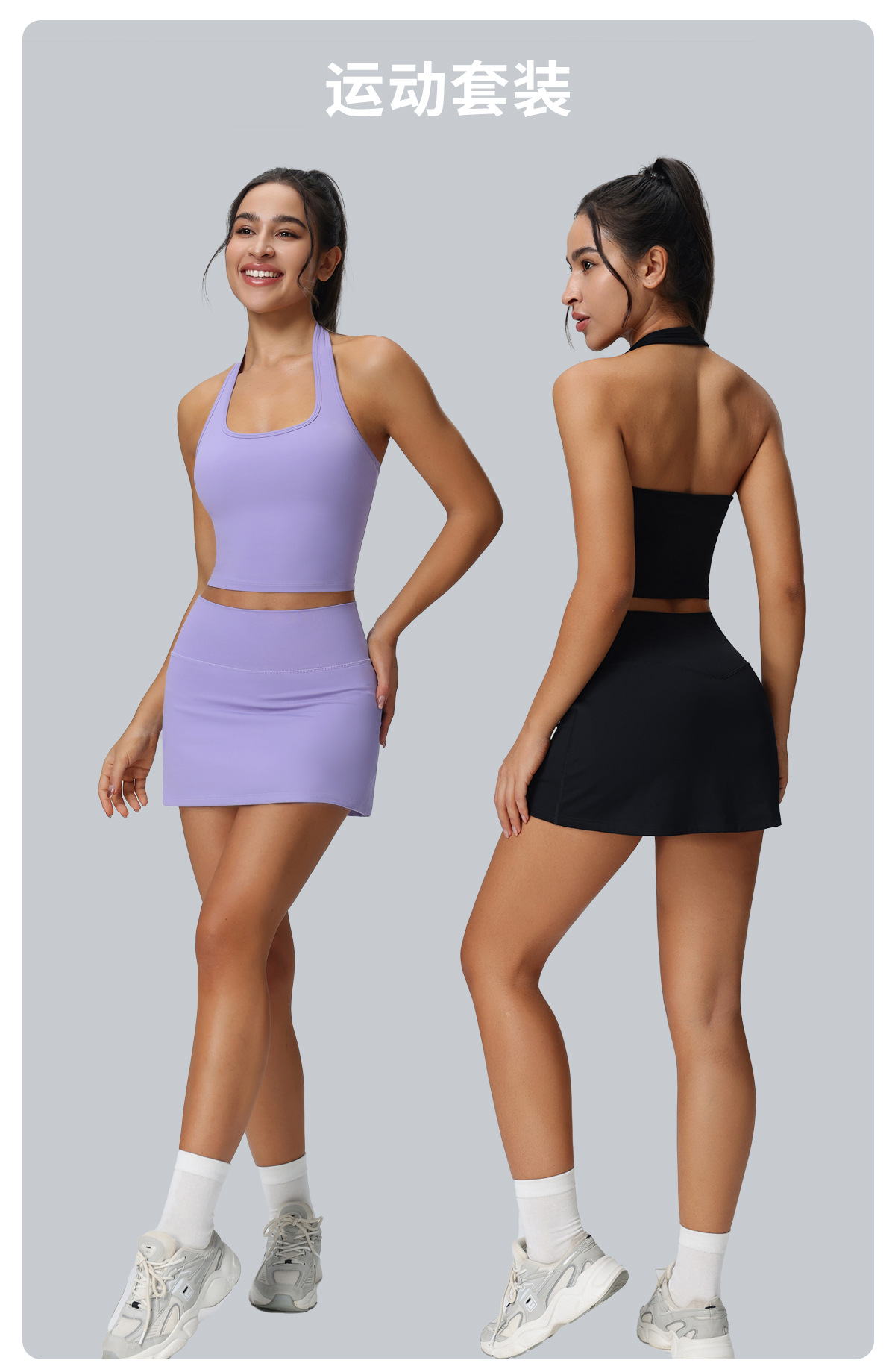 국경 간 새로운 테니스 치마 세트 여성 포켓 운동복 투피스 야외 달리기 타이트 요가 세트