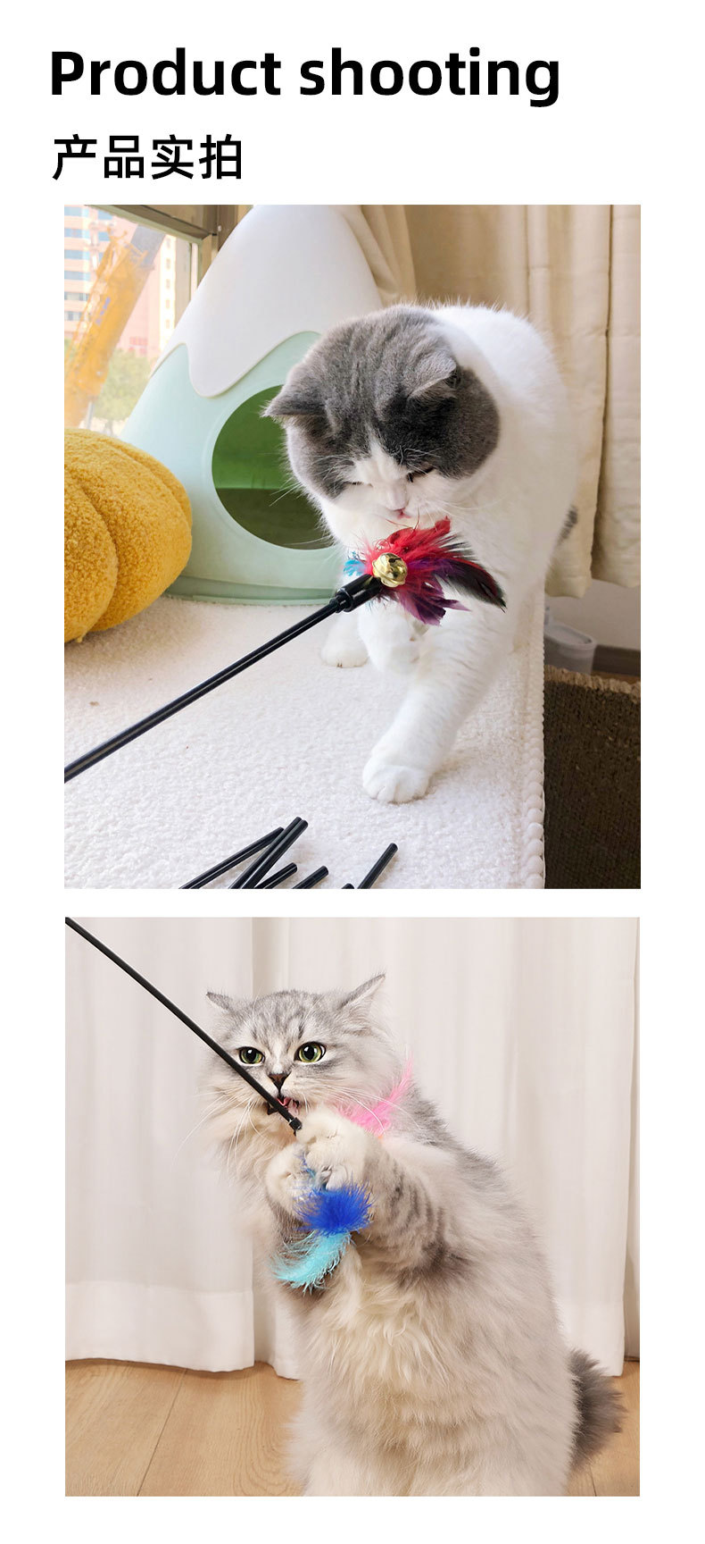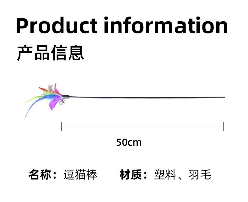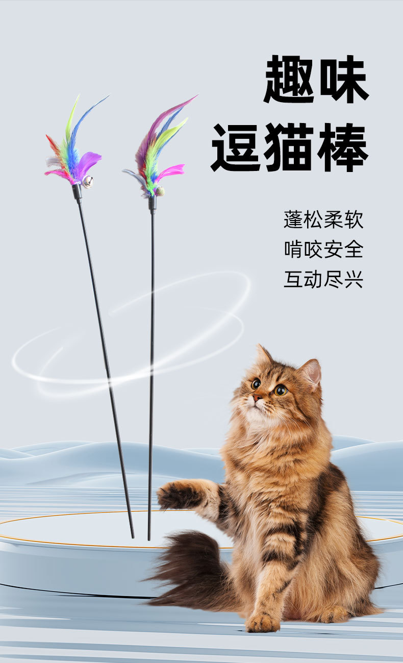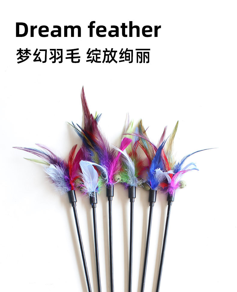 【亚马逊跨境爆款】七彩羽毛逗猫棒