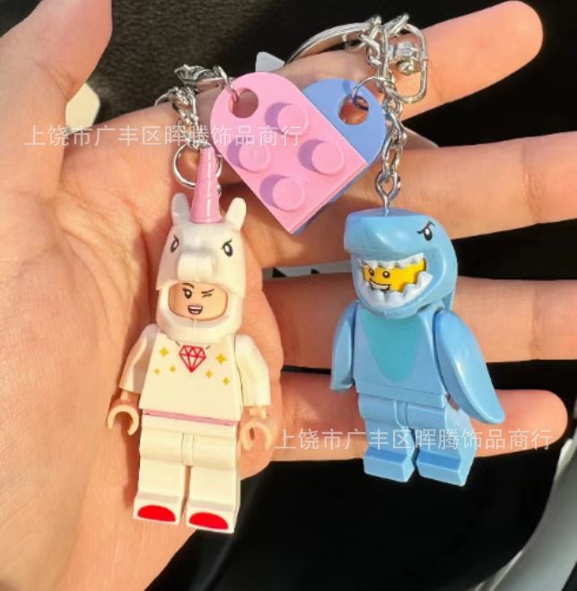 하트 블록 배트맨 키체인 가방 장식품 상어 아기 그웬 스파이더맨 하트 블록 장식품