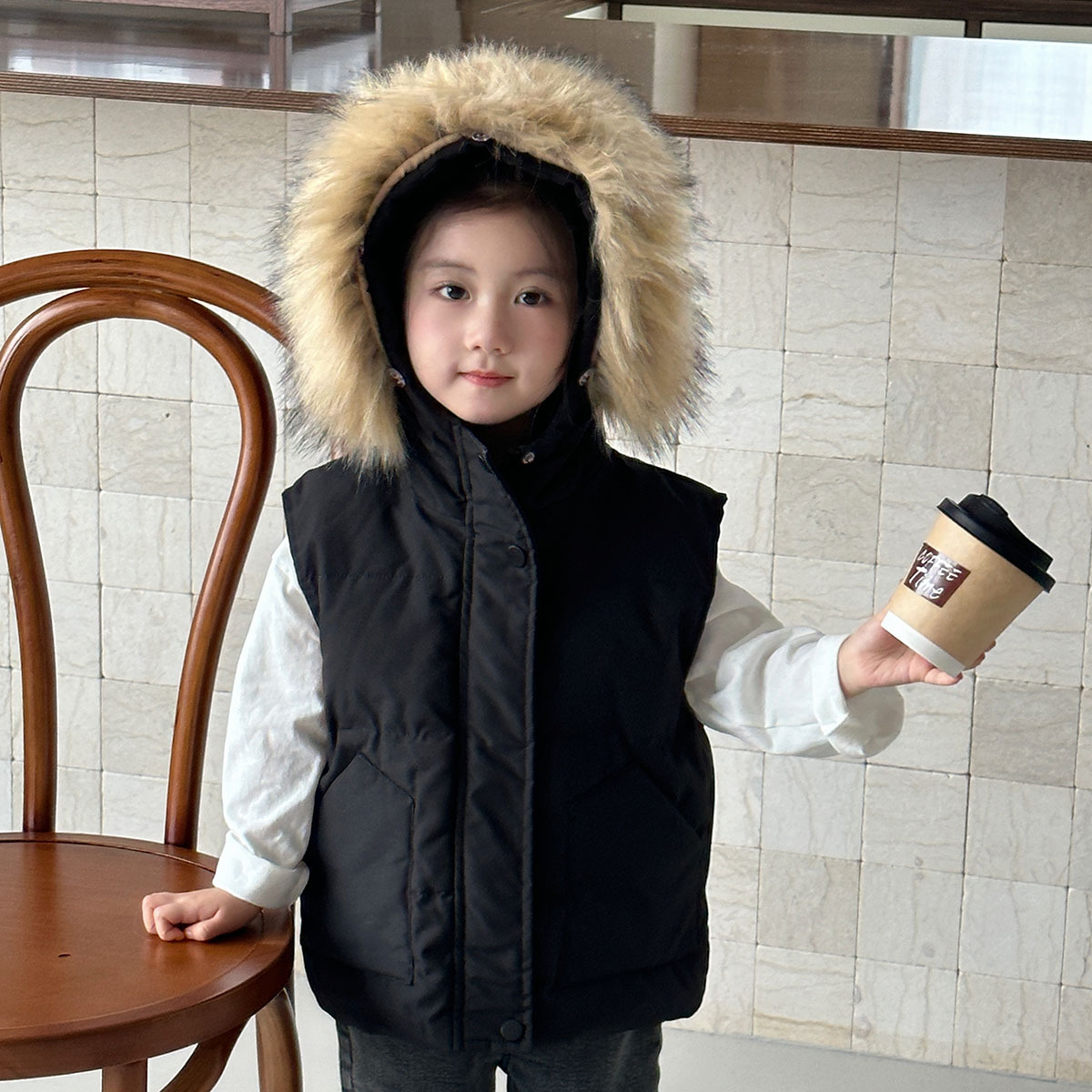 어린이 다운 조끼 겨울 소녀 두꺼운 후드 울 칼라 따뜻한 소년의 2024 새 겨울 코트스토어 가기