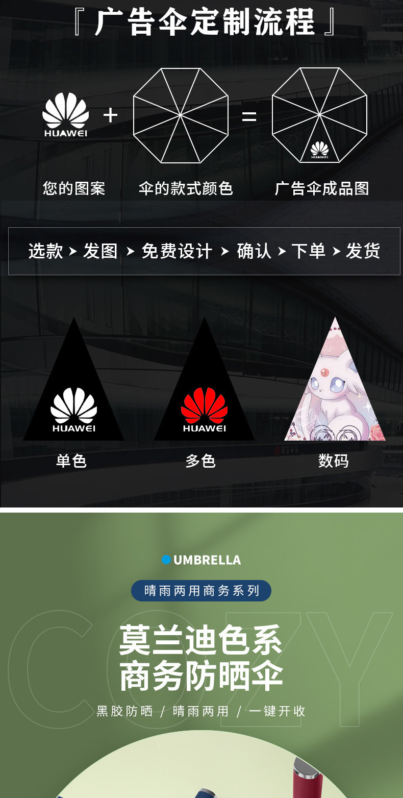 우산 맞춤 제작 70% off 자동 접이식 블랙 글로시 선양산 로고 인쇄 가능 양산 겸용 우산