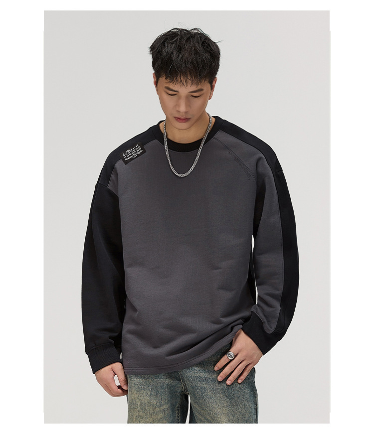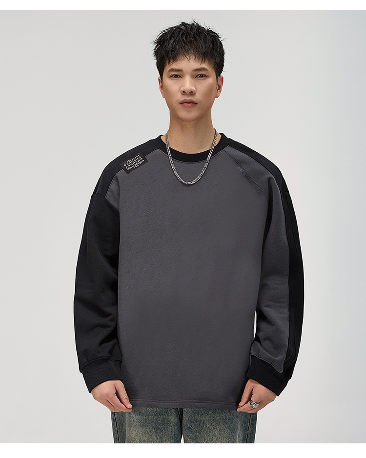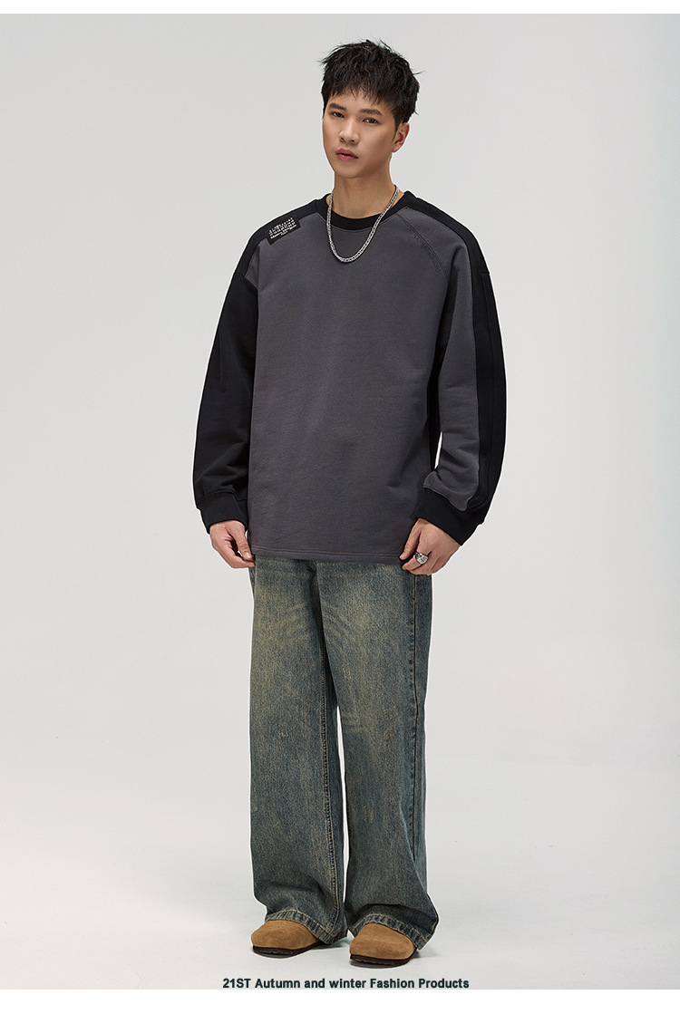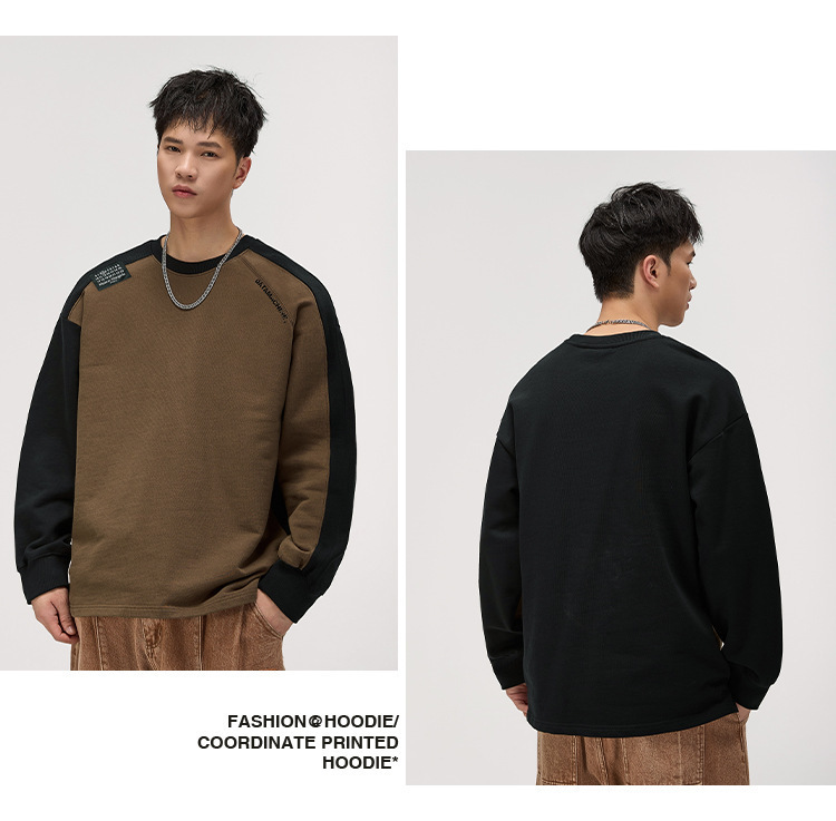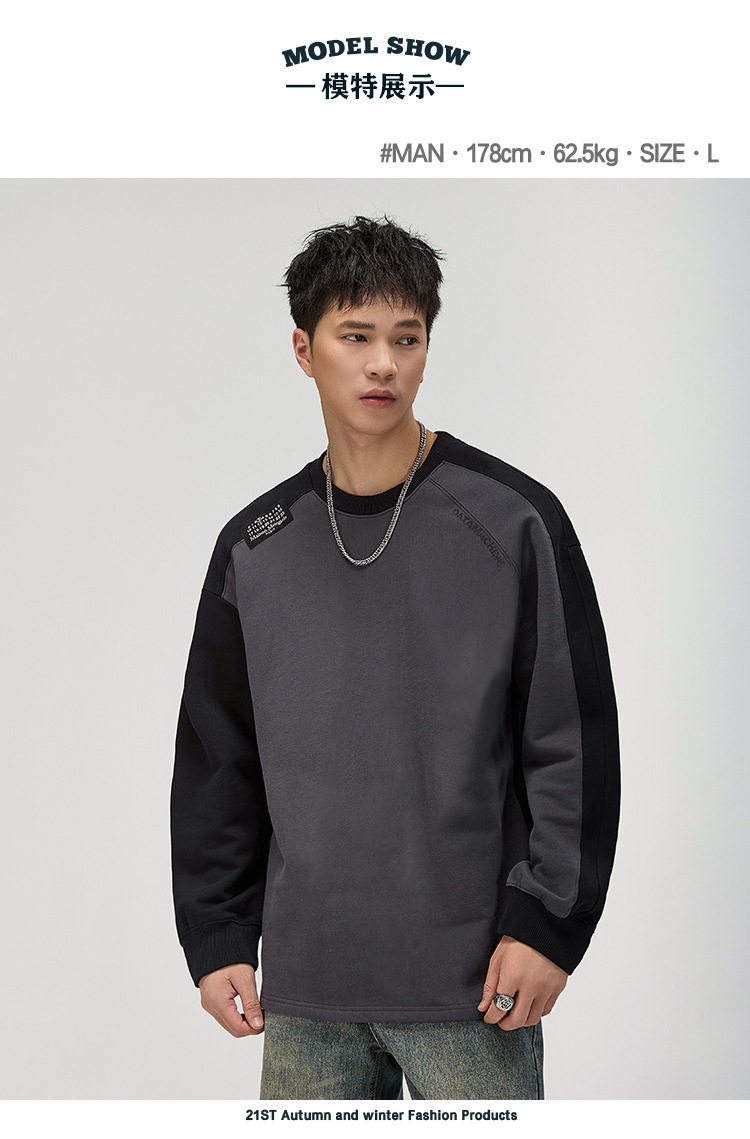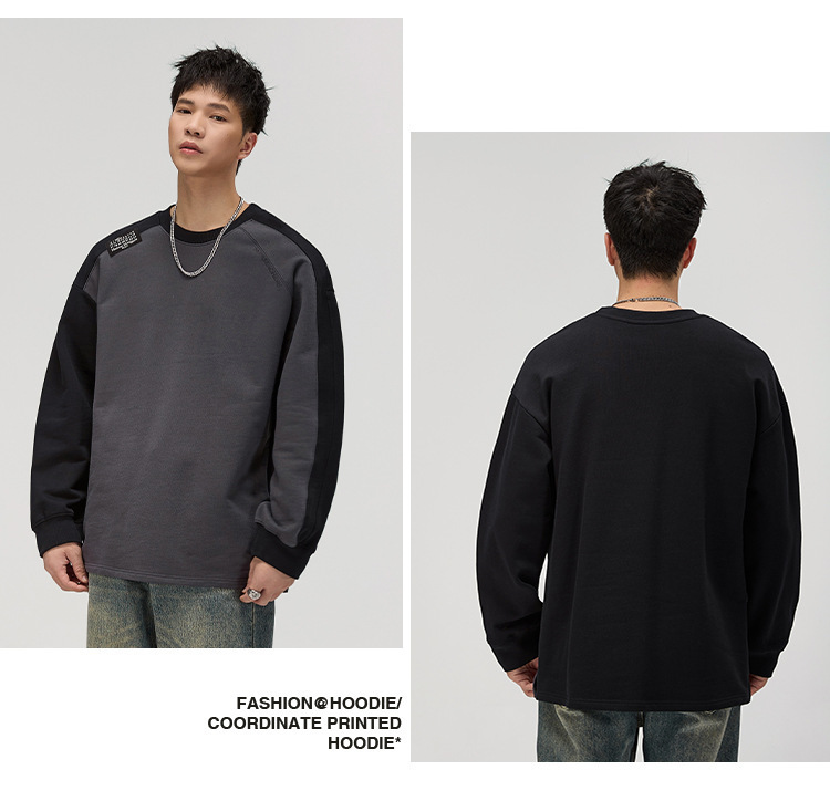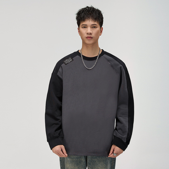 미국 명암 컬러 420g 어깨 무거운 긴팔 티셔츠 남성용 가을 느슨한 순면 베이스 재킷 남성용 유행 스웨트 셔츠