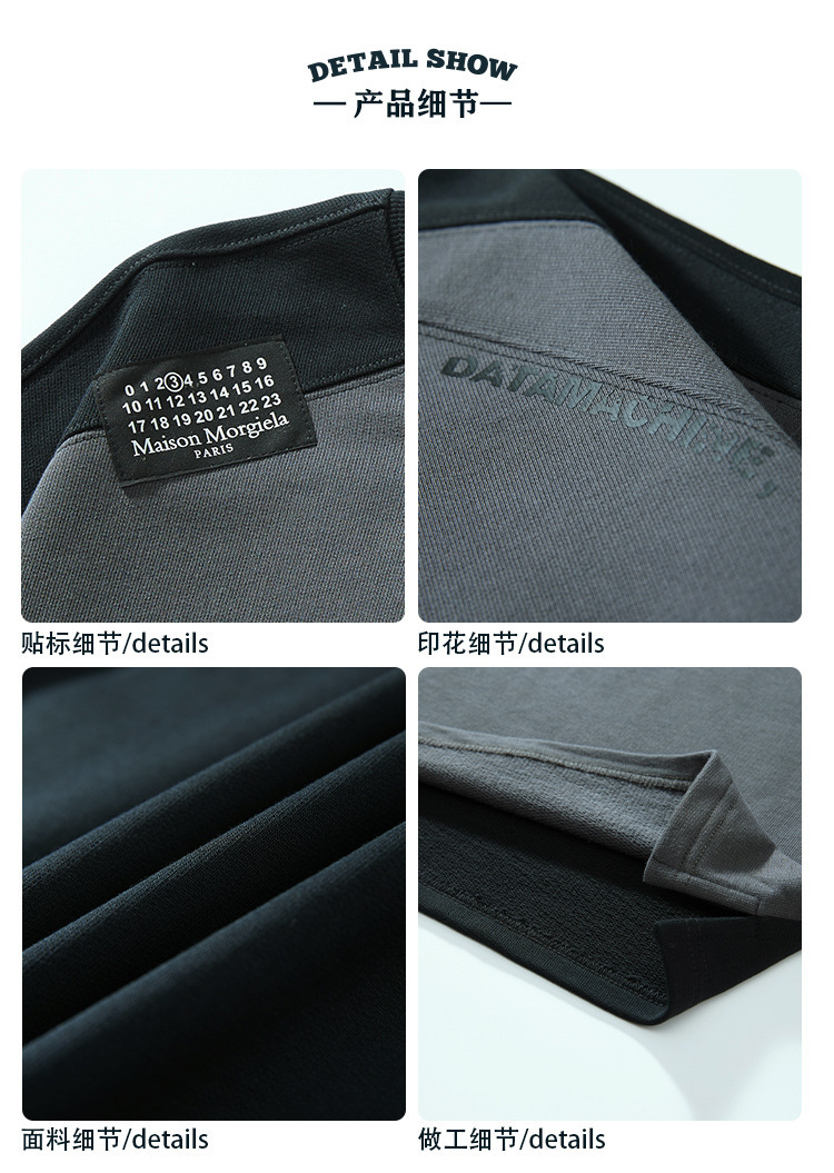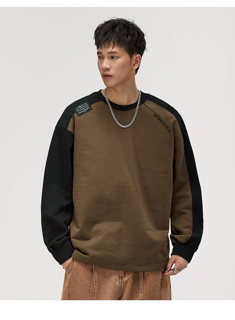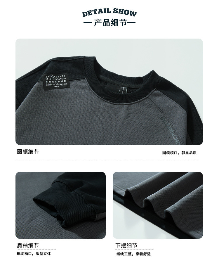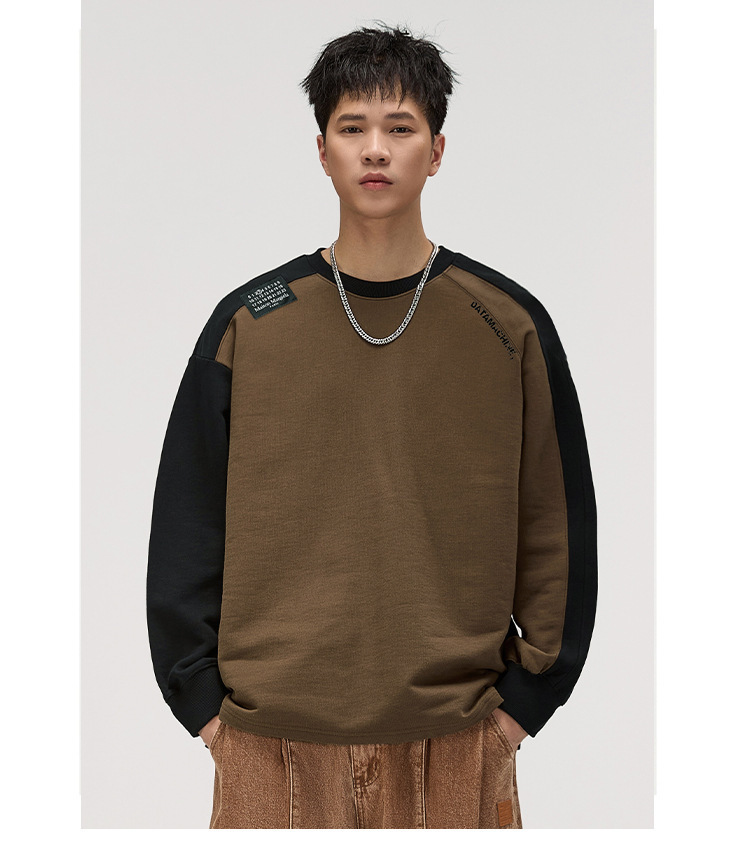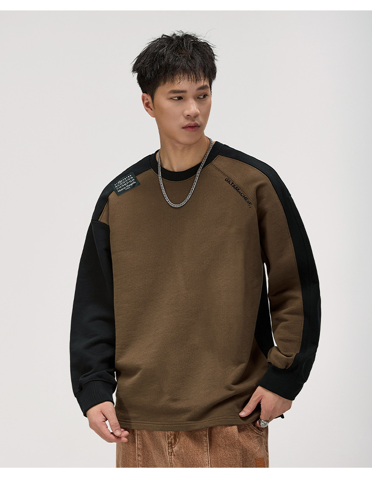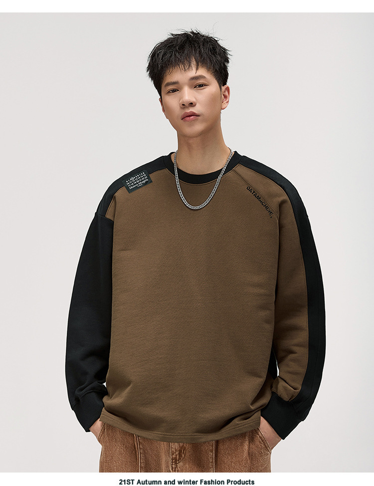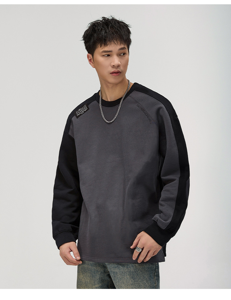미국 명암 컬러 420g 어깨 무거운 긴팔 티셔츠 남성용 가을 느슨한 순면 베이스 재킷 남성용 유행 스웨트 셔츠