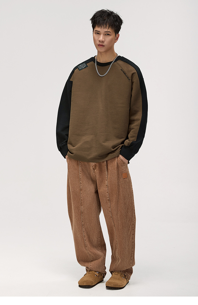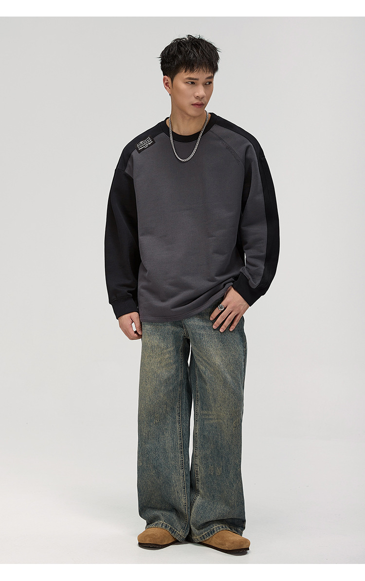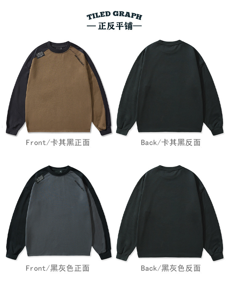 高端美式撞色420g插肩重磅长袖T恤男秋季宽松纯棉打底上衣卫衣男