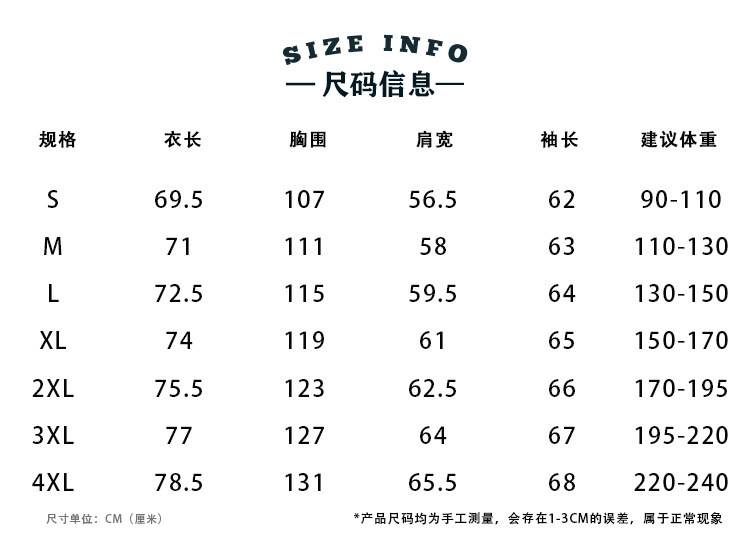 • 4XL은 100-110kg 사이즈에 맞습니다