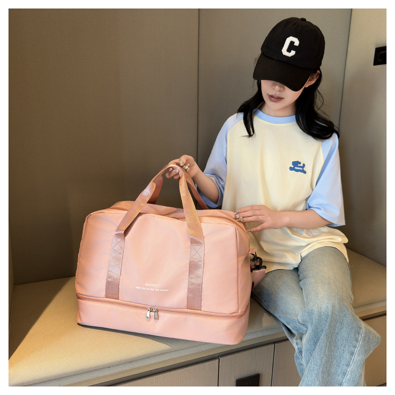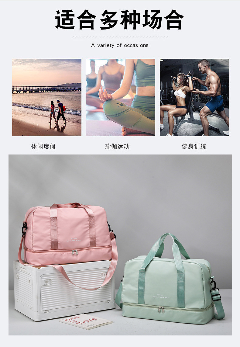 대용량 슬리브 타이로드 여행 가방 휴대용 어깨 옥스포드 천 요가 피트니스 가방 건조하고 젖은 별도의 수영 보관 가방