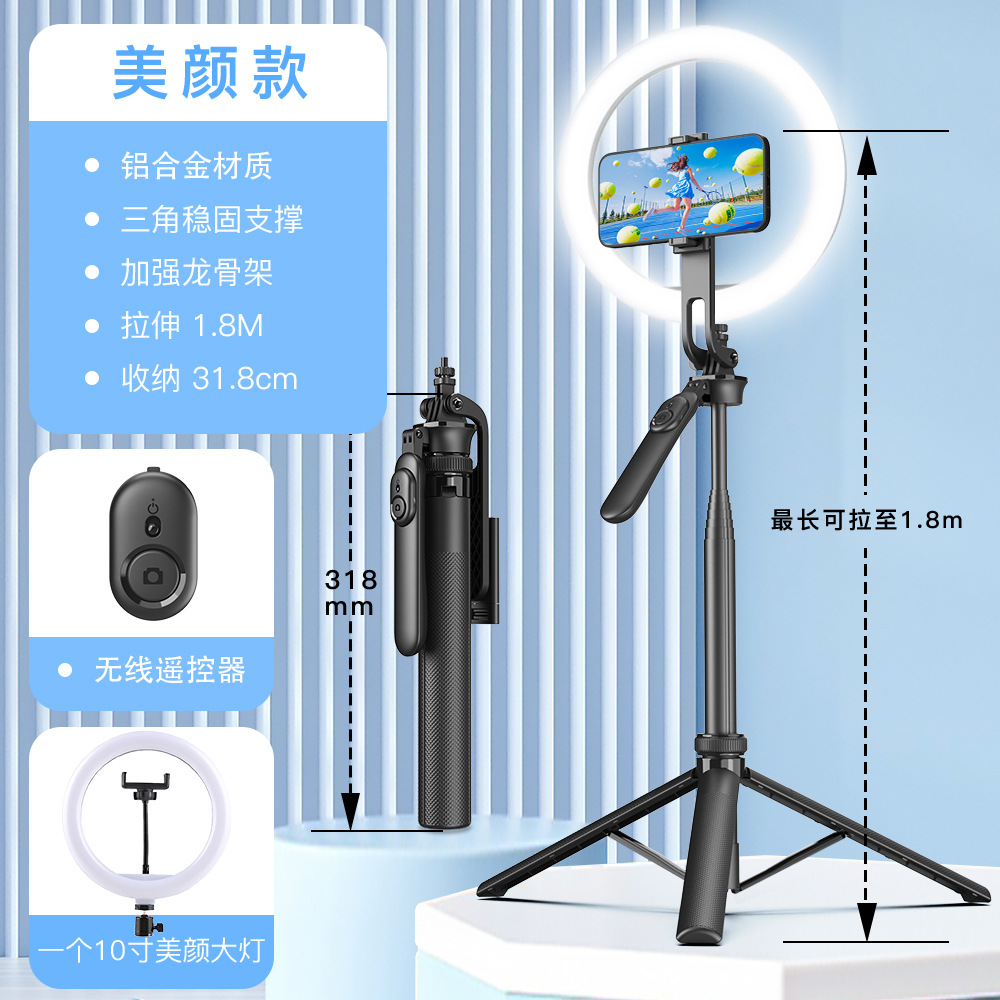 국경 간 개인 모델 Q02 셀카 스틱 1.8M 알루미늄 합금 텔레스코픽 스틱 RBG 램프 카메라 라이브 미러 휴대 전화 셀카 스틱스토어 가기