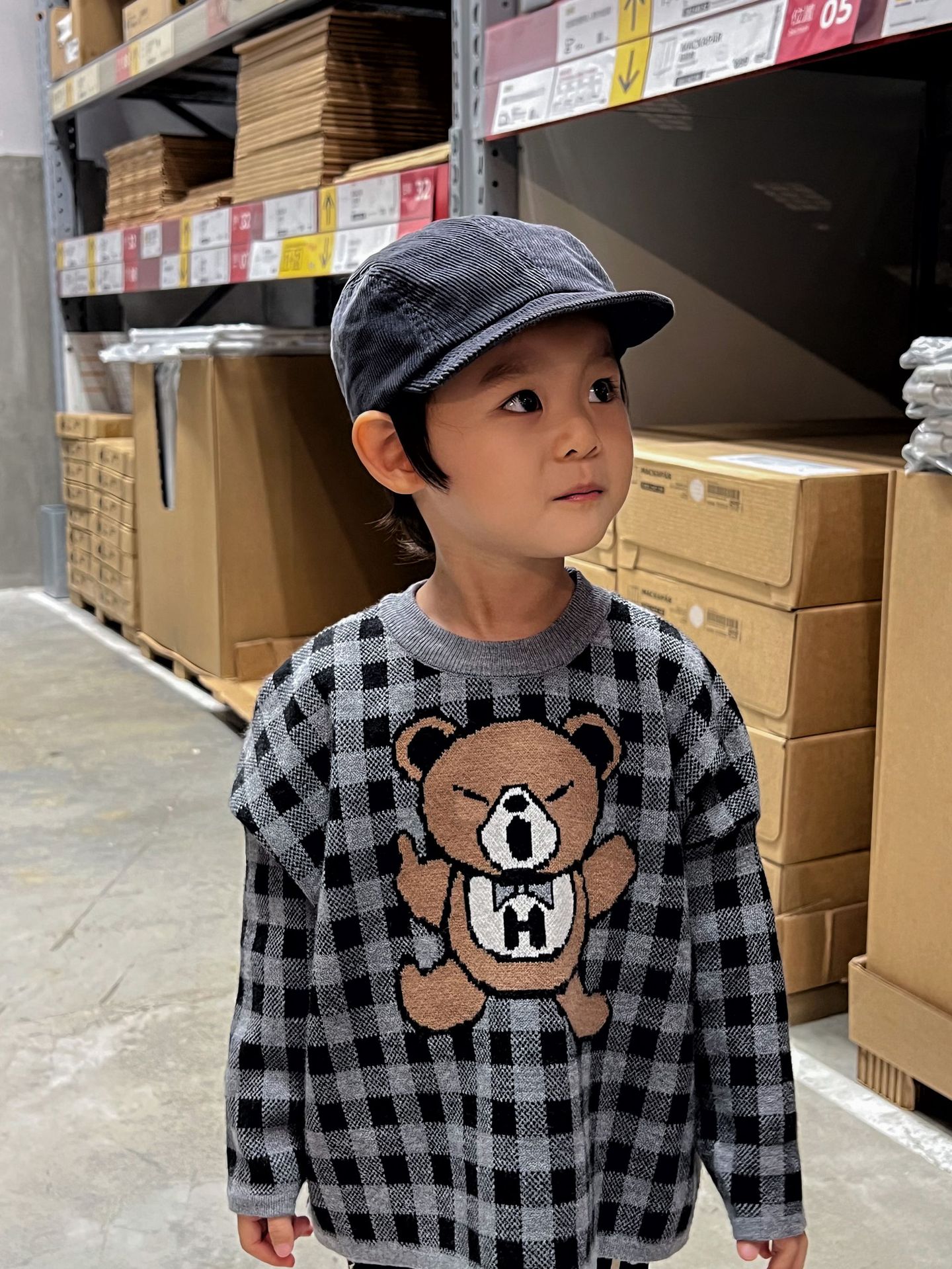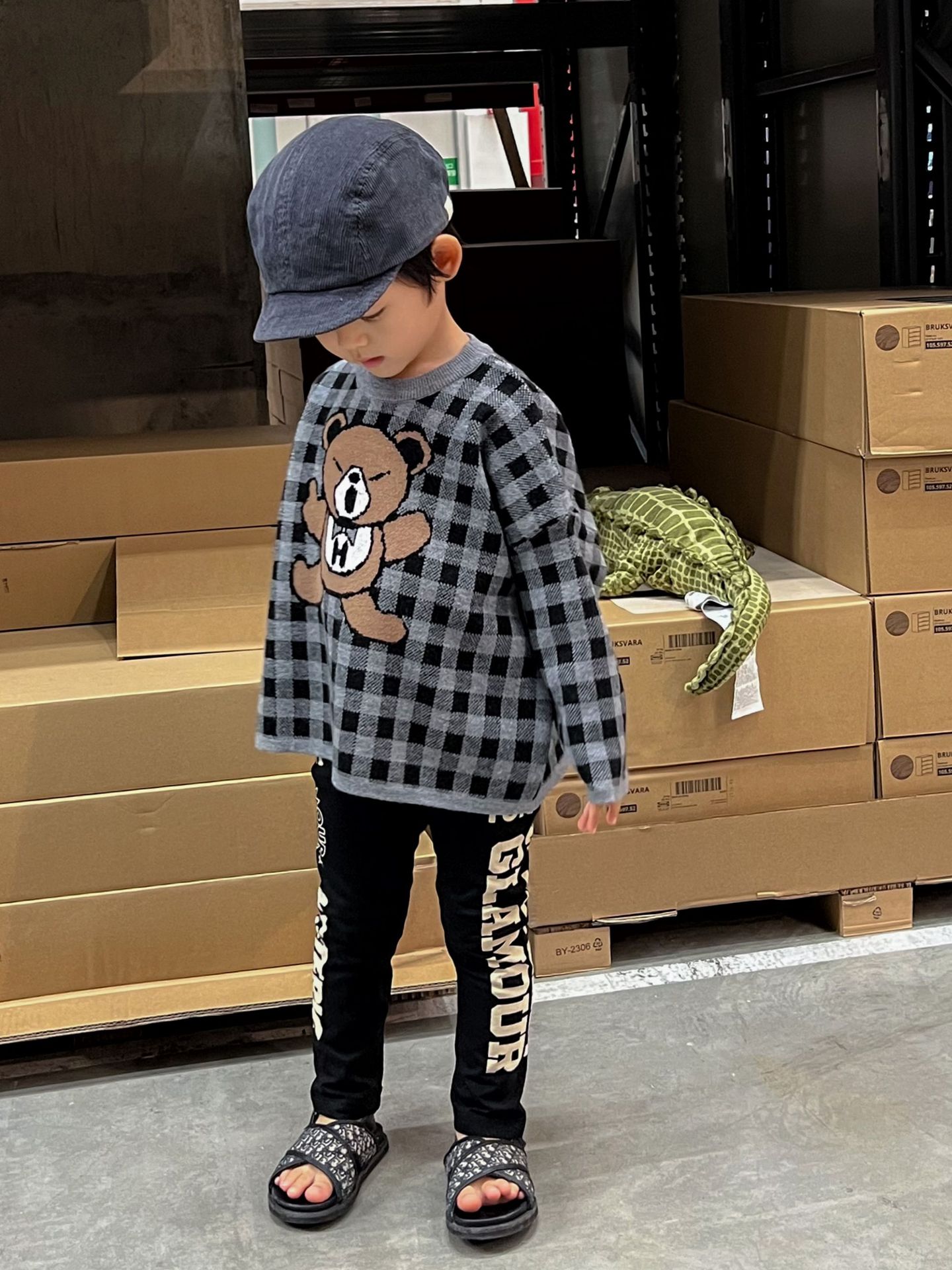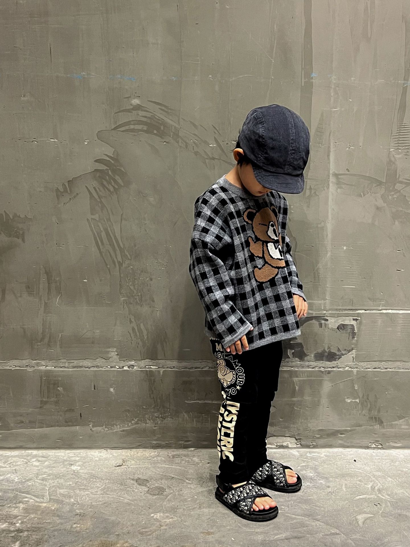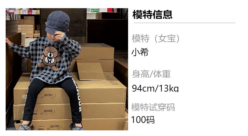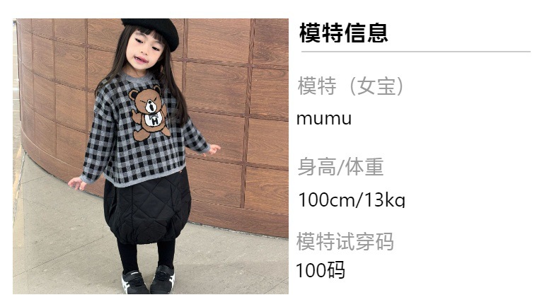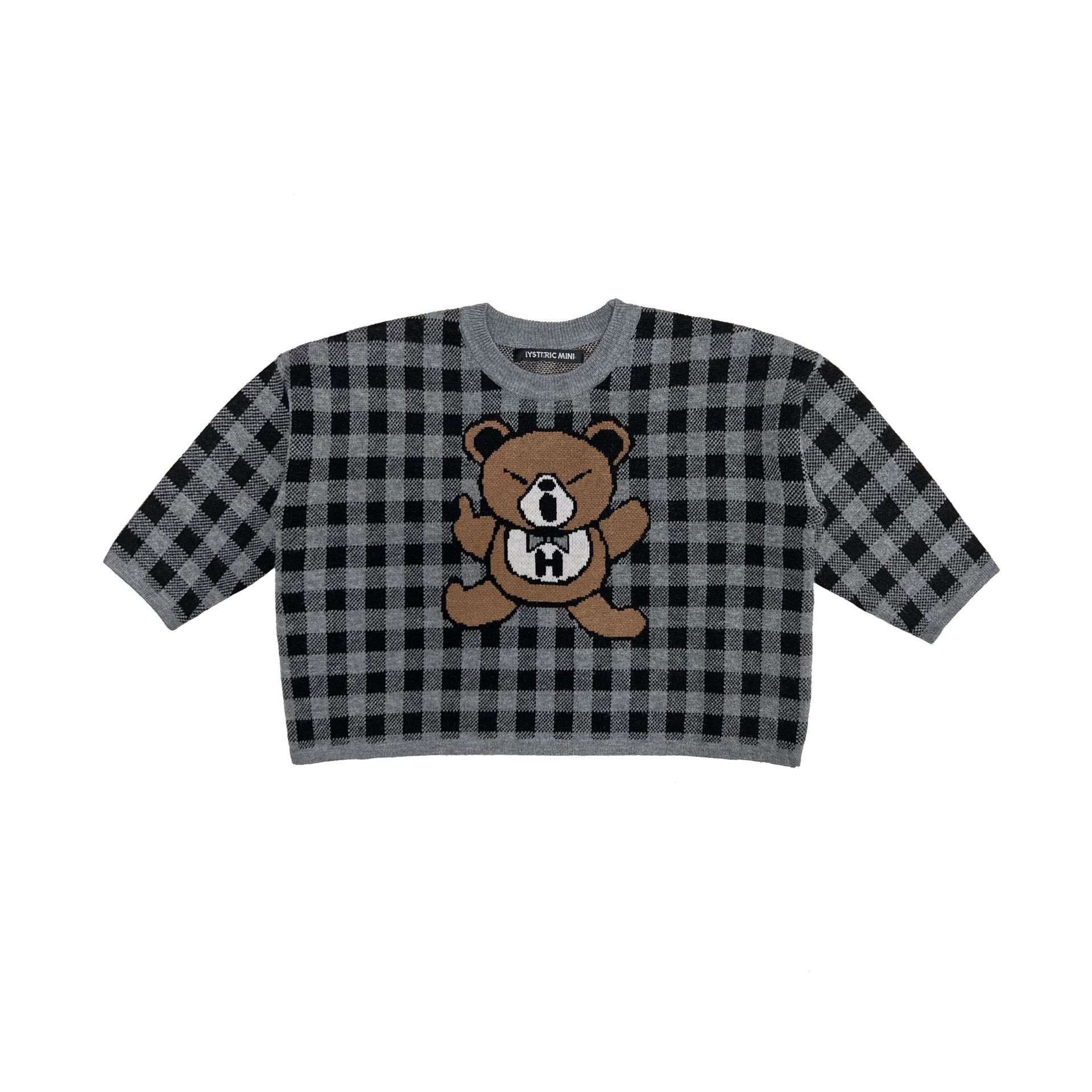 2024 새로운 블랙 슈퍼 조수 브랜드 젖꼭지 폭력 곰 체크 니트 긴 소매 스웨터 젖꼭지 어린이 스웨터 재고스토어 가기
