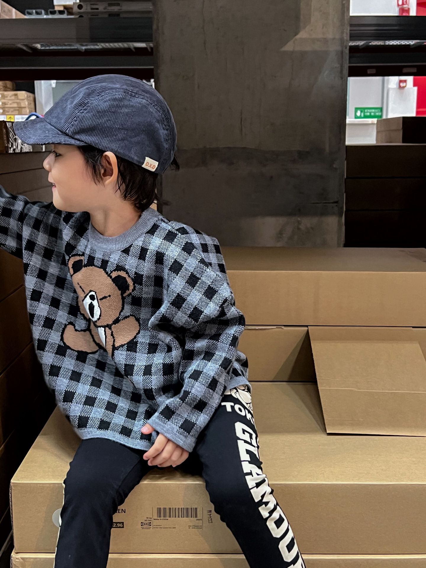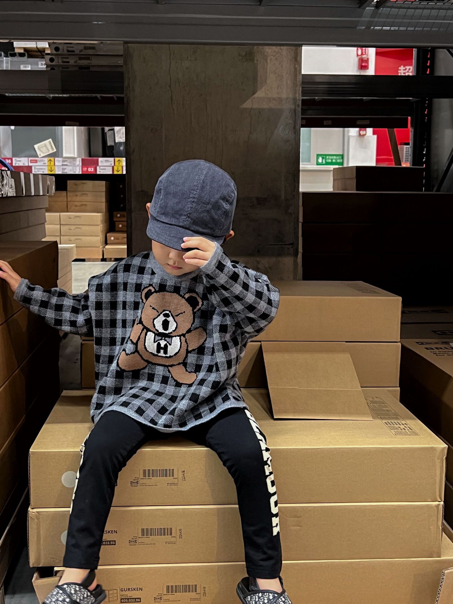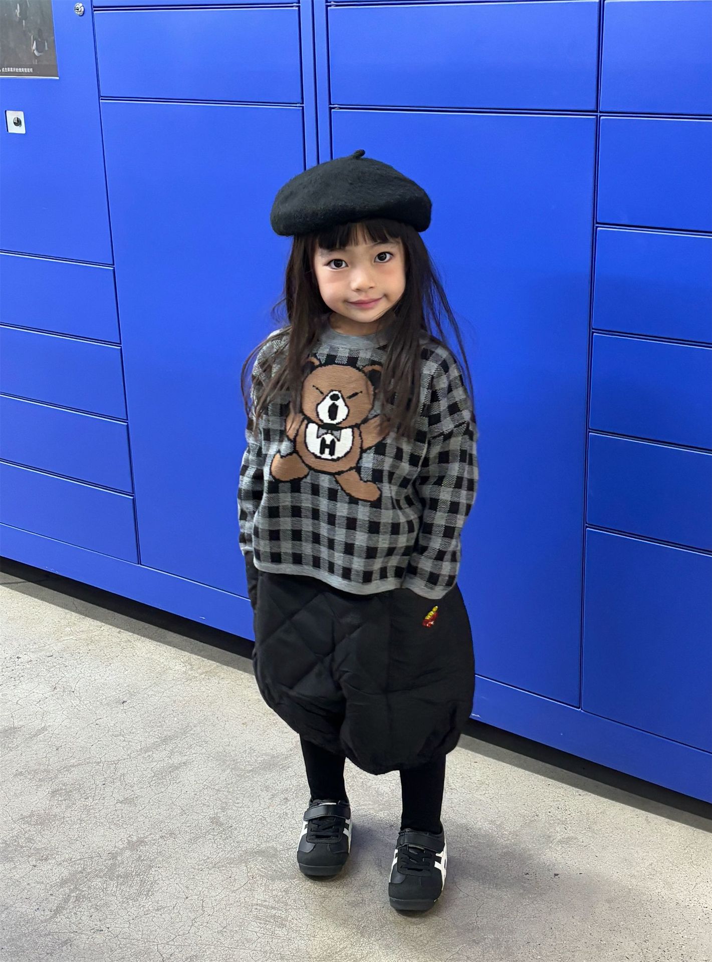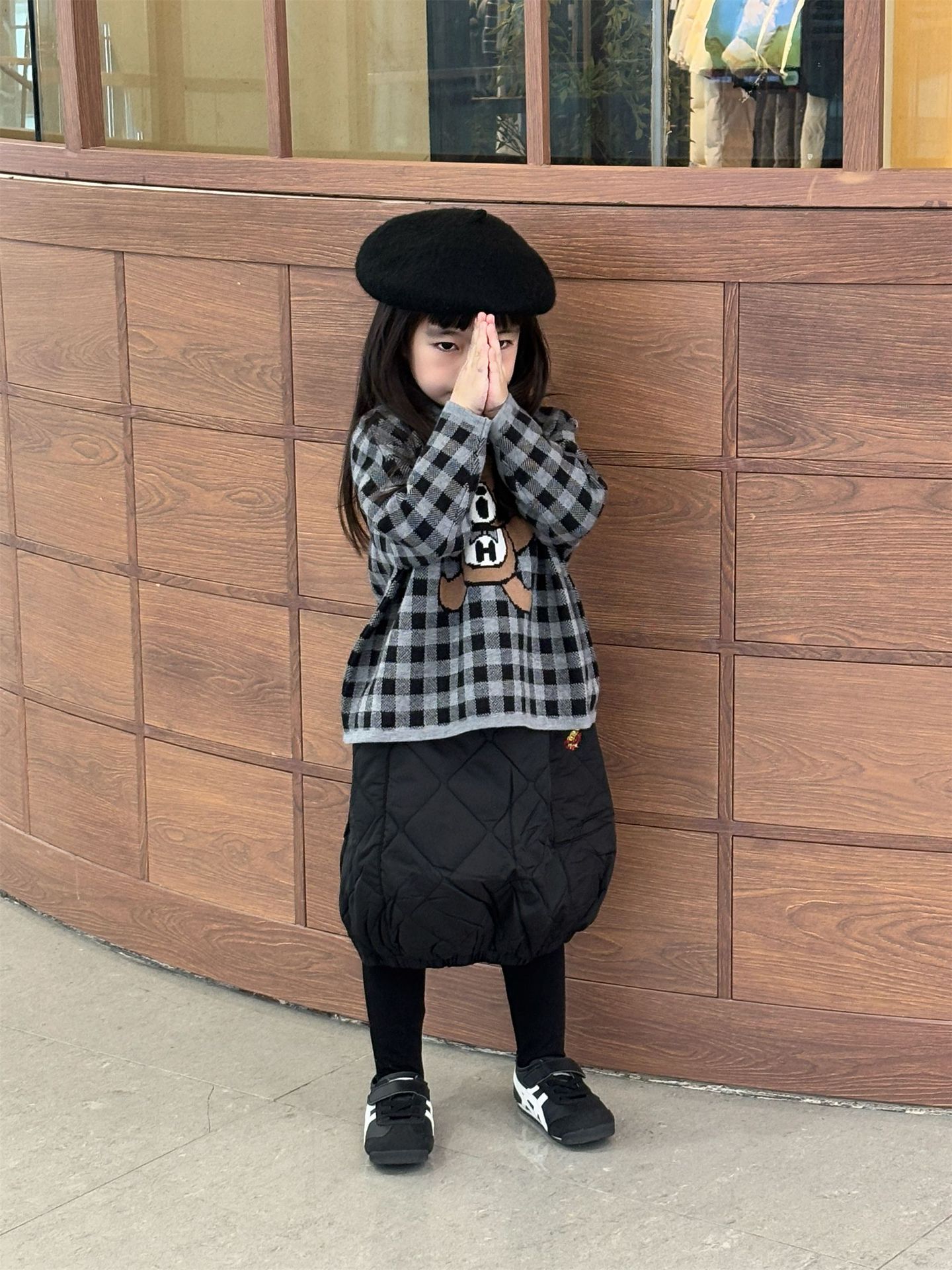 2024 새로운 블랙 슈퍼 조수 브랜드 젖꼭지 폭력 곰 체크 니트 긴 소매 스웨터 젖꼭지 어린이 스웨터 재고스토어 가기