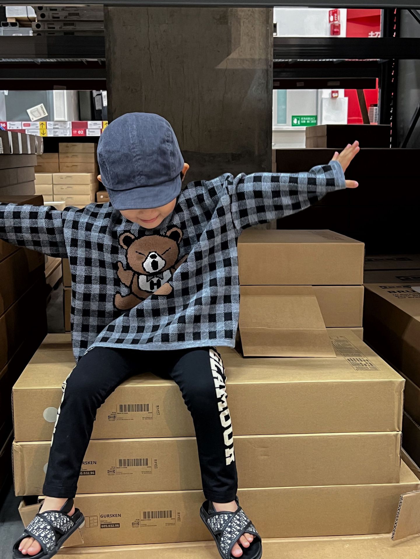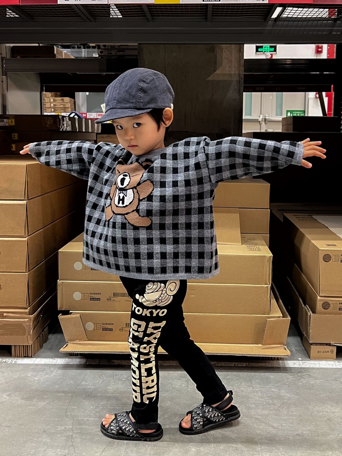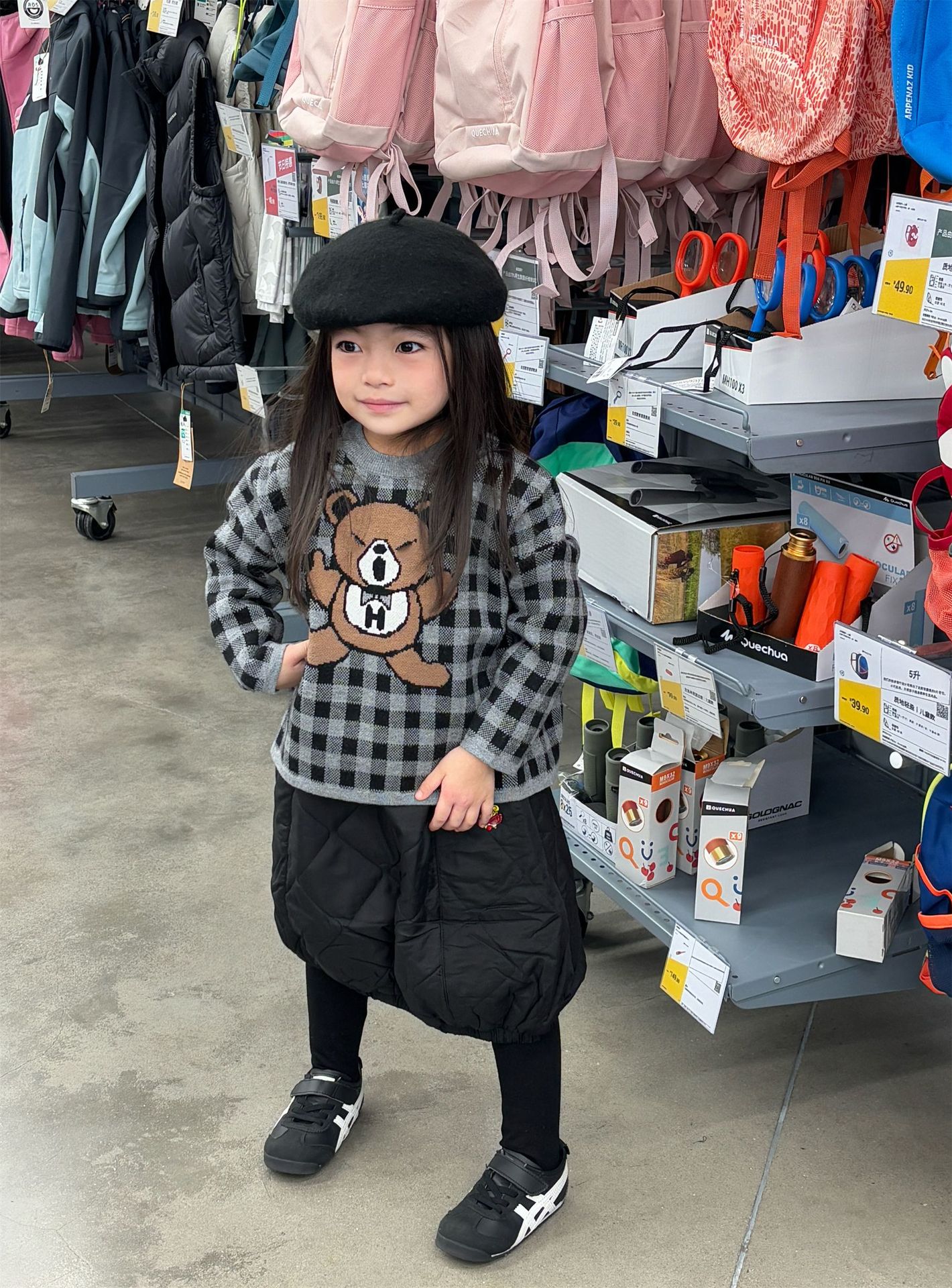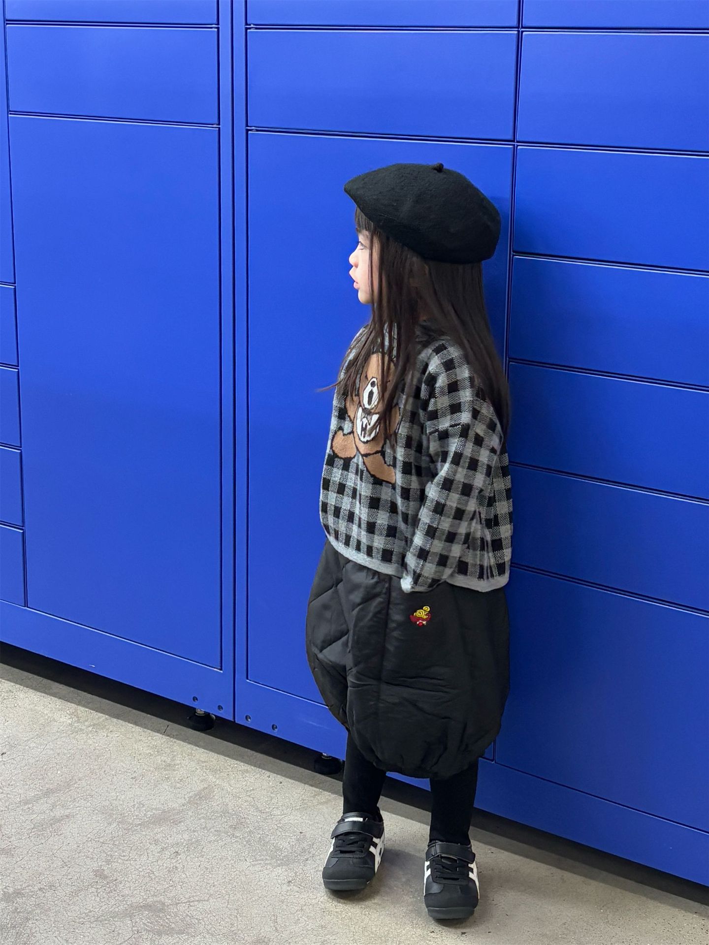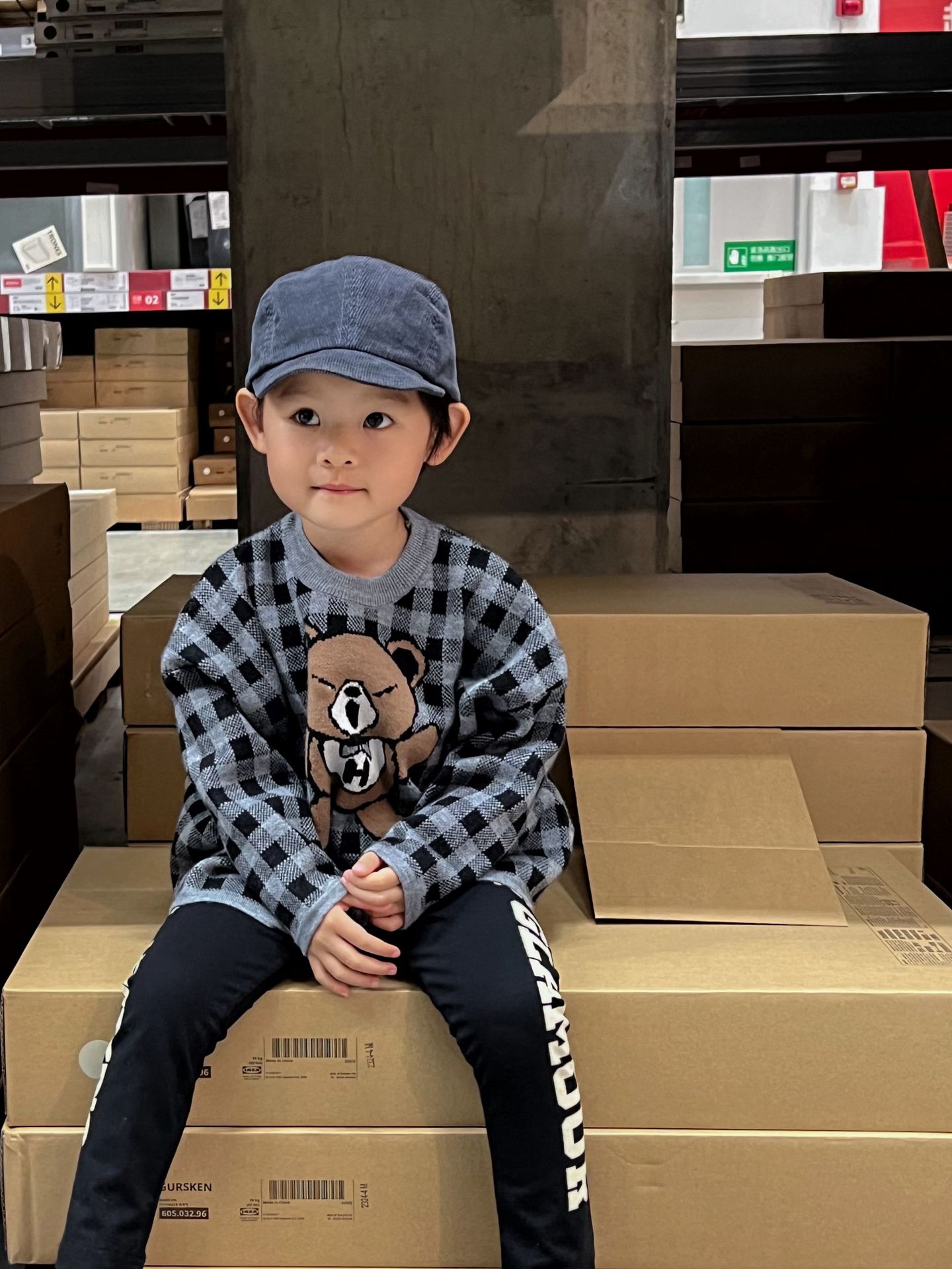 2024 새로운 블랙 슈퍼 조수 브랜드 젖꼭지 폭력 곰 체크 니트 긴 소매 스웨터 젖꼭지 어린이 스웨터 재고스토어 가기