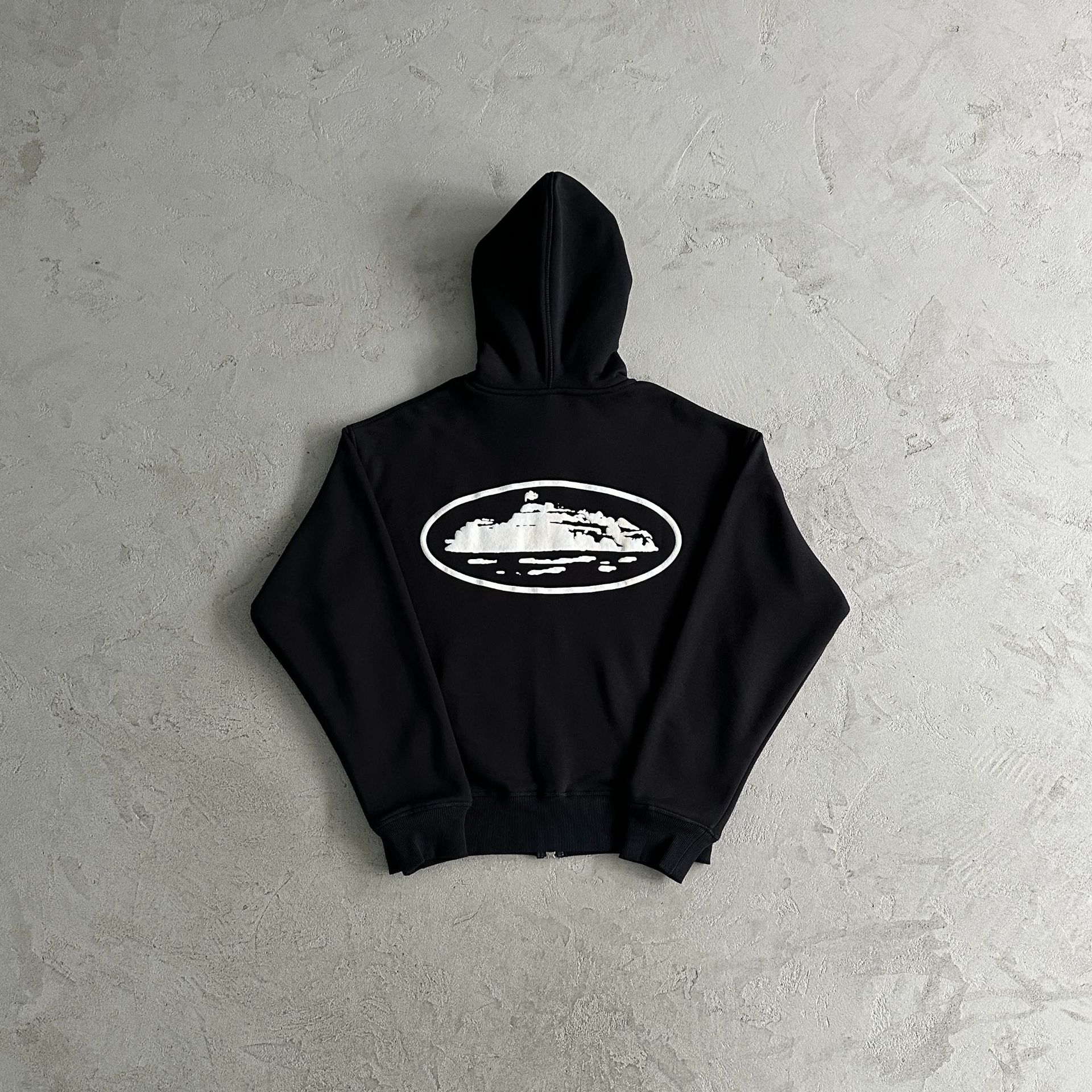 남성과 여성을 위한 고중량 아메리칸 스트리트 힙합 알카트라즈 프린트 벨벳 지퍼 카디건 후드 티셔츠 트렌디 브랜드 재킷스토어 가기