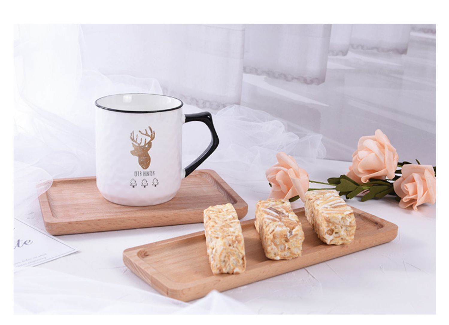 • 흰색 나무 손잡이 트레이 19*36.5cm