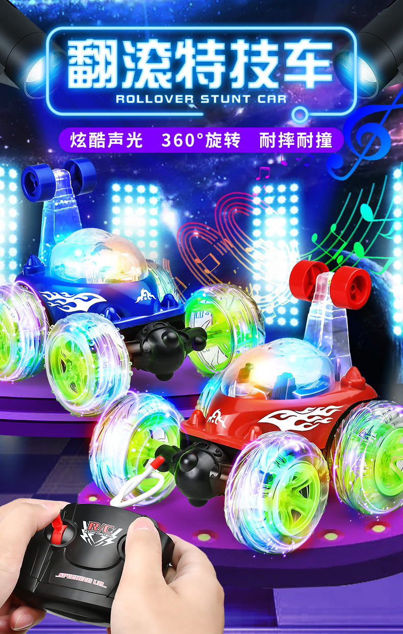 원격 제어 자동차 스턴트 롤오버 자동차 장난감 시원한 빛 음악 트위스트 자동차 원격 제어 변형 자동차 어린이 장난감 도매스토어 가기