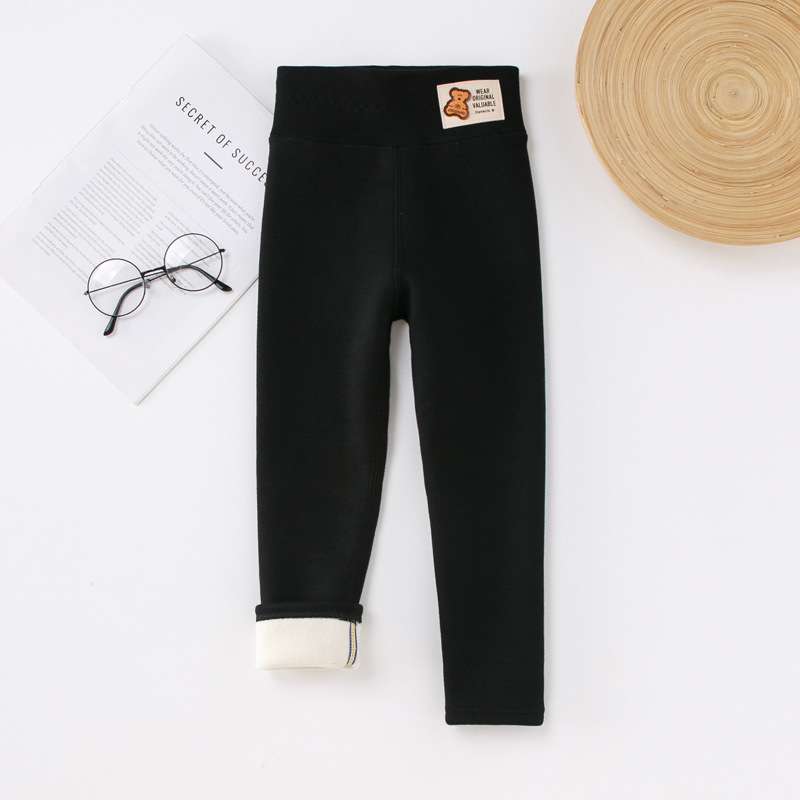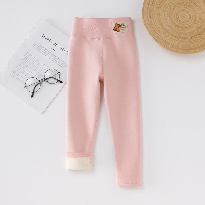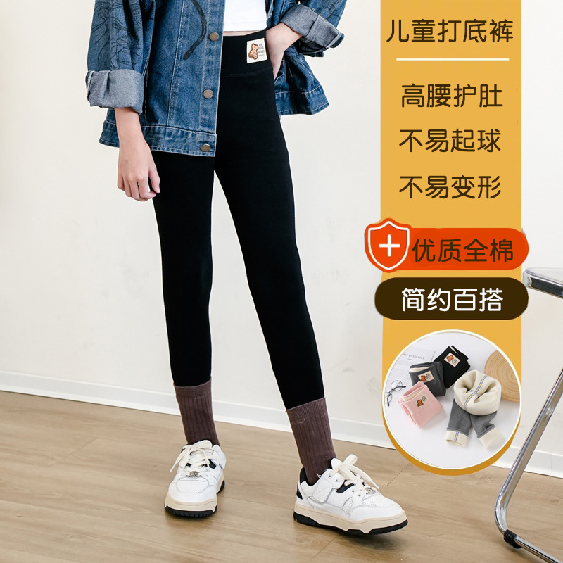 여자 바지 기모 면화 긴 바지 높은 허리 바지 외부 착용 한국 스타일 슬림 적합 어린이 레깅스스토어 가기