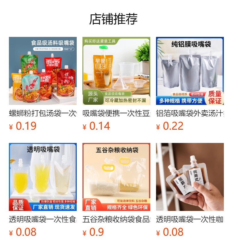 젖빛 흡입 입 가방 큰 직경 투명한 콩 우유 자립 가방 액체 음료 가방 일회용 한약 서브 백스토어 가기