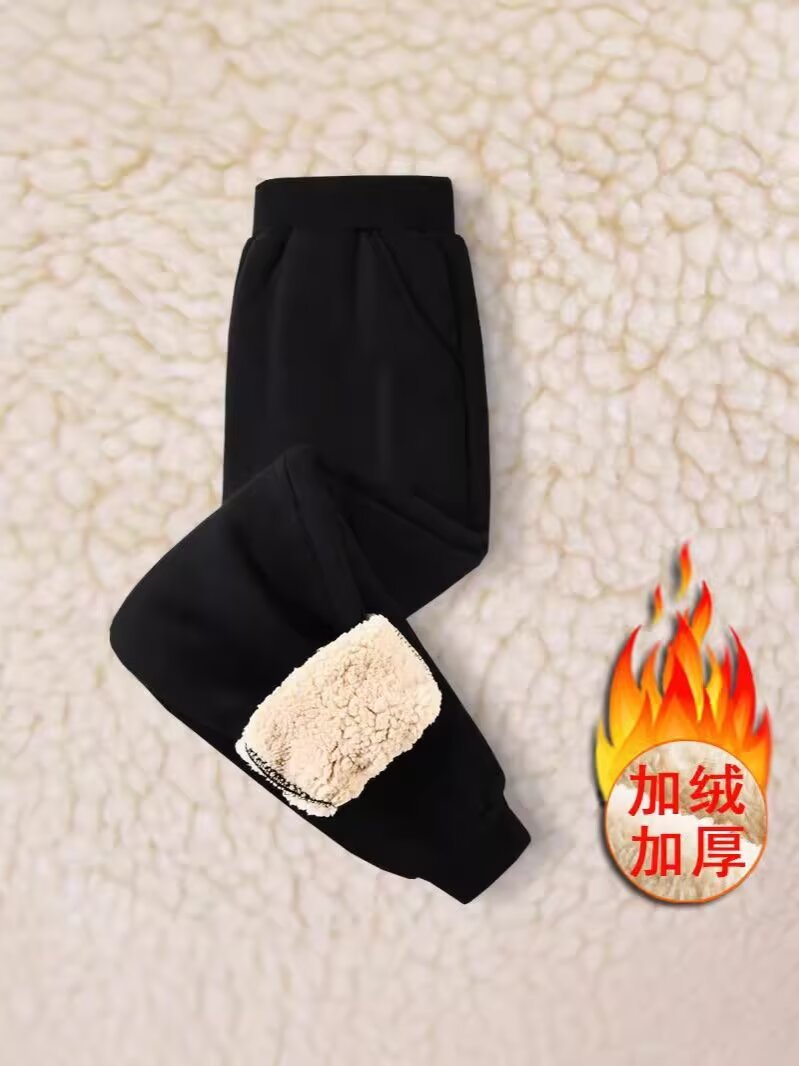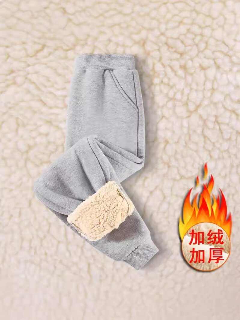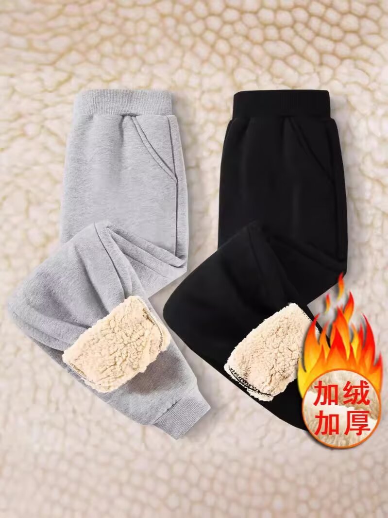 가을과 겨울 따뜻한 캐주얼 바지 어린이 양고기 양털 바지 큰 어린이 기모 두꺼운 발 묶은 바지 단색 공백