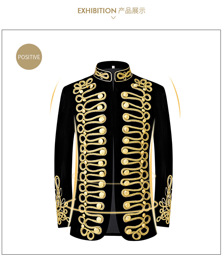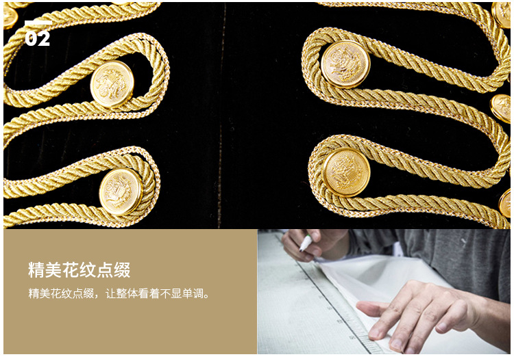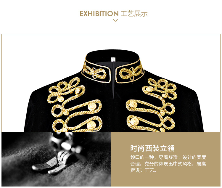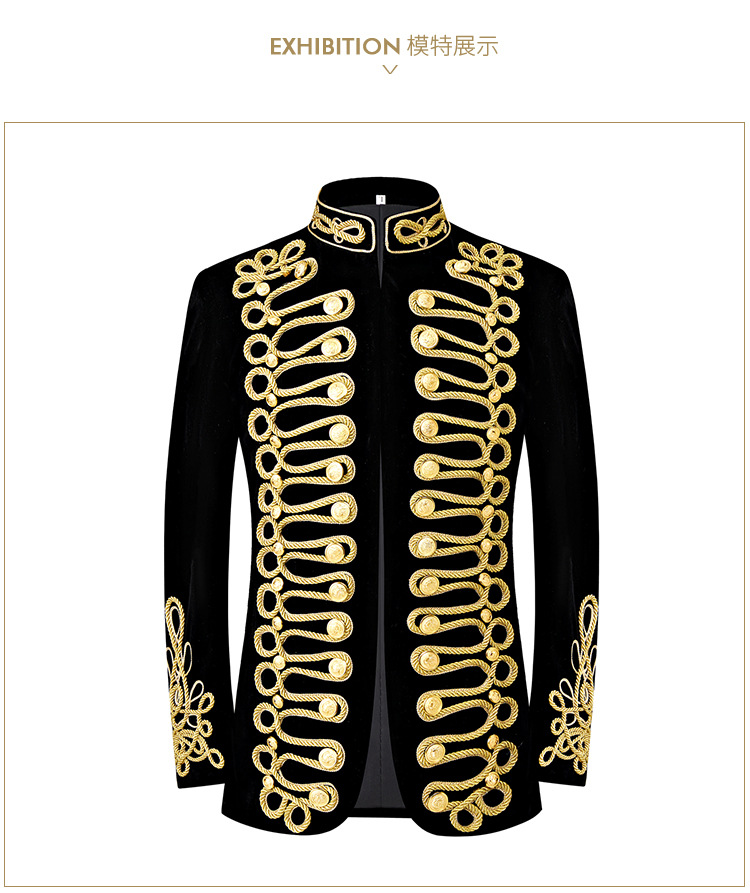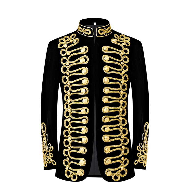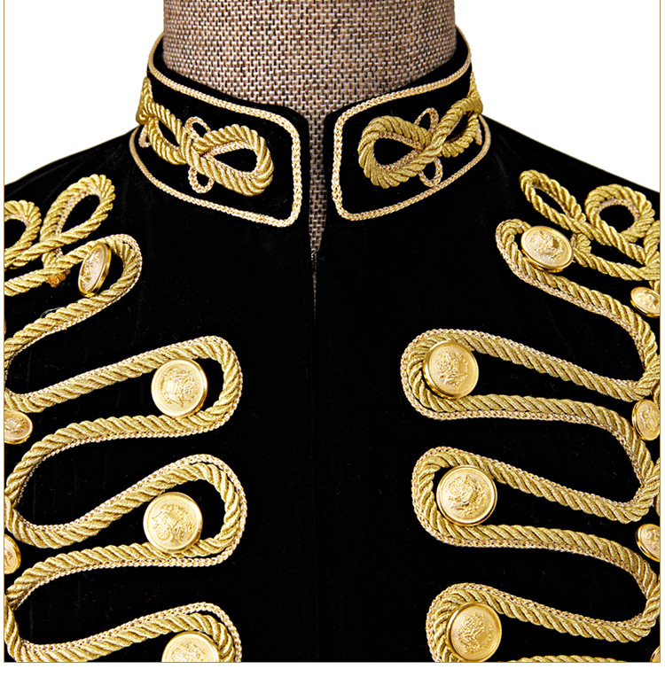 남자 유럽식 법원 세트 귀족 레트로 군사 원피스 벨벳 수제 코트 골드 로프 블랙 인레이 코트스토어 가기