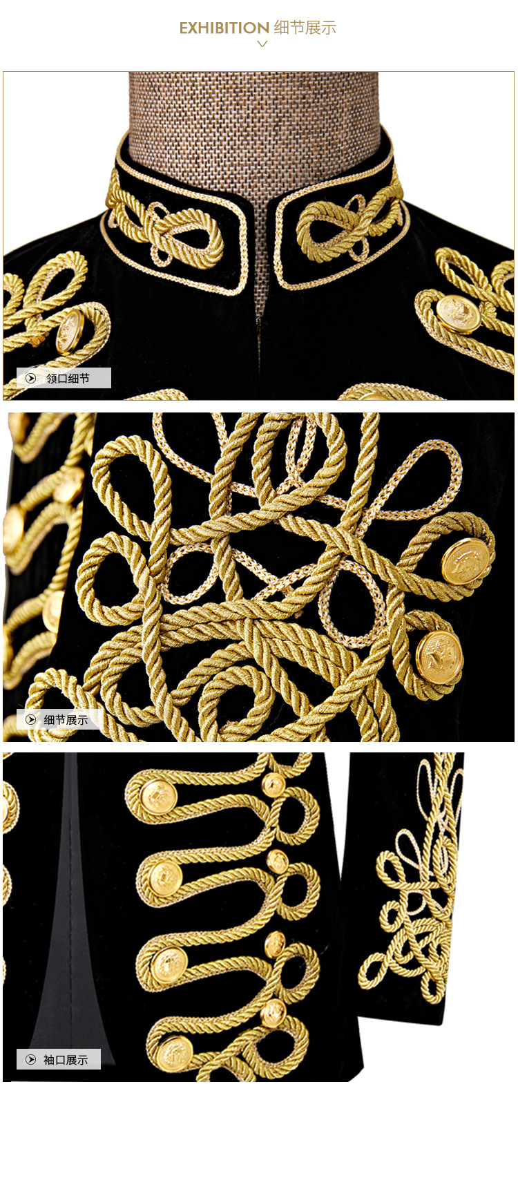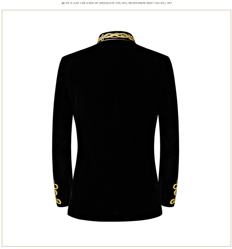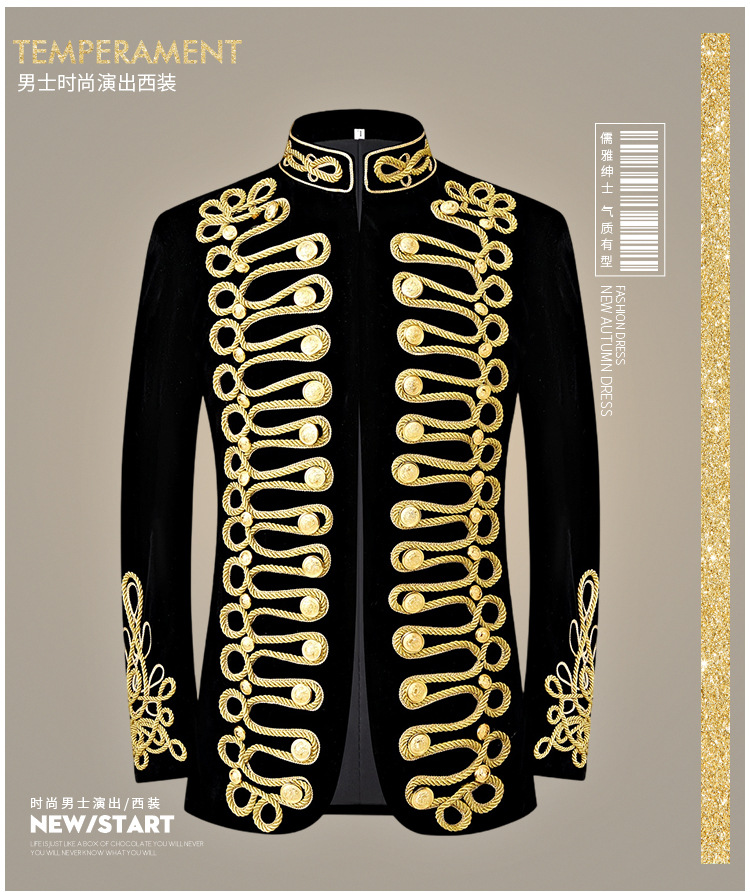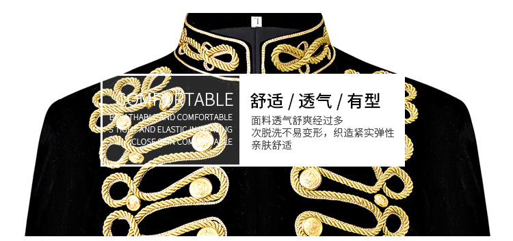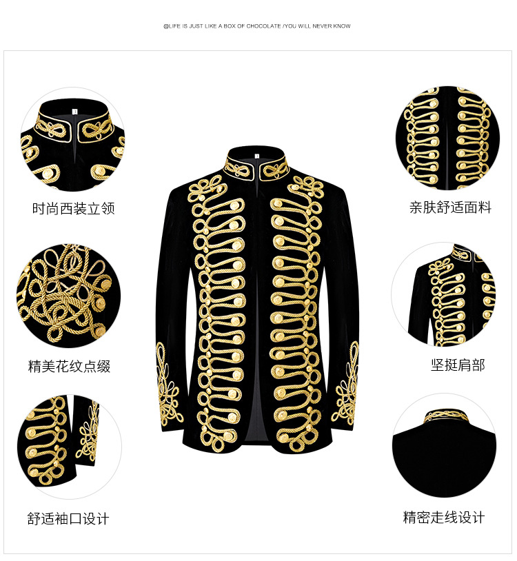 남자 유럽식 법원 세트 귀족 레트로 군사 원피스 벨벳 수제 코트 골드 로프 블랙 인레이 코트스토어 가기