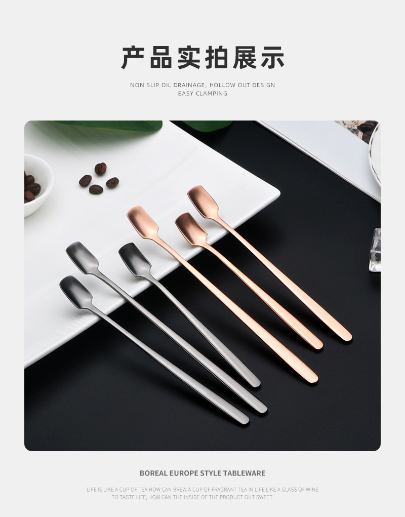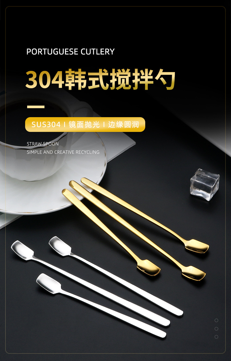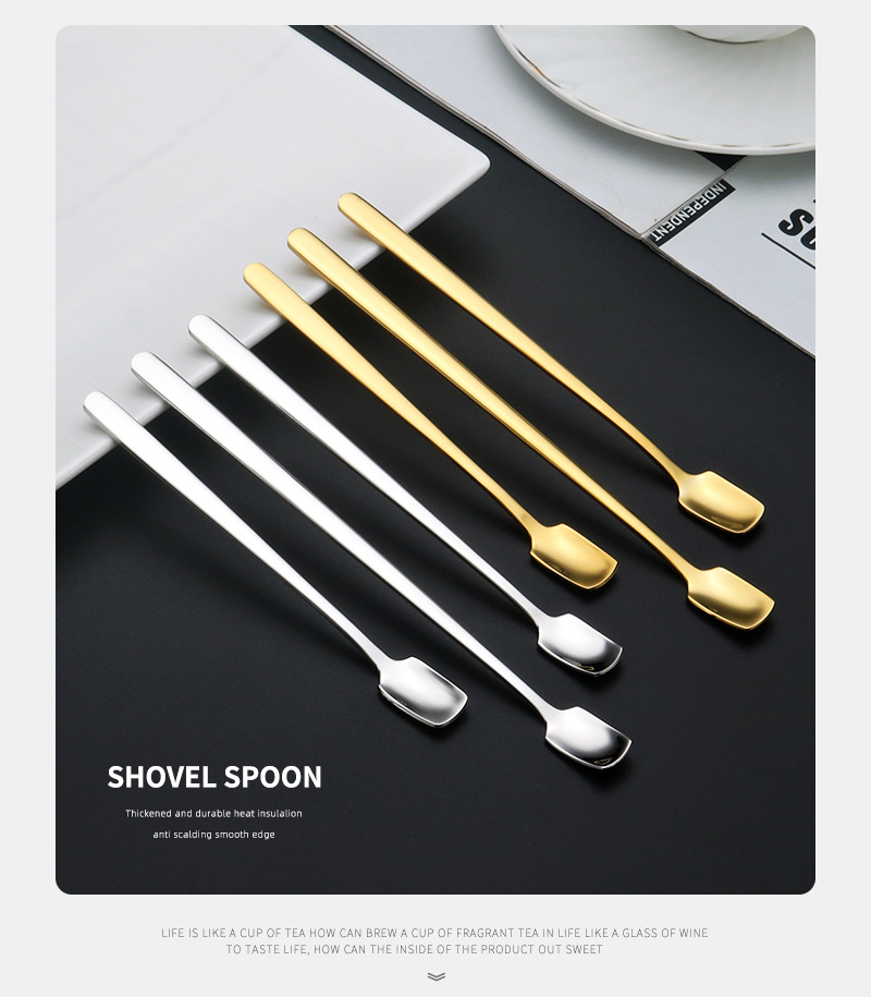 304 스테인레스 스틸 스퀘어 헤드 스푼 창조적 인 커피 혼합 숟가락 머그잔 스푼 높은 컬러 값 아이스크림 디저트 스푼스토어 가기