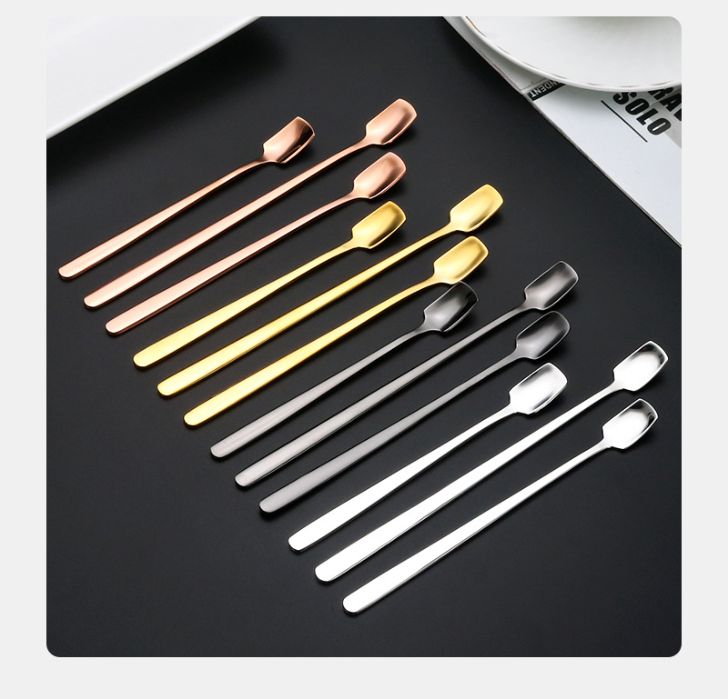 304 스테인레스 스틸 스퀘어 헤드 스푼 창조적 인 커피 혼합 숟가락 머그잔 스푼 높은 컬러 값 아이스크림 디저트 스푼