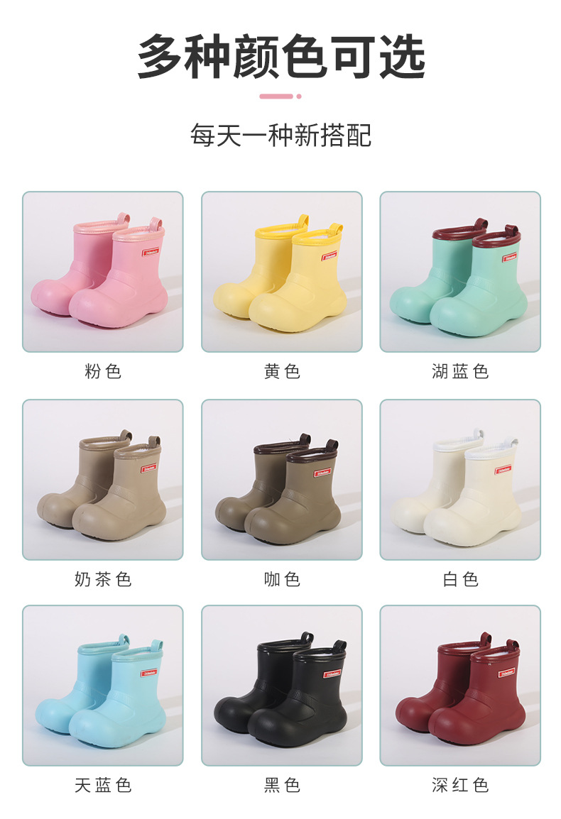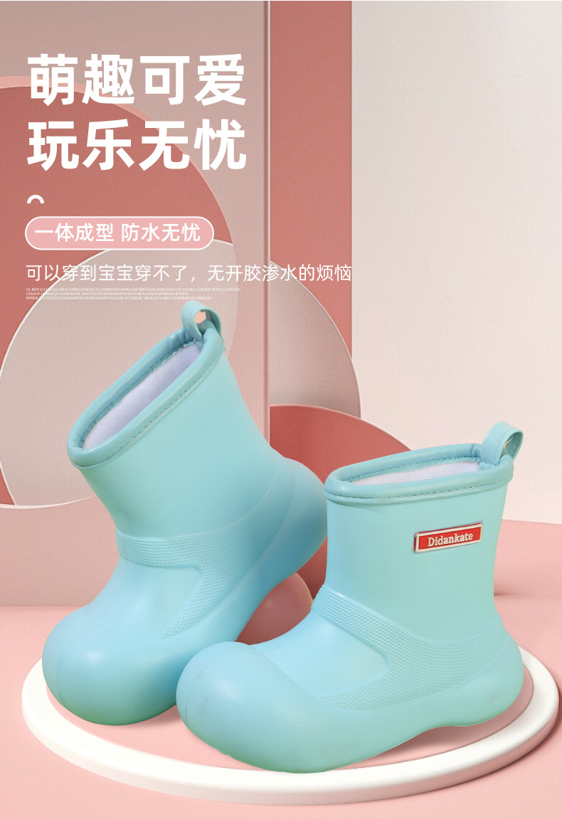 2024 새로운 어린이 장화 고무 및 플라스틱 울트라 라이트 미끄럼 방지 어린이 유치원 아기 장화 부드러운 두꺼운 바닥 물 신발