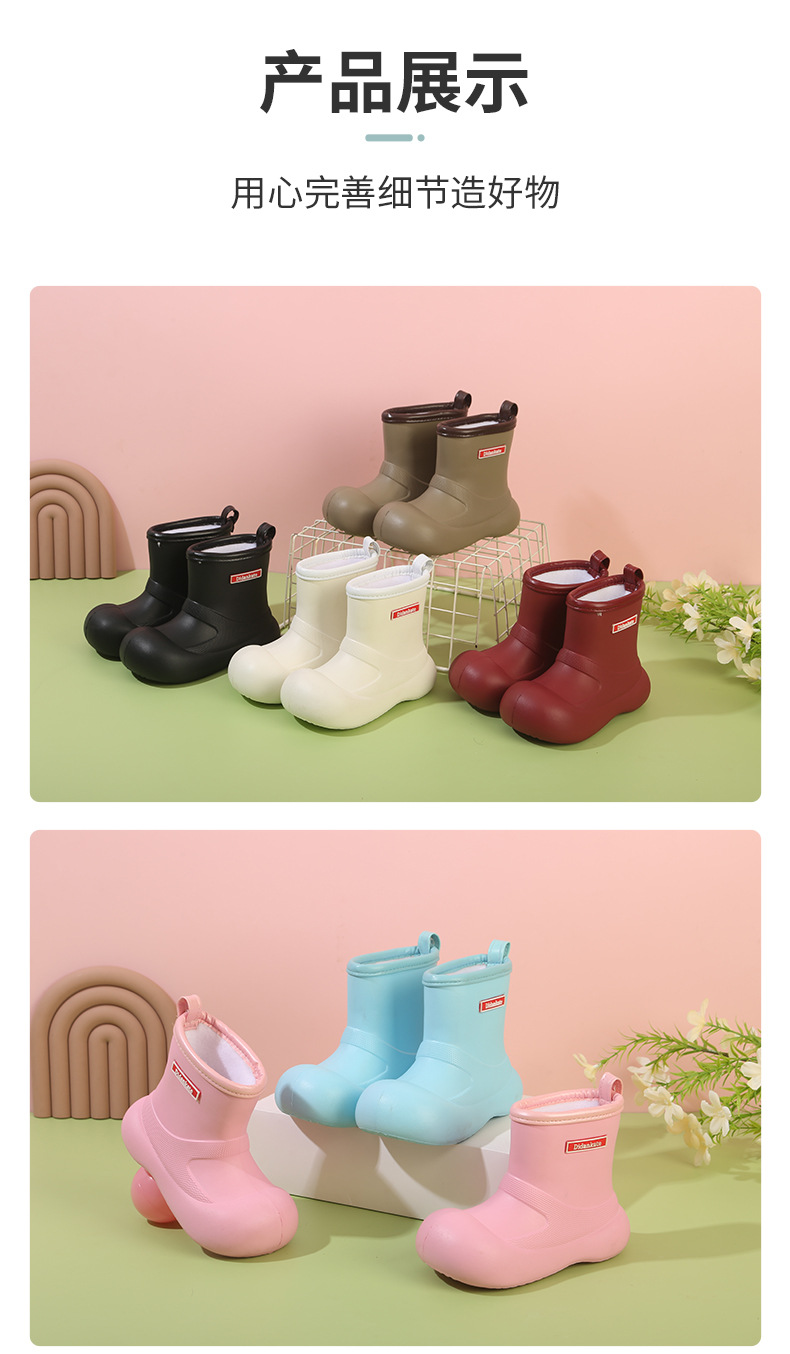 2024 새로운 어린이 장화 고무 및 플라스틱 울트라 라이트 미끄럼 방지 어린이 유치원 아기 장화 부드러운 두꺼운 바닥 물 신발스토어 가기