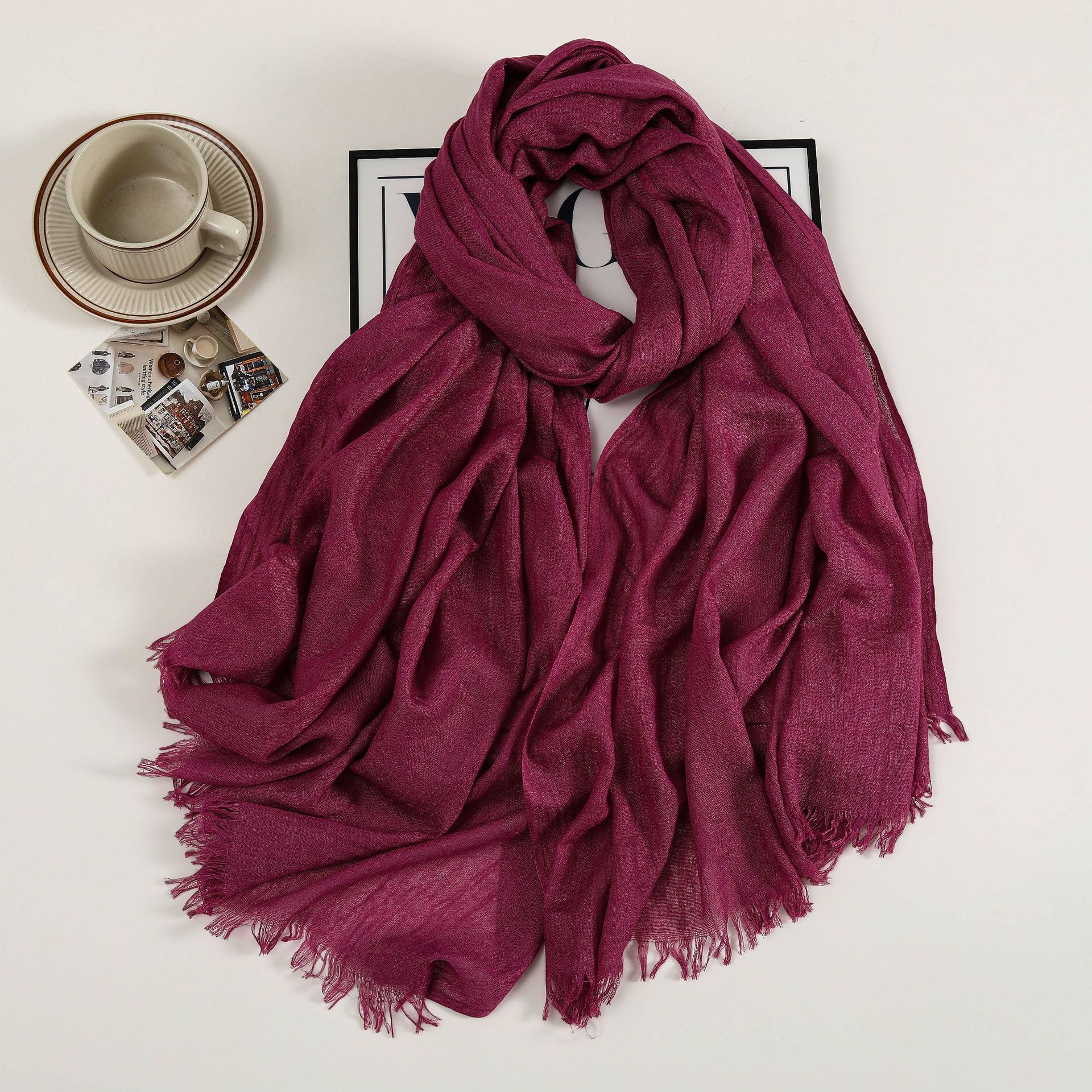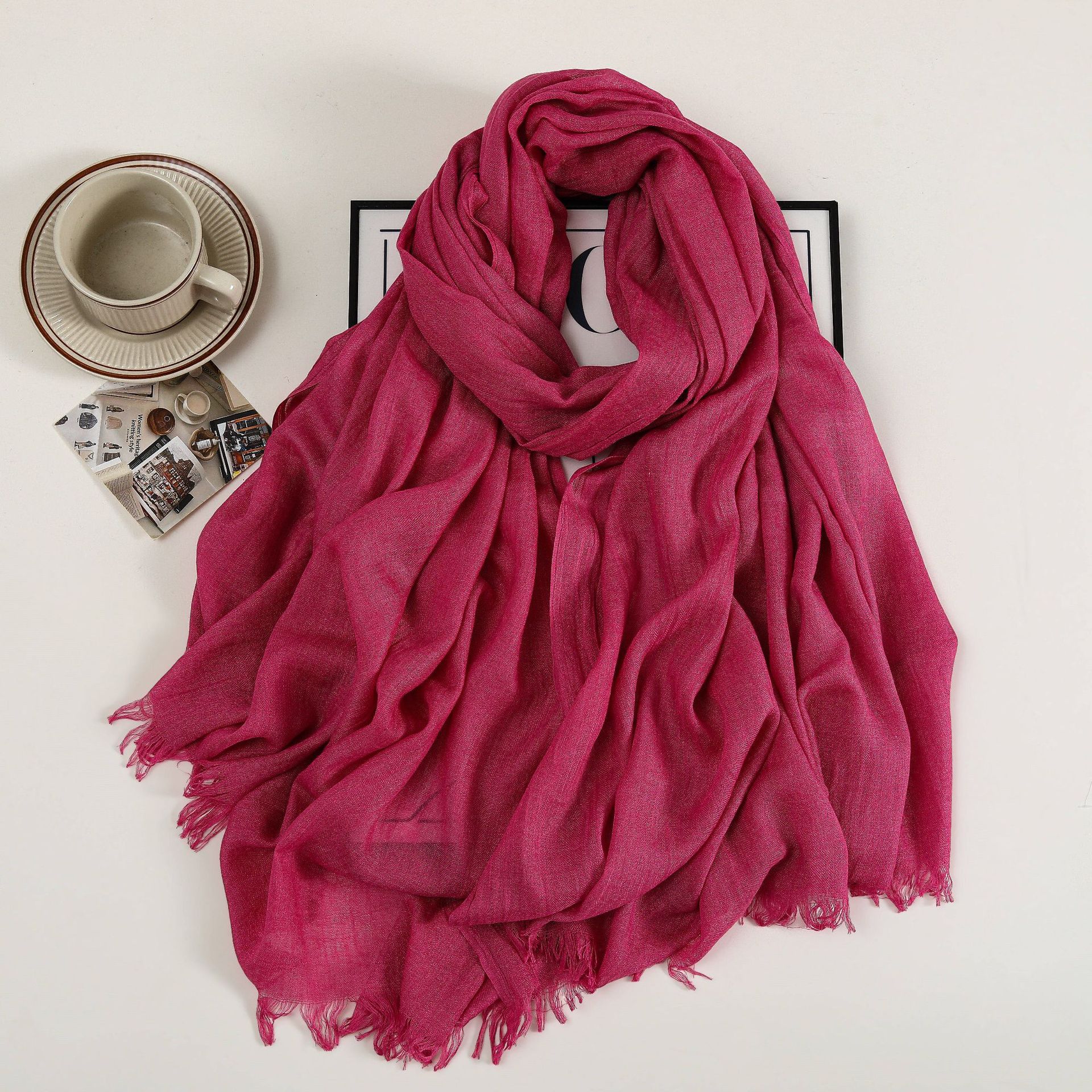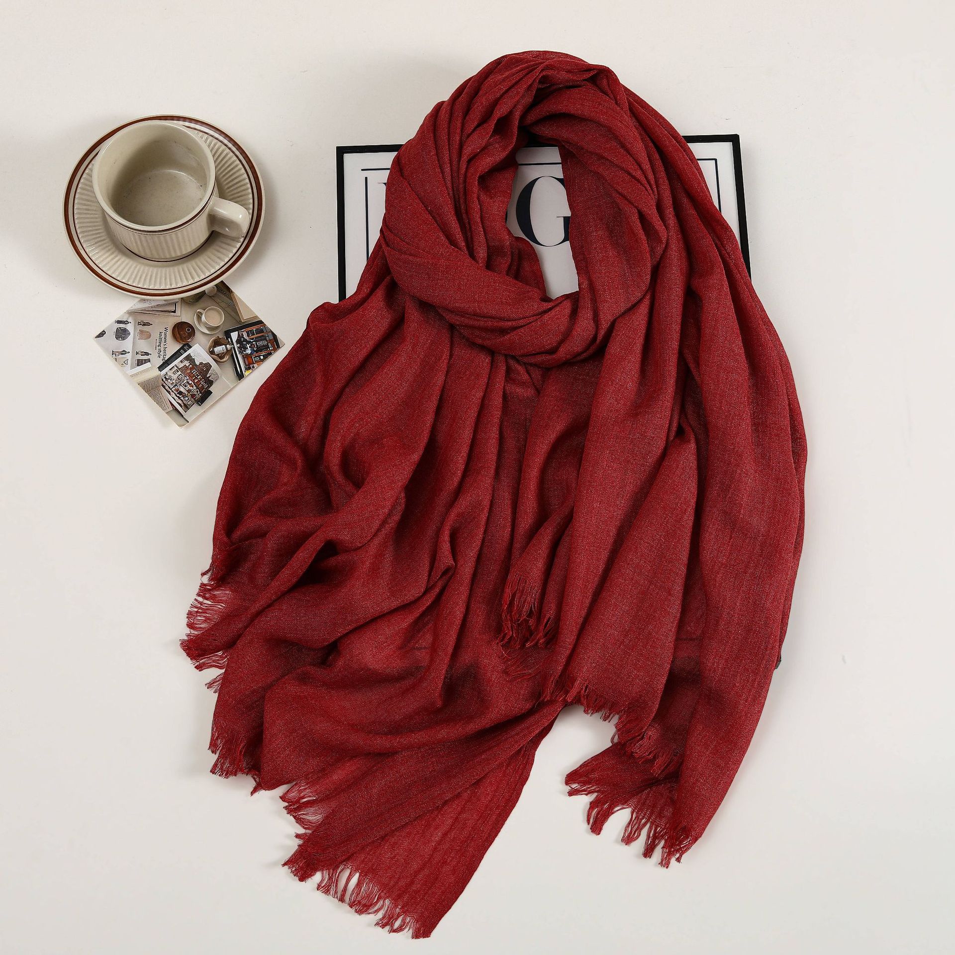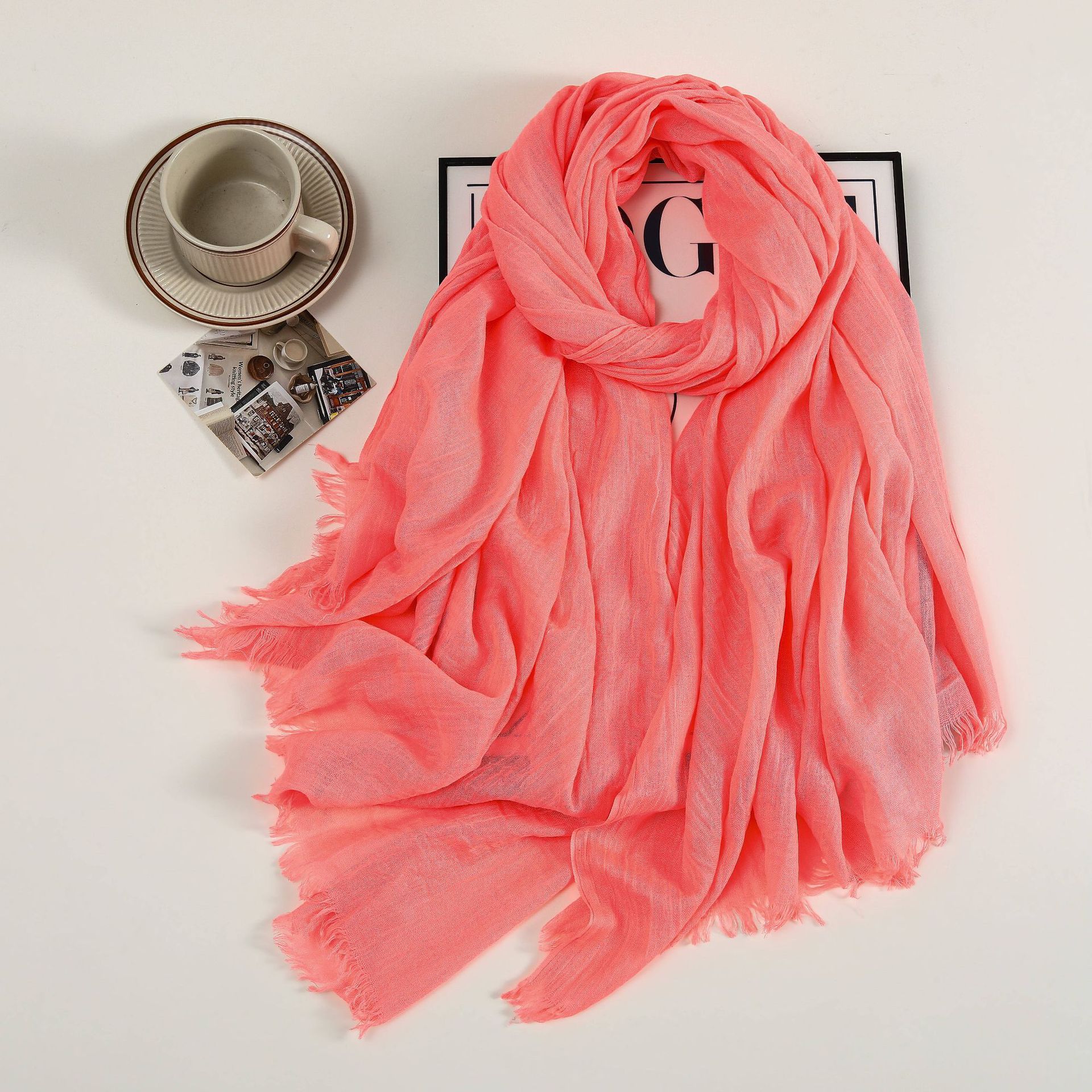 새로운 솔리드 컬러 코튼 및 리넨 스카프 여성용 고급 실크 스카프 선스크린 헤드 스카프 예술적 비치 스카프 스카프 대형 목도리스토어 가기