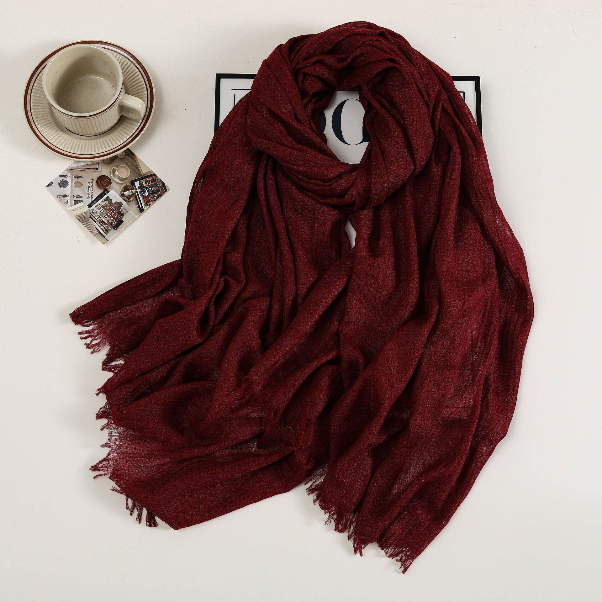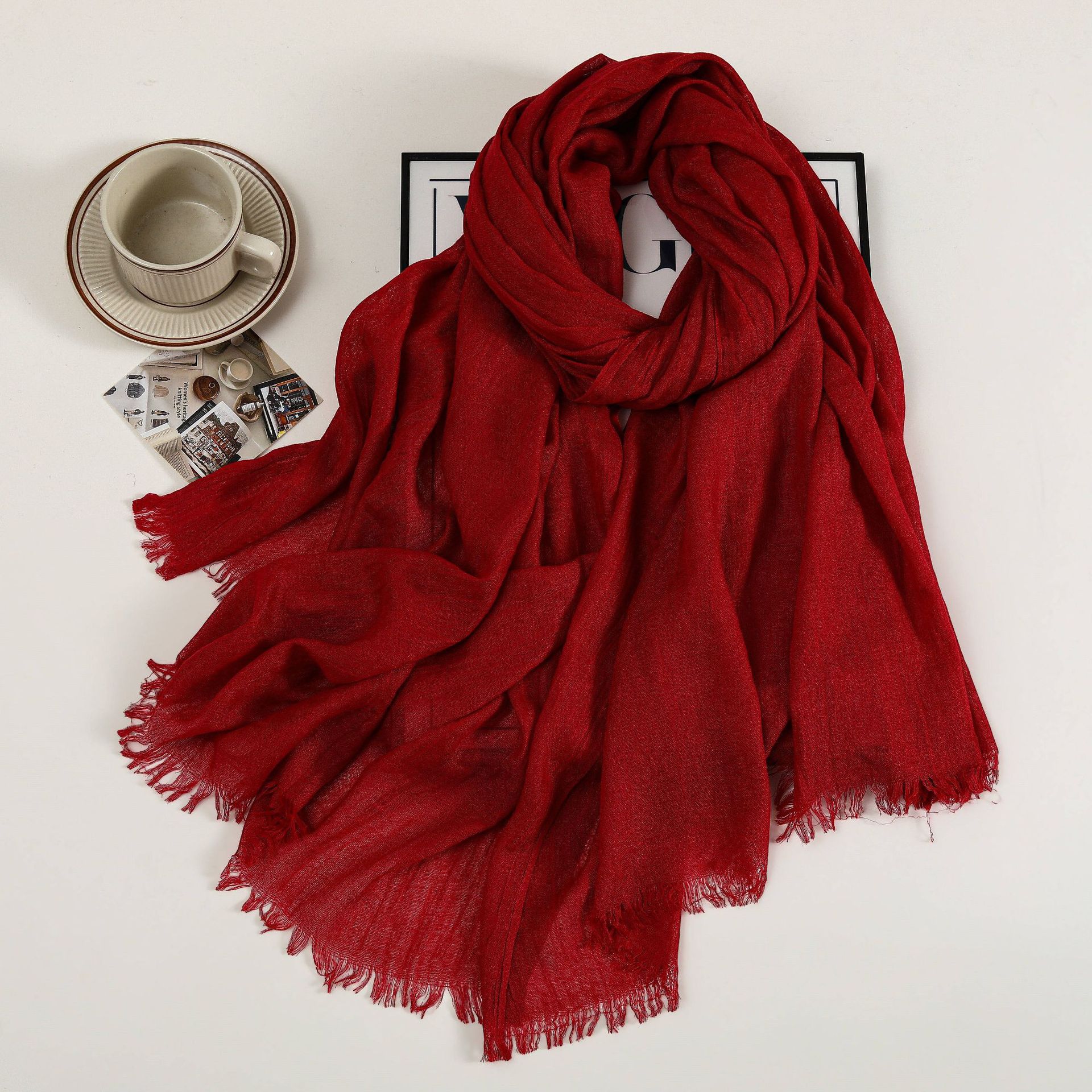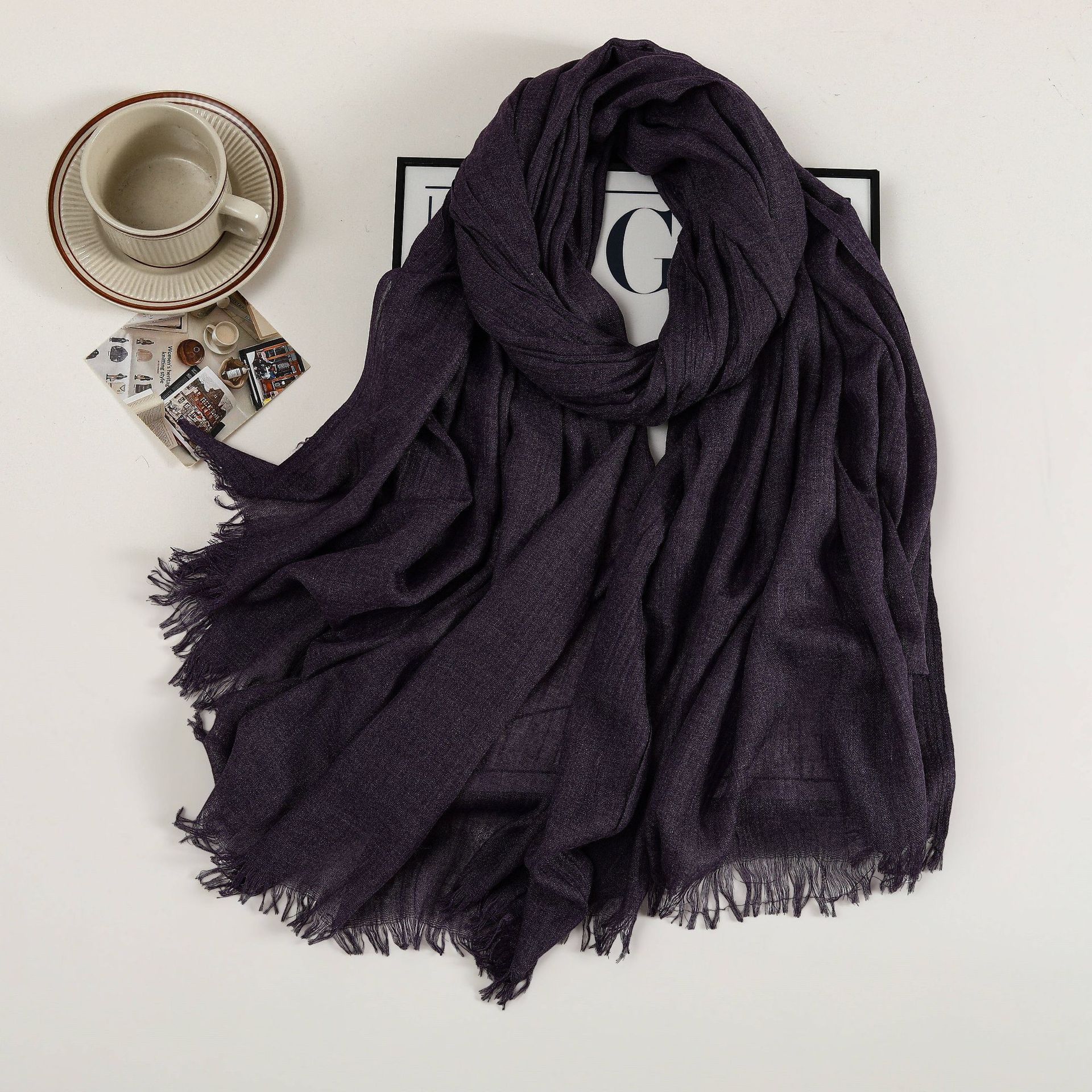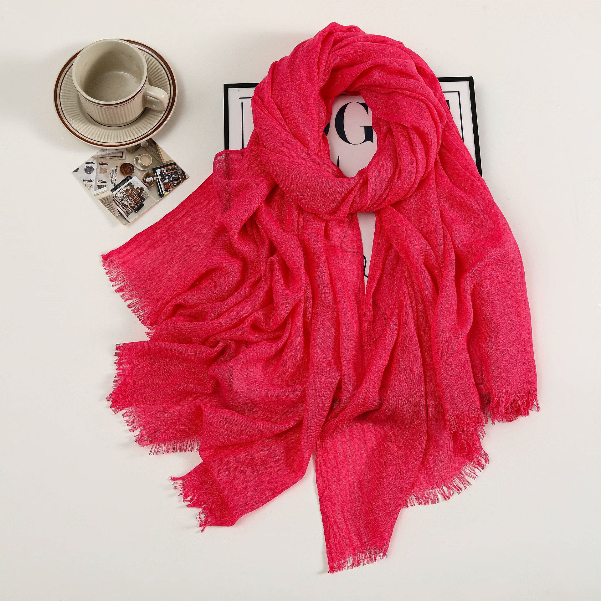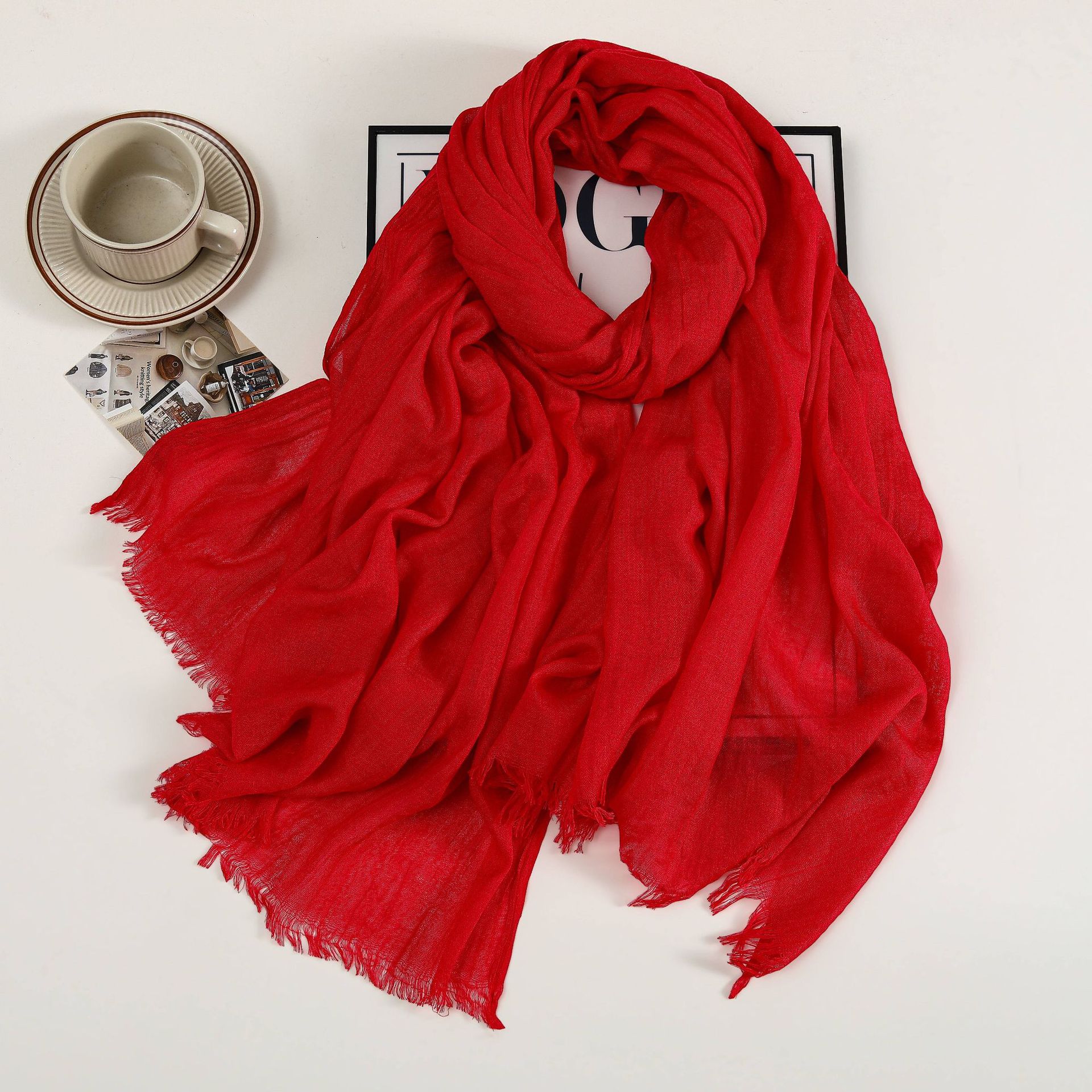 새로운 솔리드 컬러 코튼 및 리넨 스카프 여성용 고급 실크 스카프 선스크린 헤드 스카프 예술적 비치 스카프 스카프 대형 목도리스토어 가기