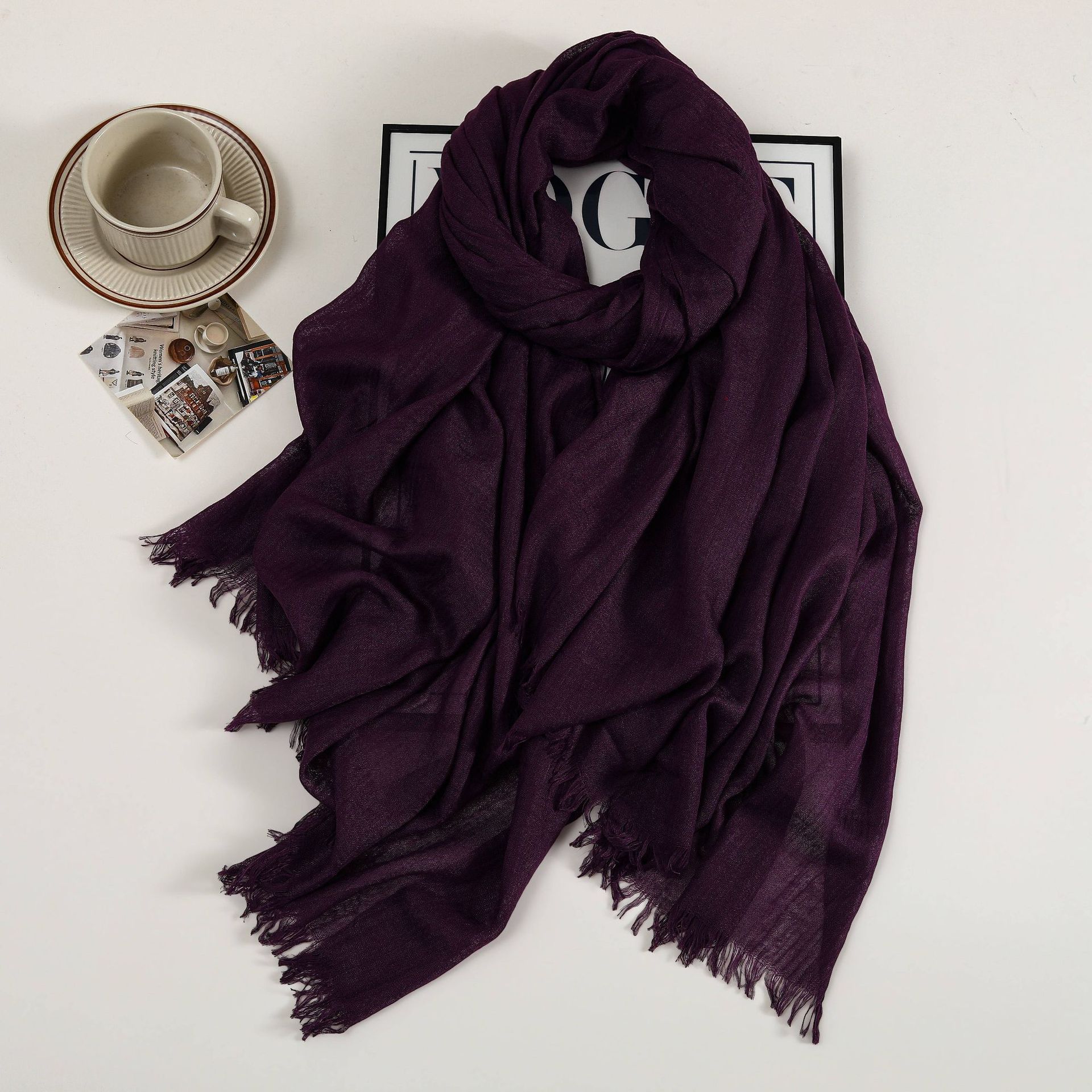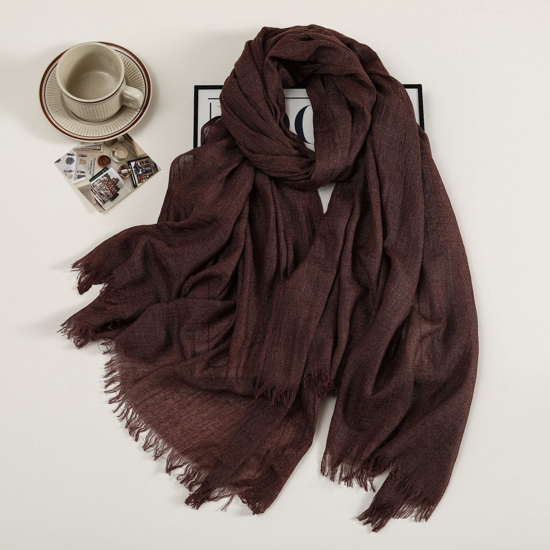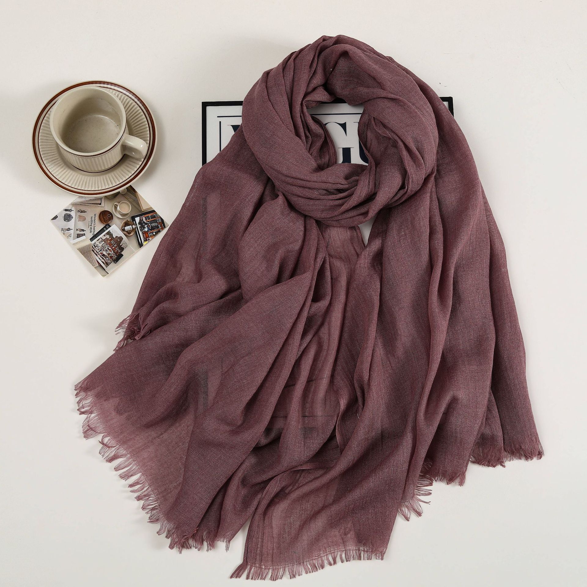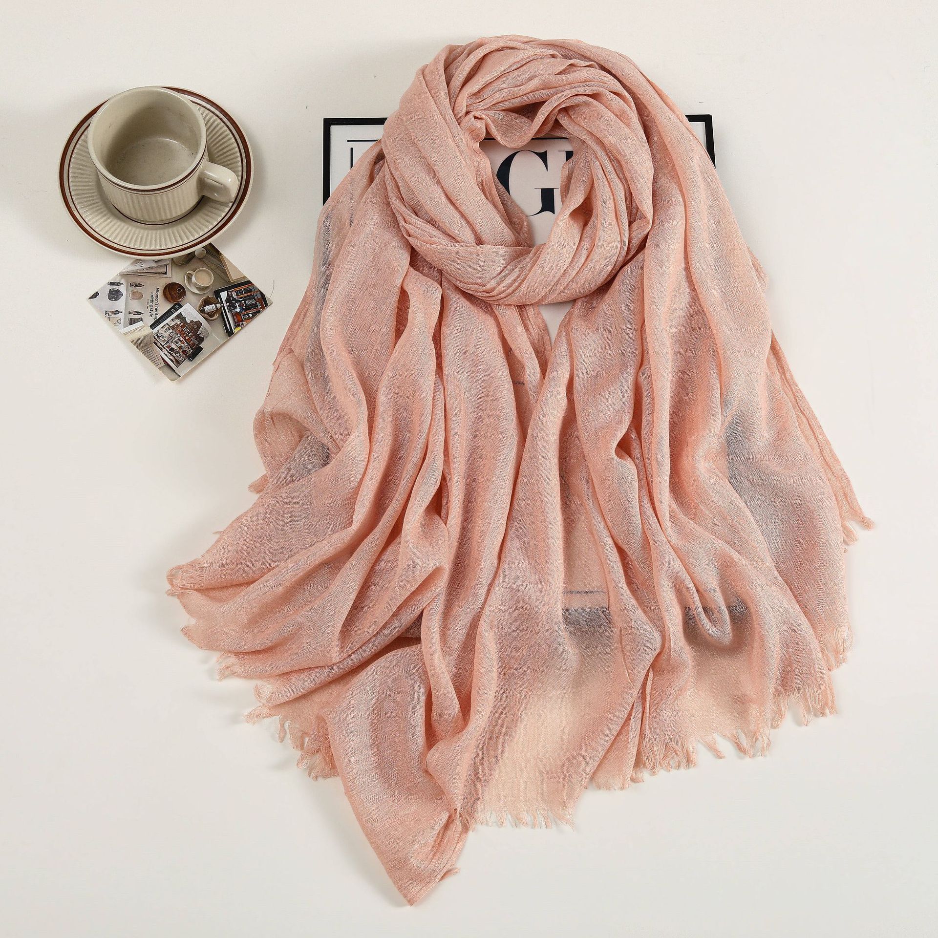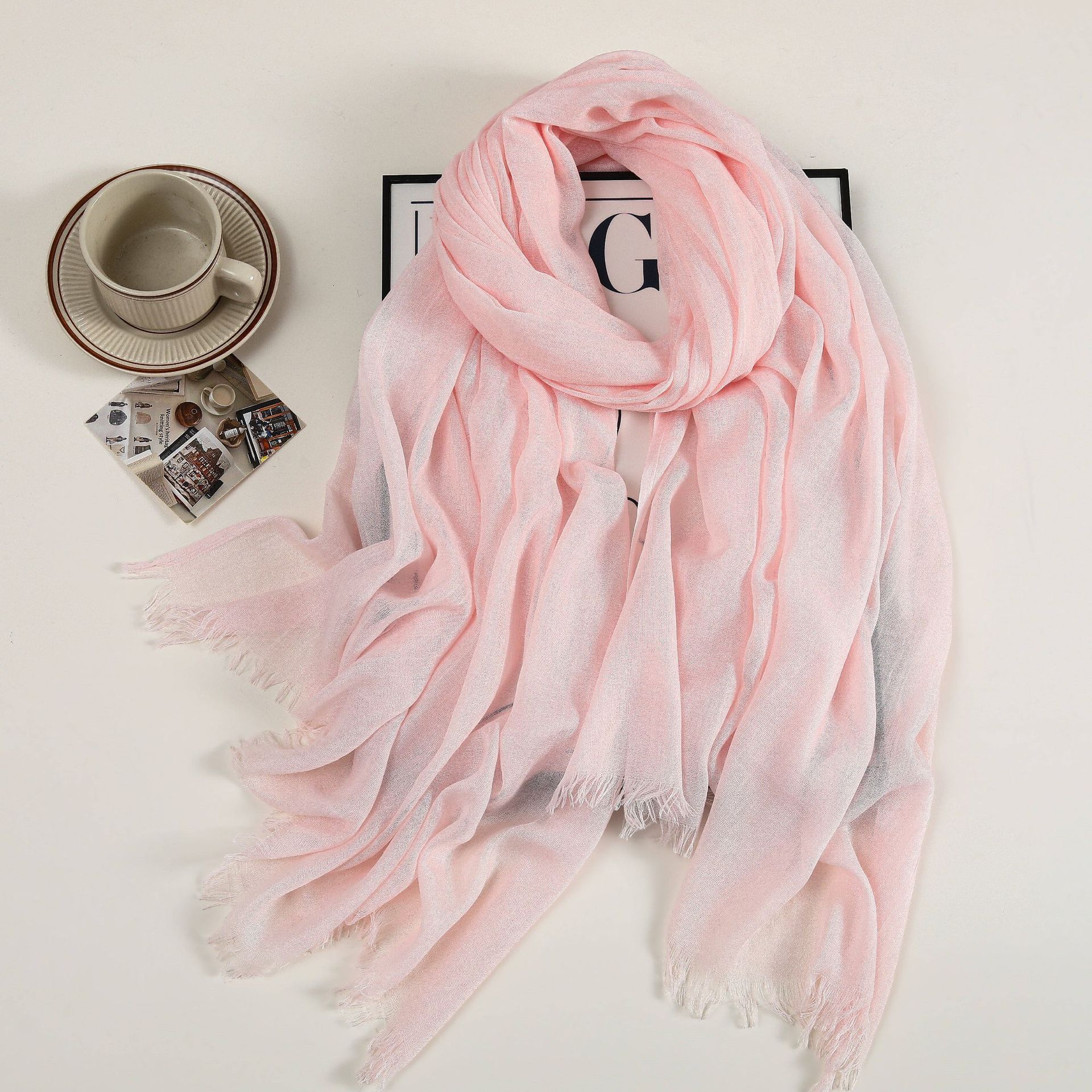 새로운 솔리드 컬러 코튼 및 리넨 스카프 여성용 고급 실크 스카프 선스크린 헤드 스카프 예술적 비치 스카프 스카프 대형 목도리