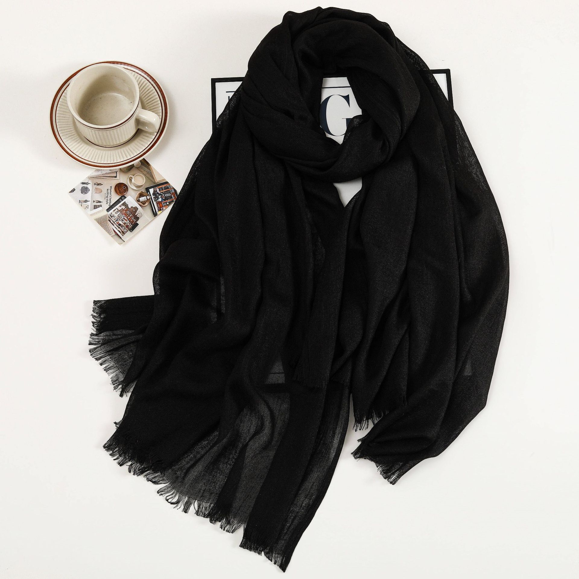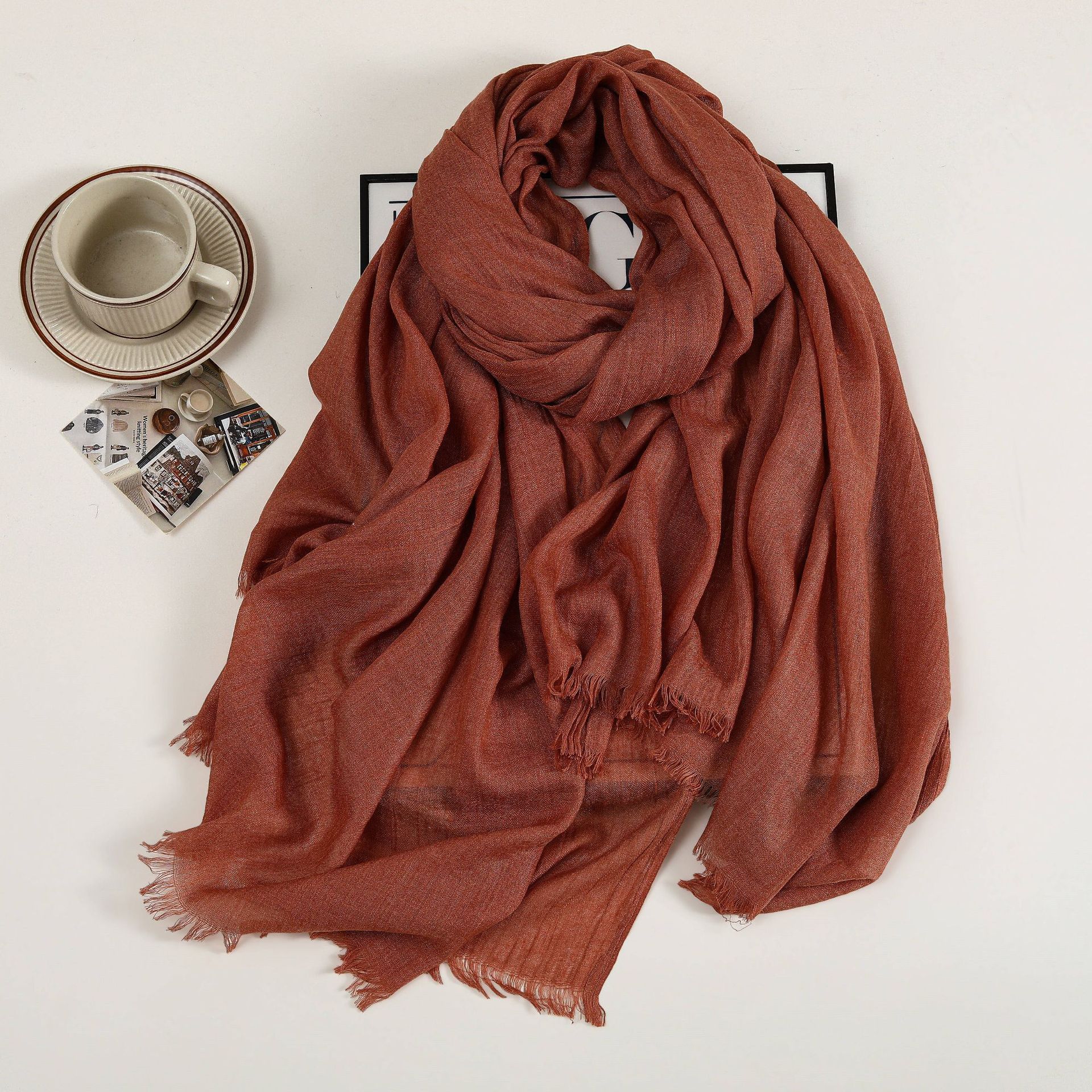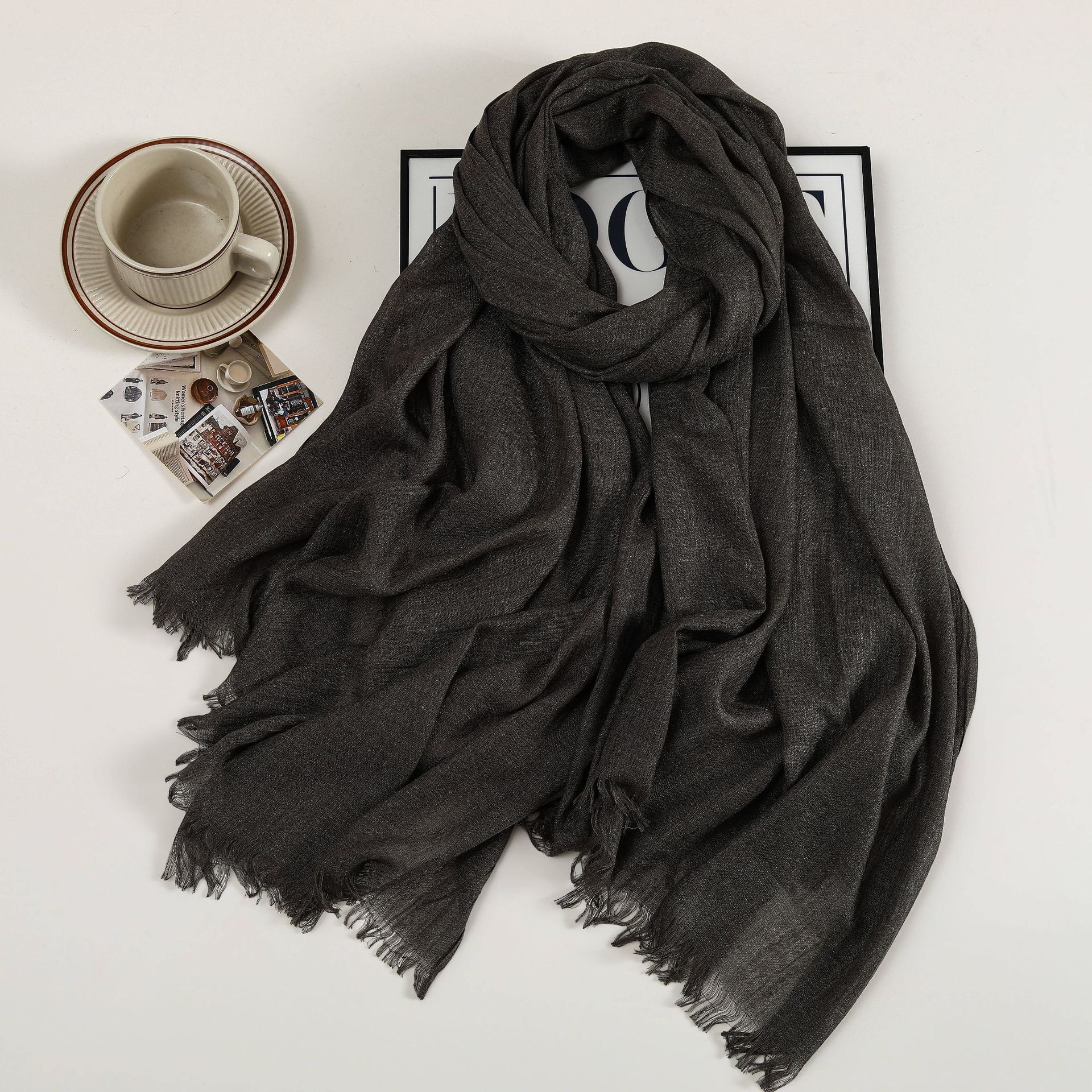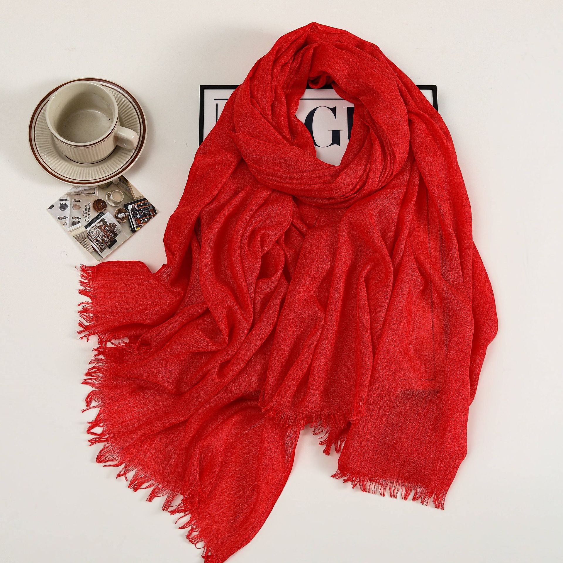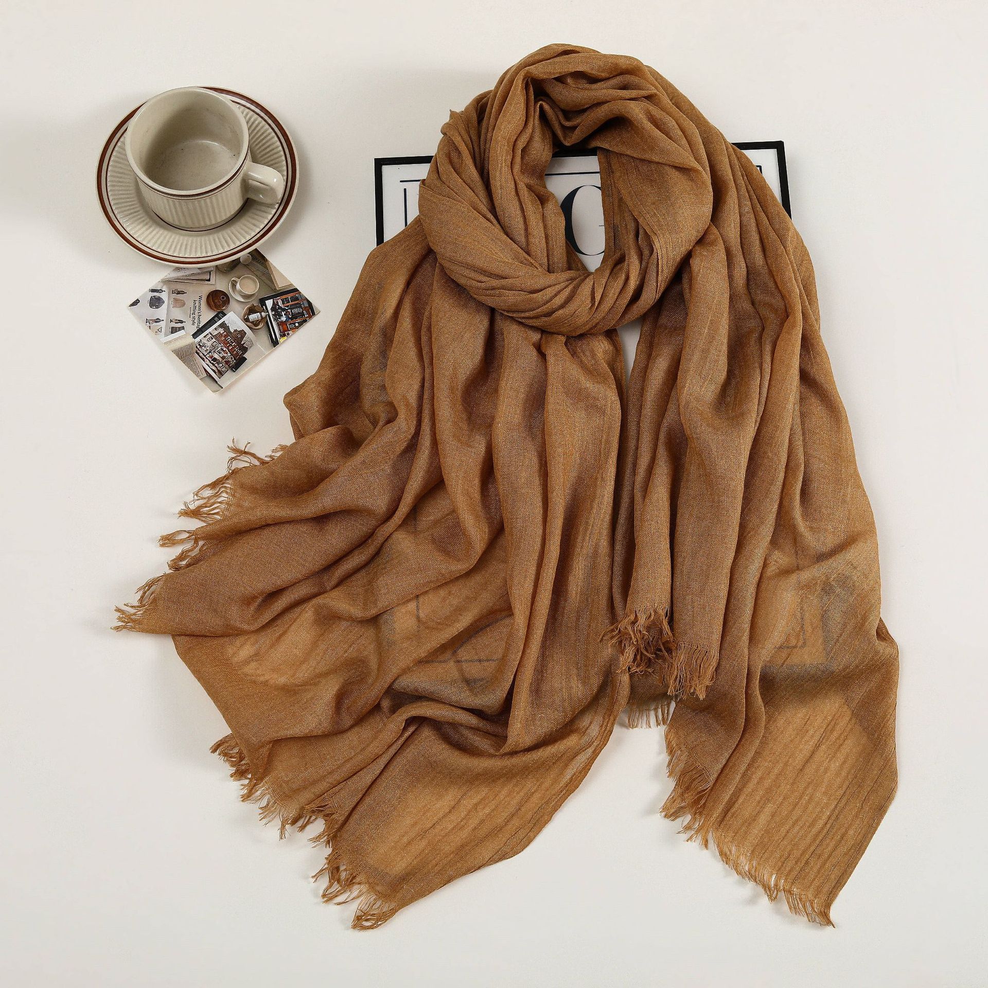 새로운 솔리드 컬러 코튼 및 리넨 스카프 여성용 고급 실크 스카프 선스크린 헤드 스카프 예술적 비치 스카프 스카프 대형 목도리
