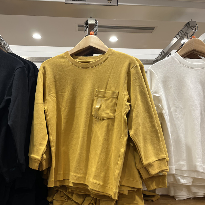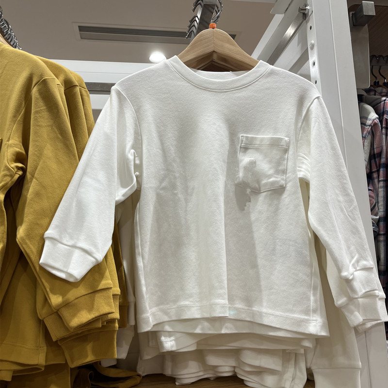 일본 단일 봄과 가을 아동복/소년/소녀 어린이의 큰 부드러운 단색 둥근 목 긴 소매 티셔츠베이스 셔츠 46008스토어 가기