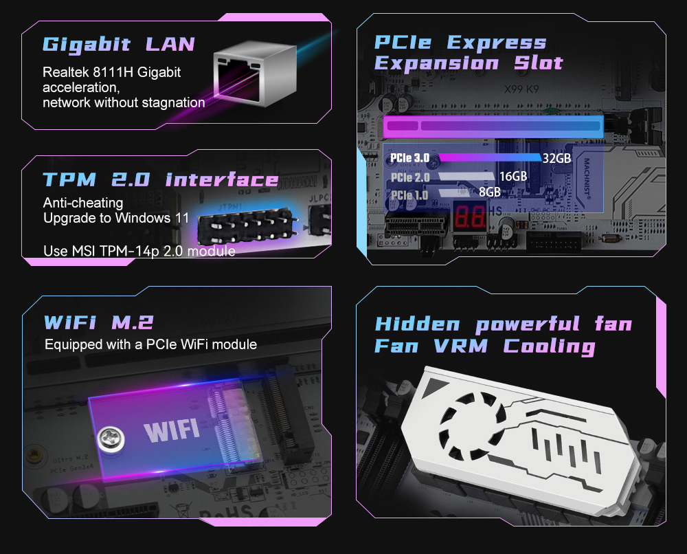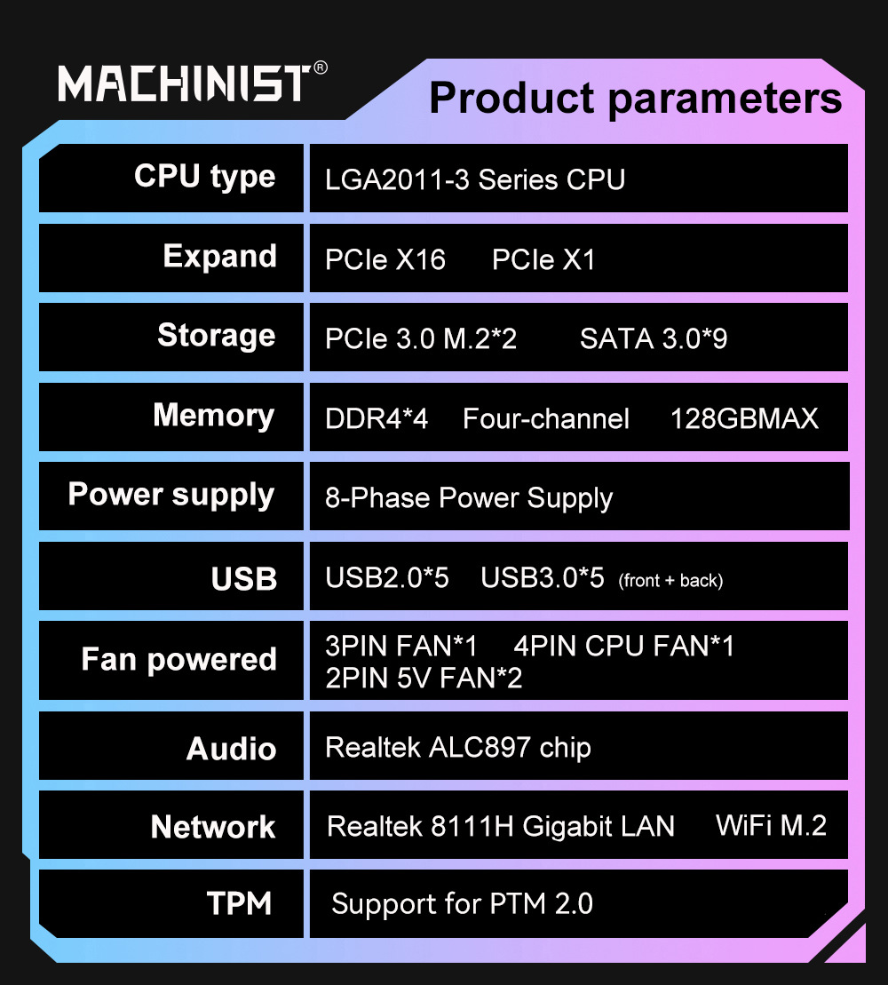 마치니스트 X99 K9 마더보드 C612 TPM2.0 4채널 DDR4
