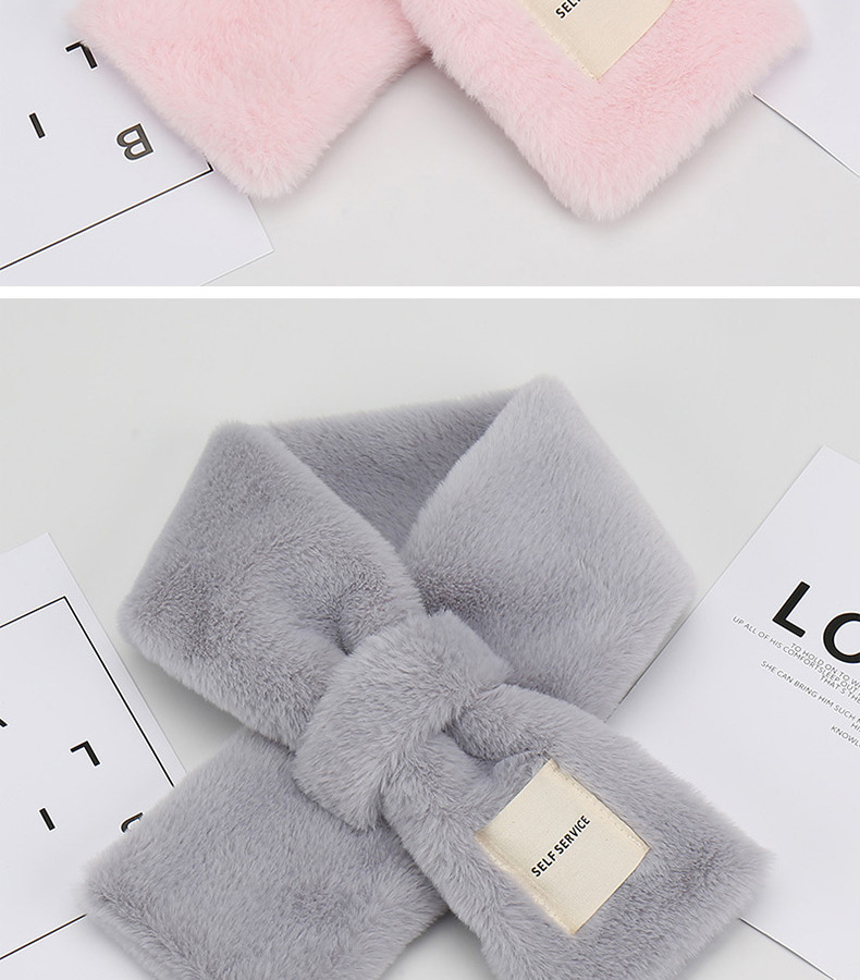 가을과 겨울 여성 모조 토끼 모피 봉제 스카프 부드러운 목 학생 여성 단색 크로스 따뜻한 두꺼운 한국 스타일 스카프스토어 가기