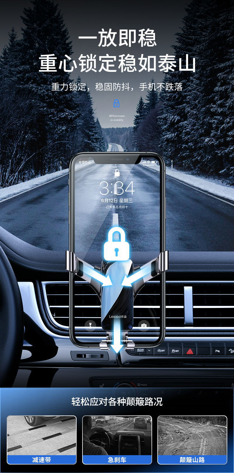 Leyi 자동차 휴대 전화 브래킷 안티 쉐이크 2023 새로운 내비게이션 특수 자동차 고정 브래킷 에어 콘센트 유니버설