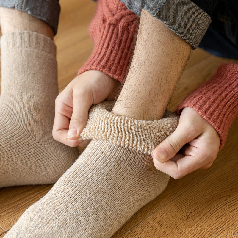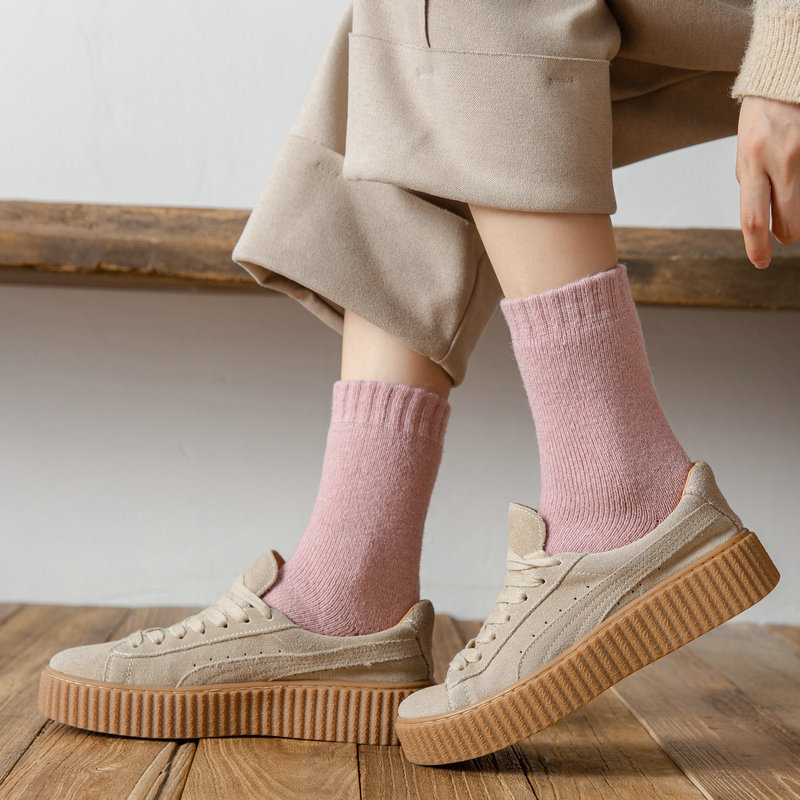 가을과 겨울 새로운 남성과 여성의 양모 양말 따뜻한 여성 양말 테리 두꺼운 양말 단색 양말 양말 양말 문 양말