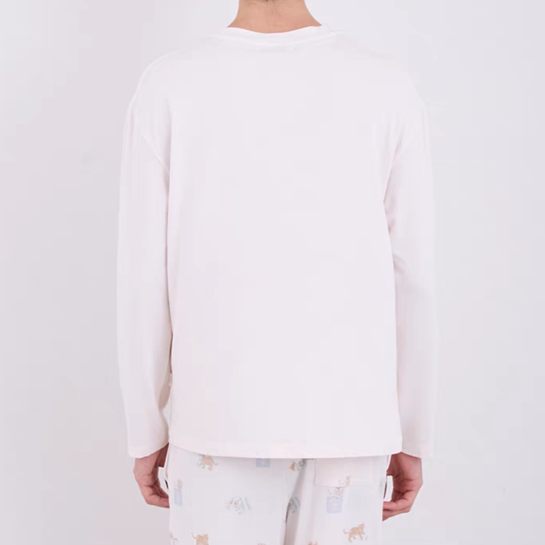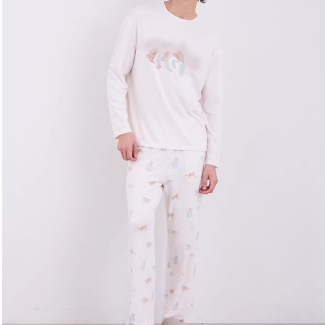 gp 무라벨 오리지널 가을 부드러운 아이스크림 남성 만화 고양이 프린트 부드러운 긴바지 세트 잠옷 홈웨어