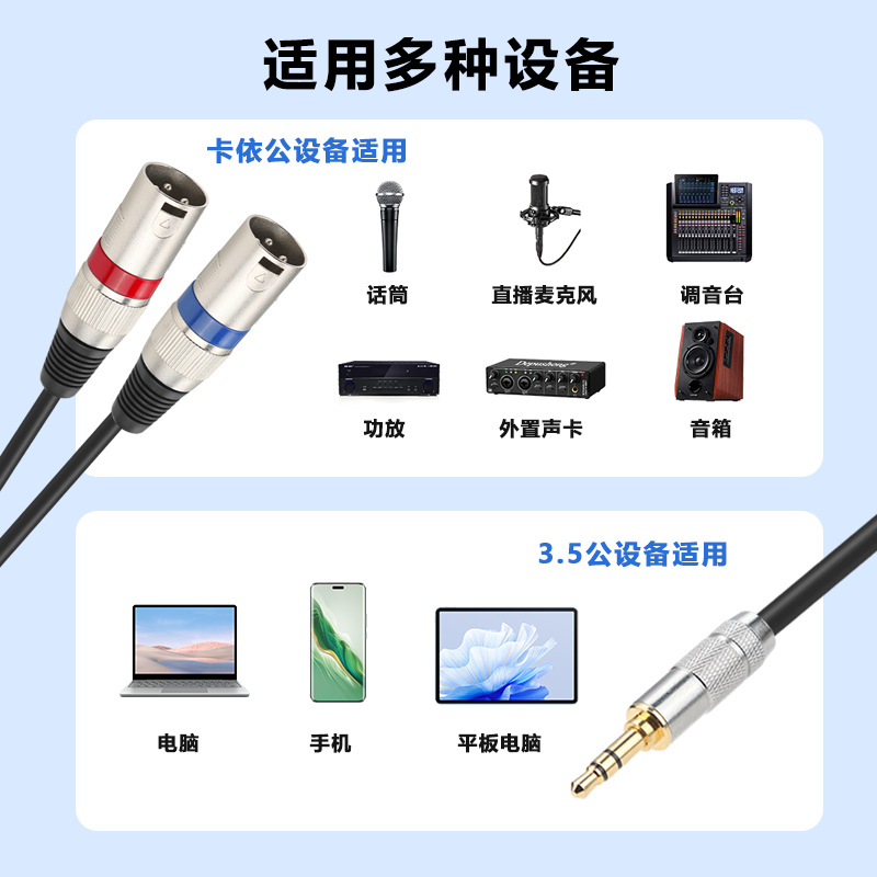 3.5mm 혁명 더블 캐논 3 코어 남성 3.5 ~ 2XLR 휴대 전화 믹서 전원 증폭기 스피커 오디오 케이블