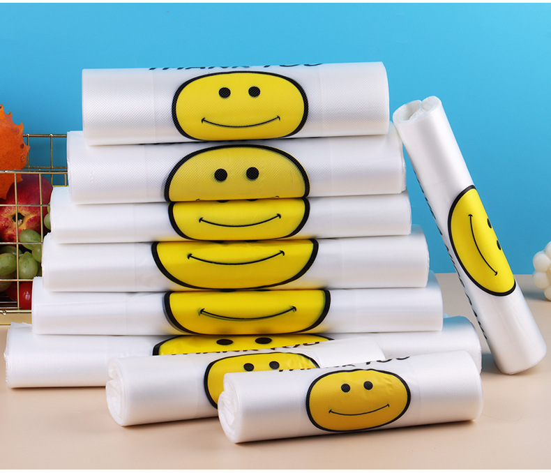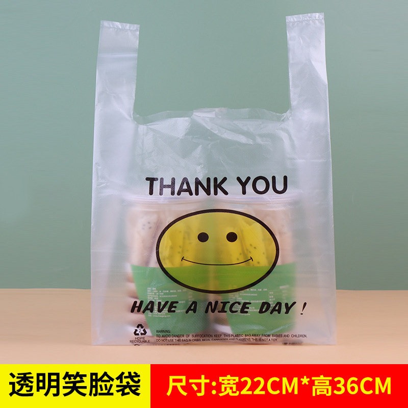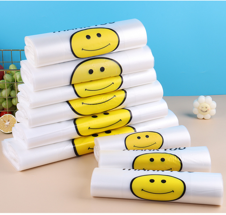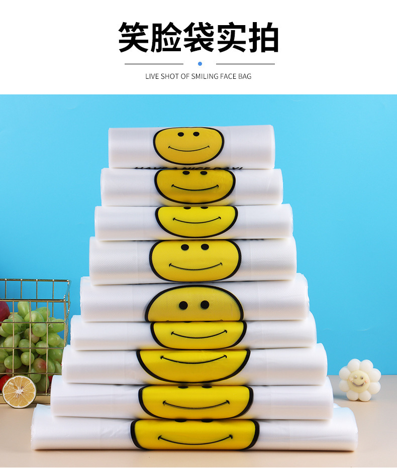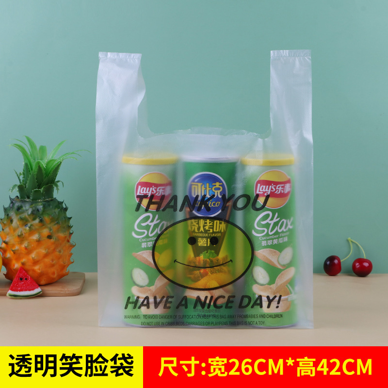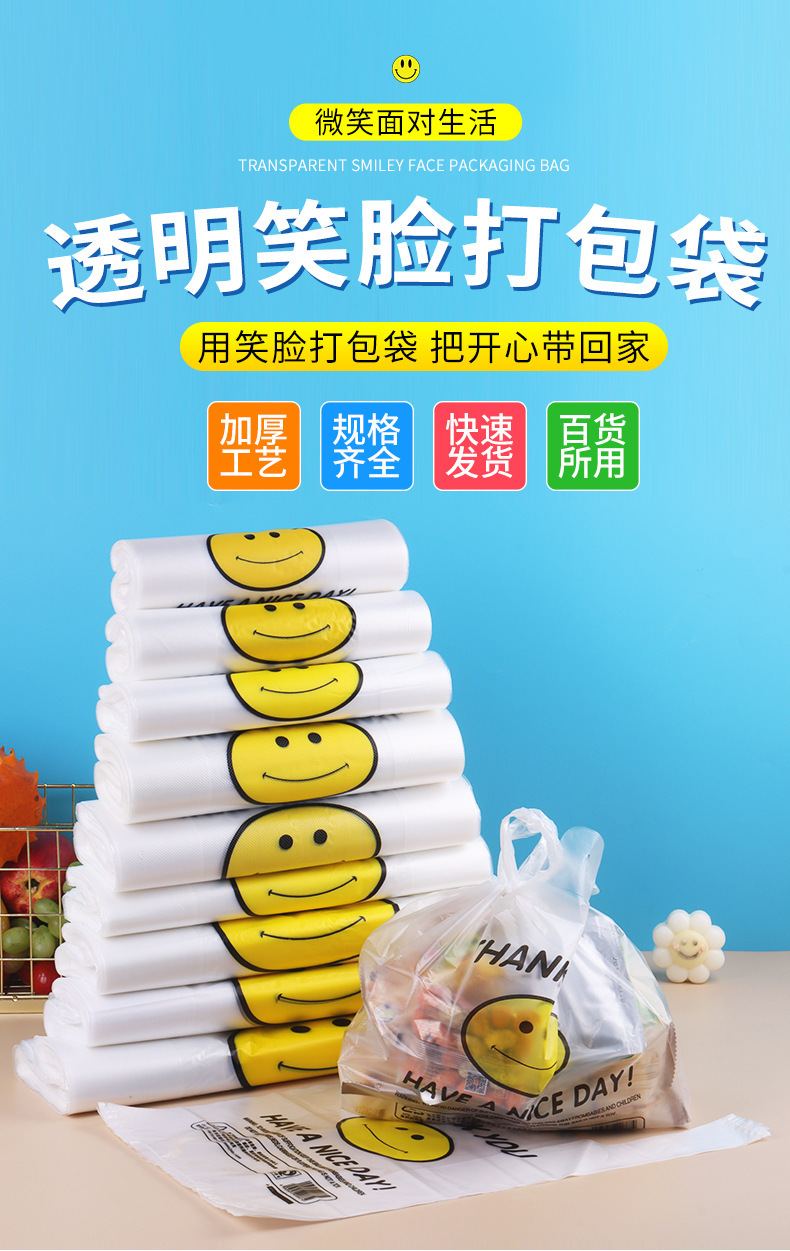 두꺼운 투명 웃는 비닐 봉투 테이크 아웃 식품 가방 상업용 가방 쇼핑 가방 편리한 핸드백 도매스토어 가기
