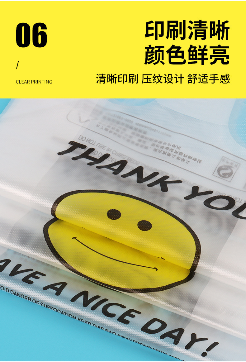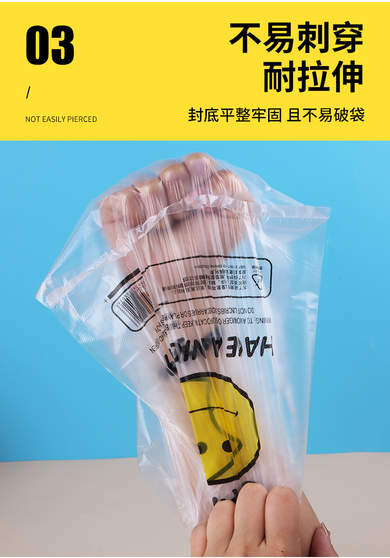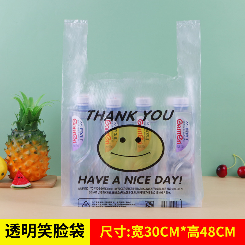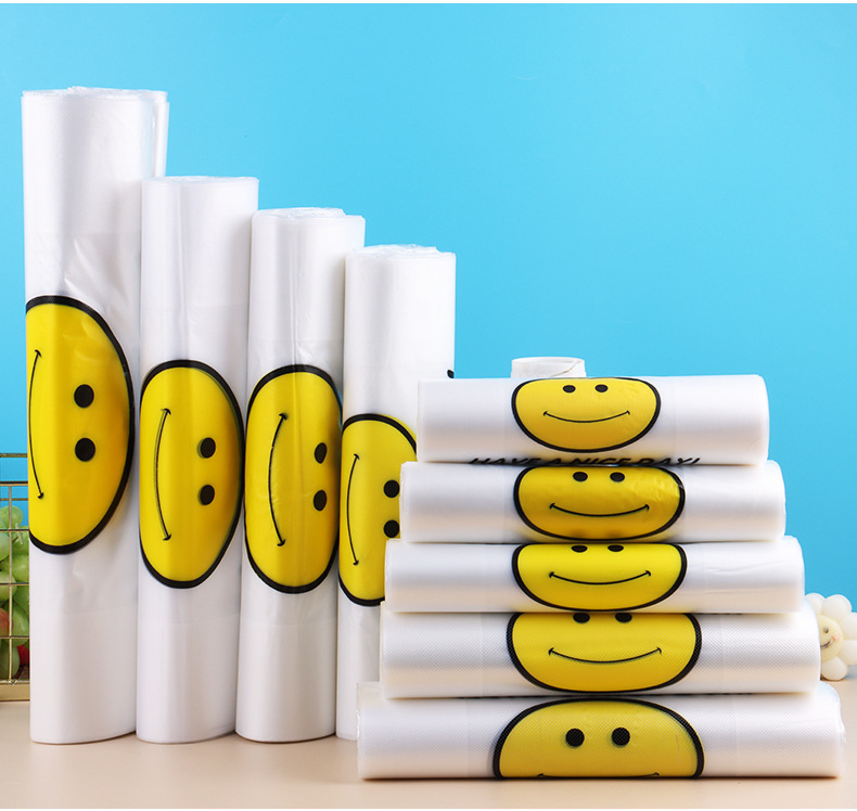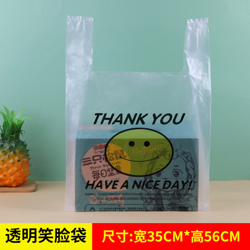 두꺼운 투명 웃는 비닐 봉투 테이크 아웃 식품 가방 상업용 가방 쇼핑 가방 편리한 핸드백 도매스토어 가기