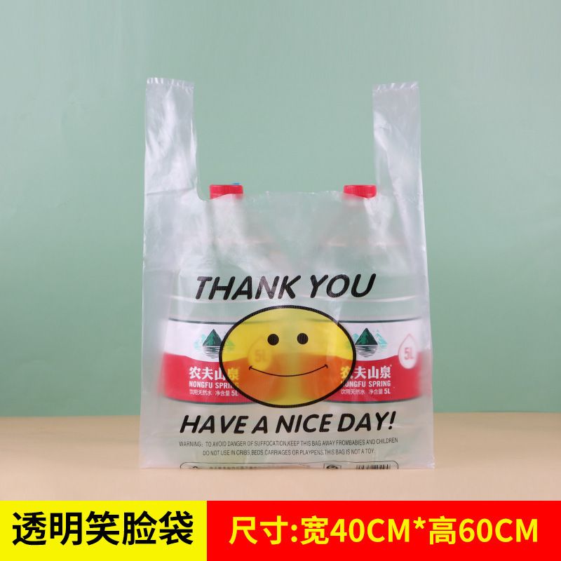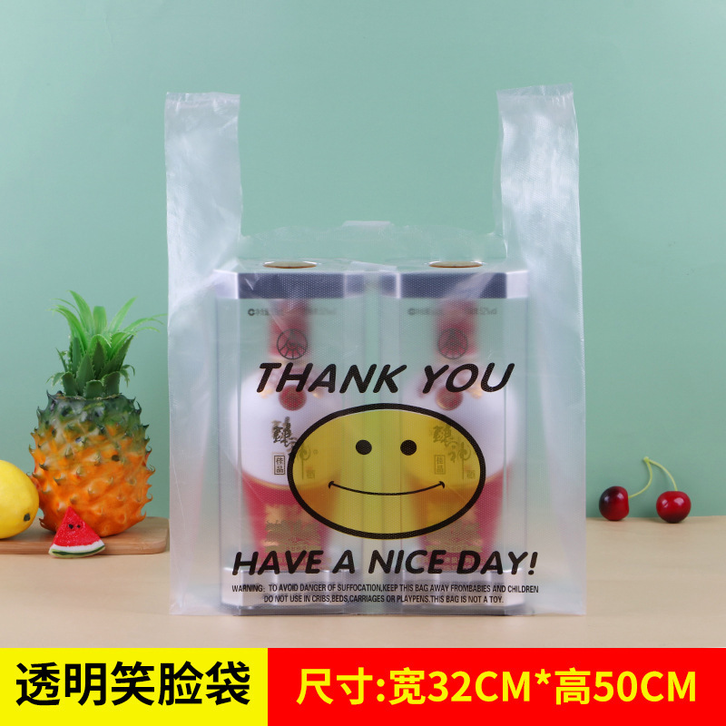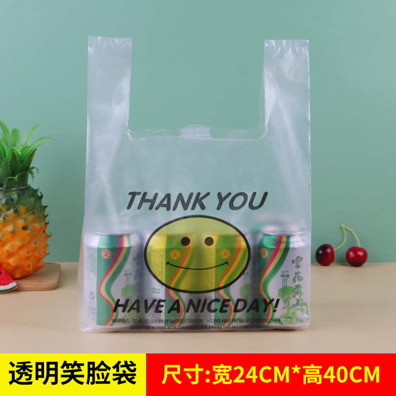 두꺼운 투명 웃는 비닐 봉투 테이크 아웃 식품 가방 상업용 가방 쇼핑 가방 편리한 핸드백 도매