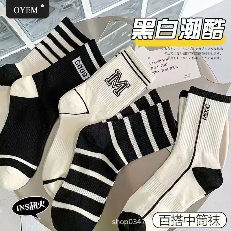 주지 양말 여성의 긴 양말 가을과 겨울 Maillard 바람 숙녀 조커 줄무늬 더미 양말 도매스토어 가기