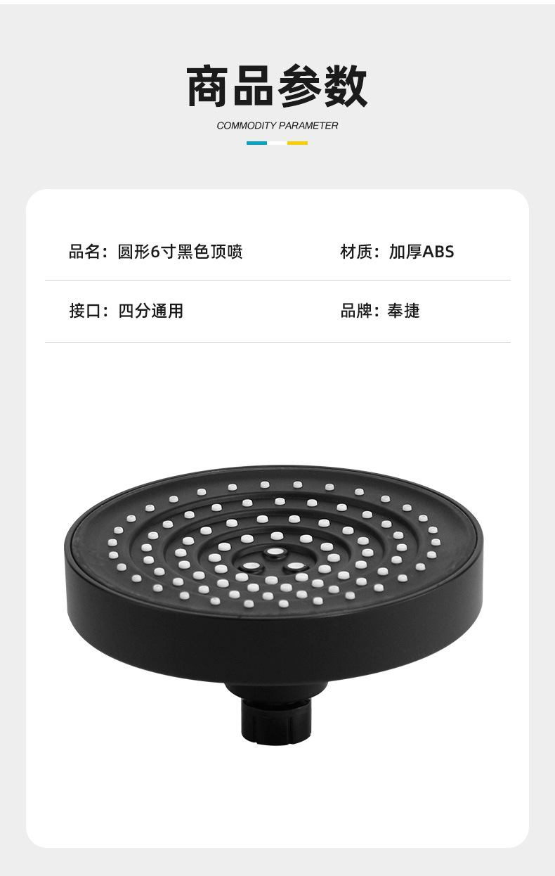 라운드 6 인치 블랙 탑 스프레이 욕실 샤워 헤드 비 탑 스프레이 싱글 헤드 샤워 헤드 ABS스토어 가기