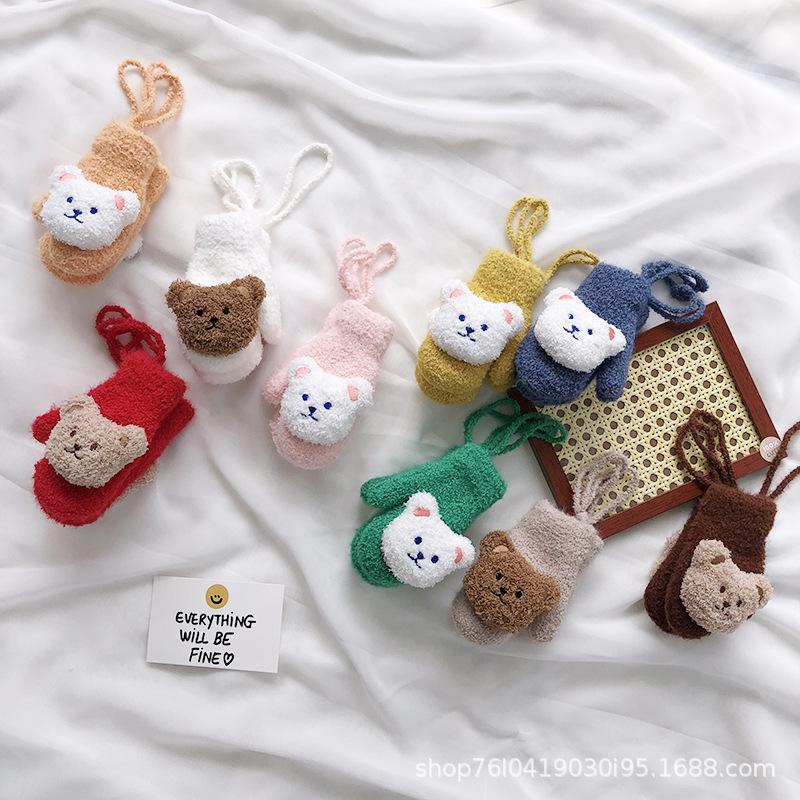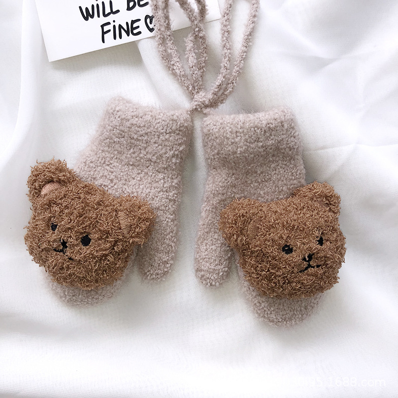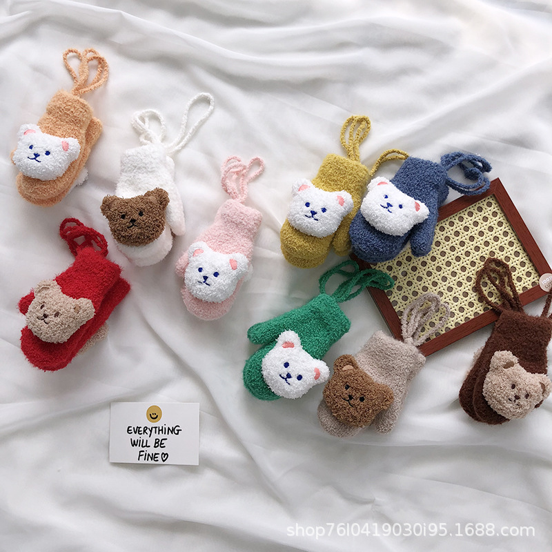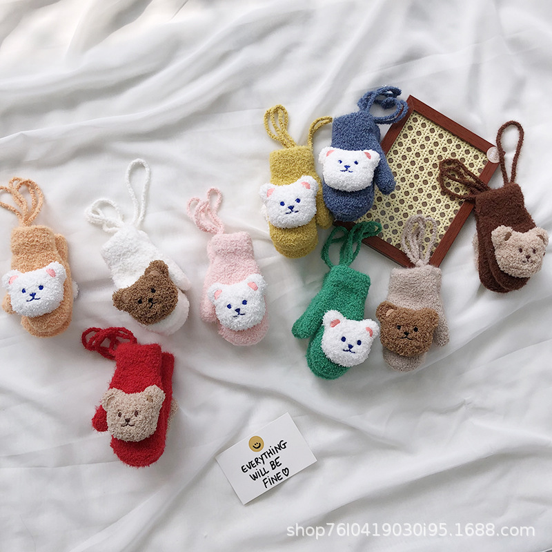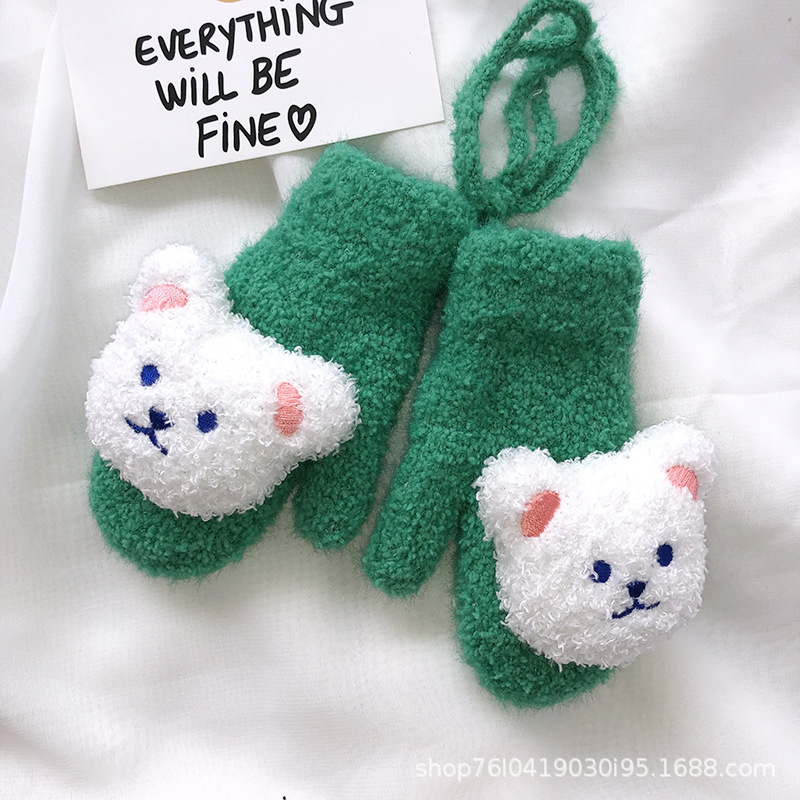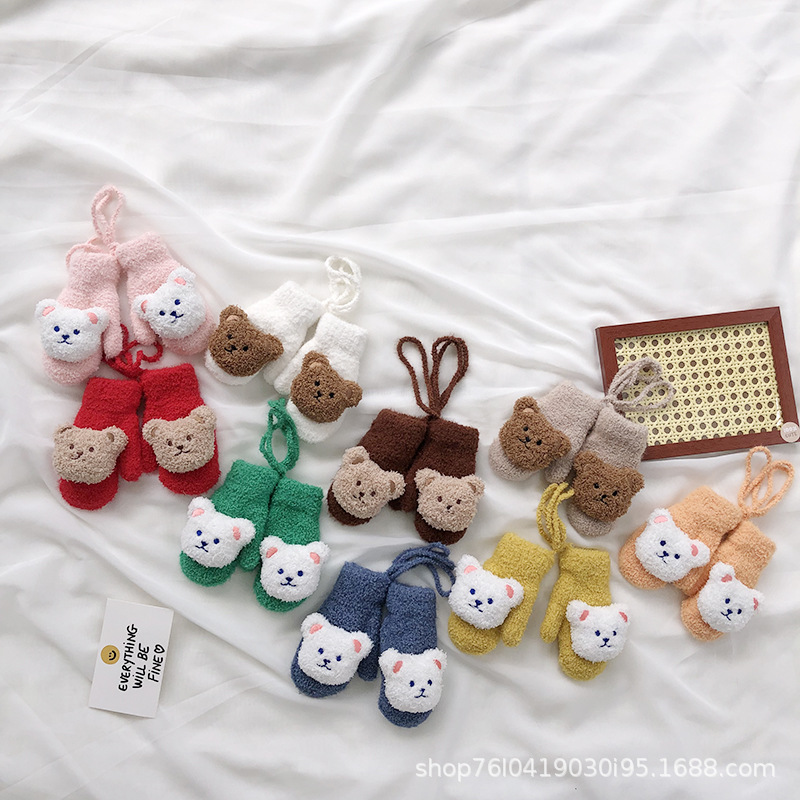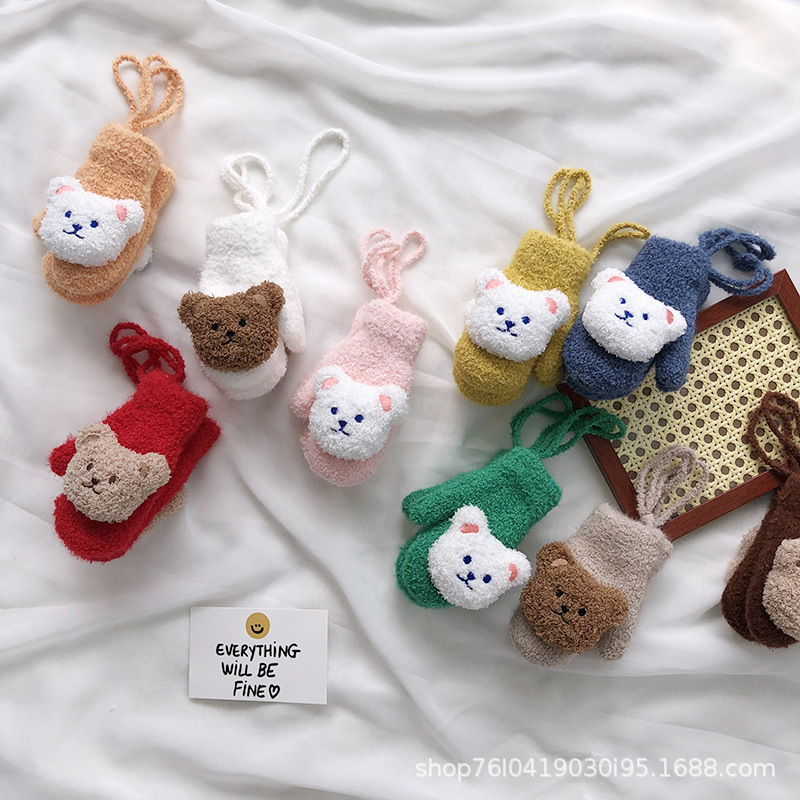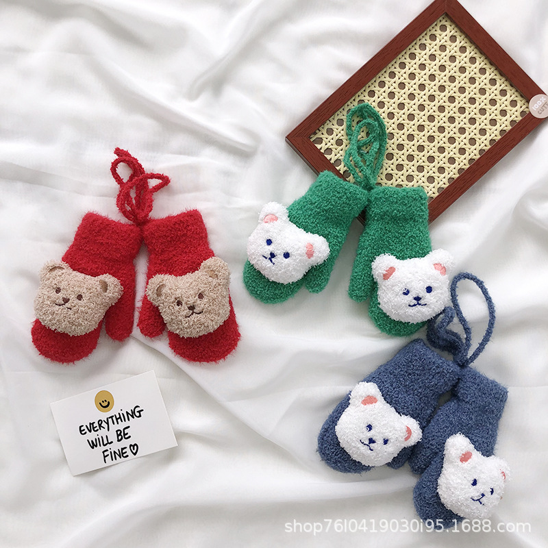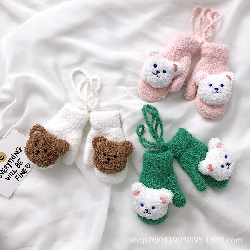 어린이 올 인 클루 시브 장갑 슈퍼 귀여운 곰 목 멀티 손가락 어린이 두꺼운 겨울 더블 레이어 니트 따뜻한 장갑 새로운스토어 가기