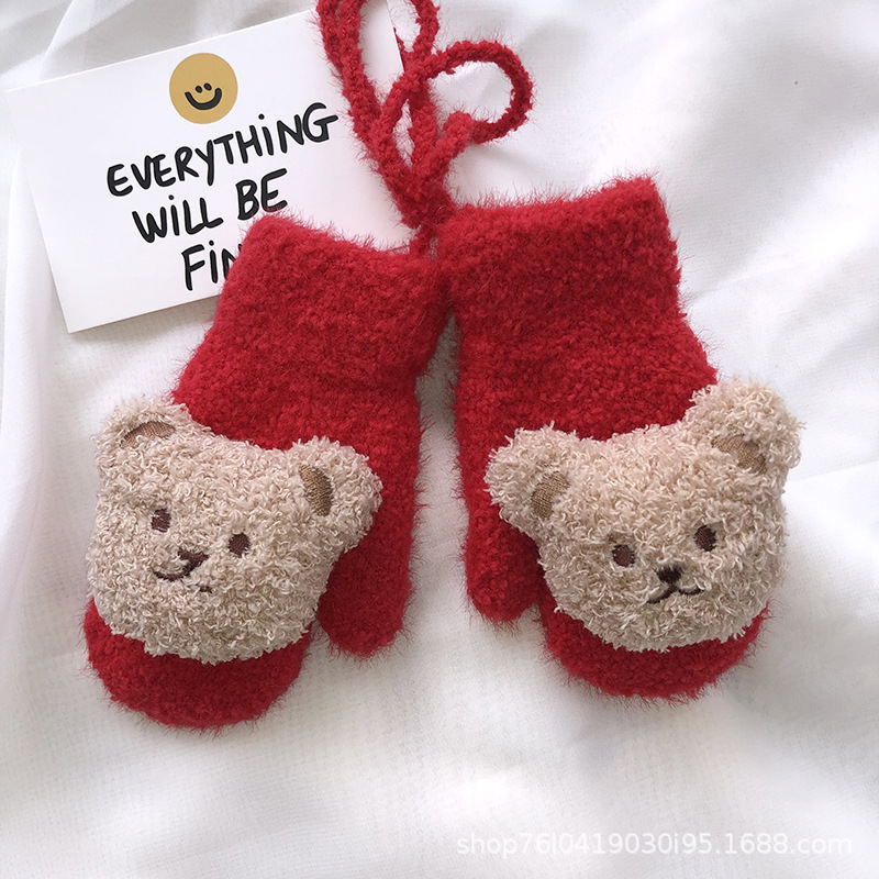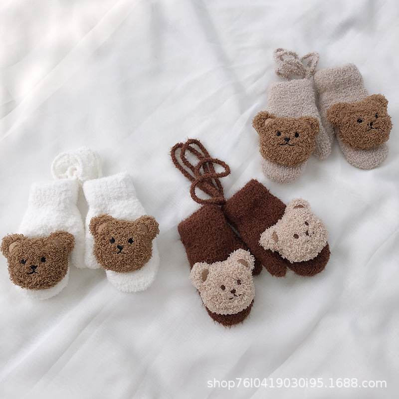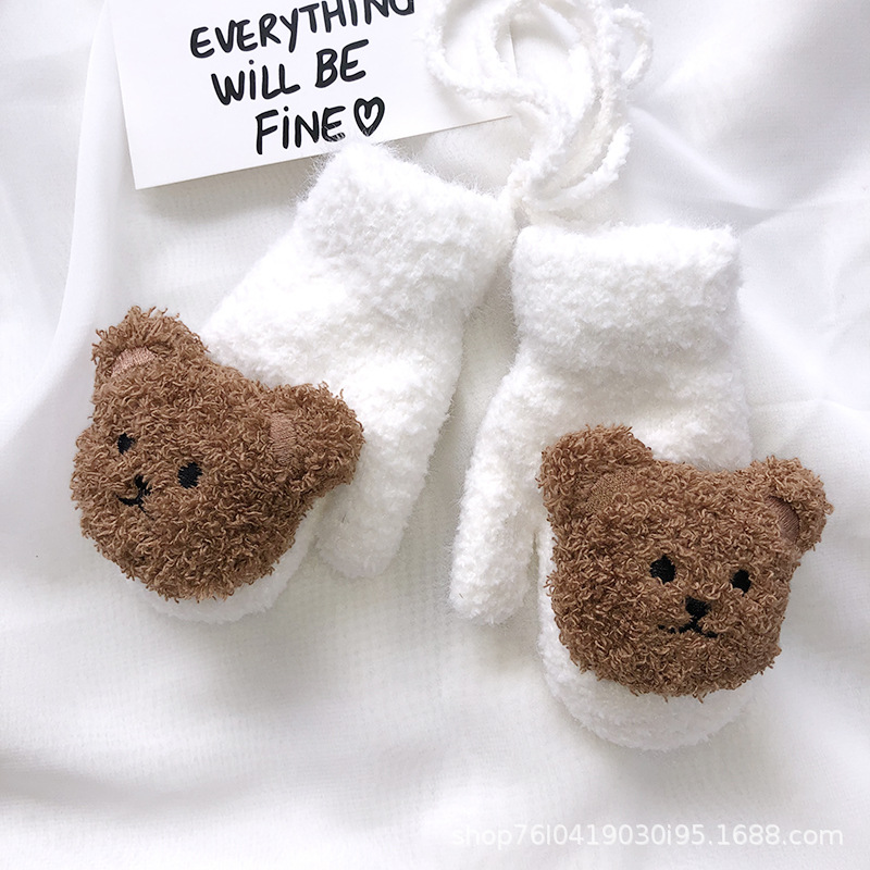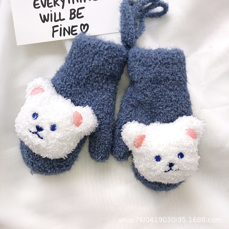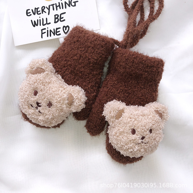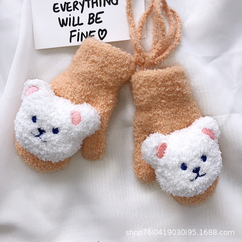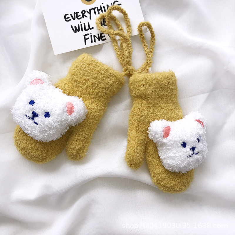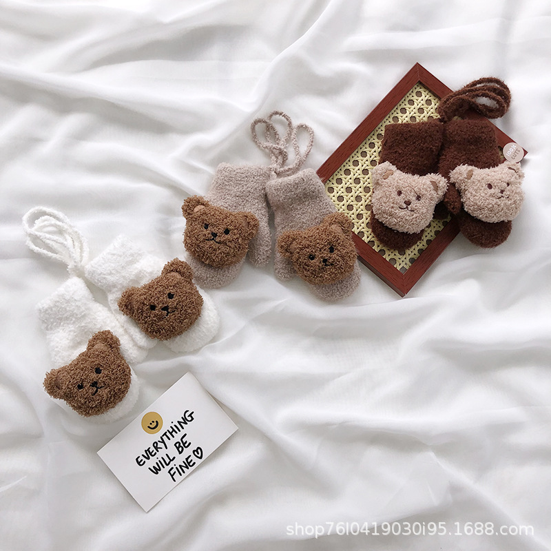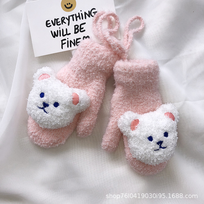 어린이 올 인 클루 시브 장갑 슈퍼 귀여운 곰 목 멀티 손가락 어린이 두꺼운 겨울 더블 레이어 니트 따뜻한 장갑 새로운스토어 가기
