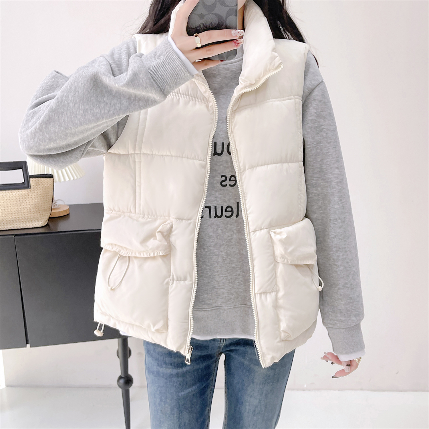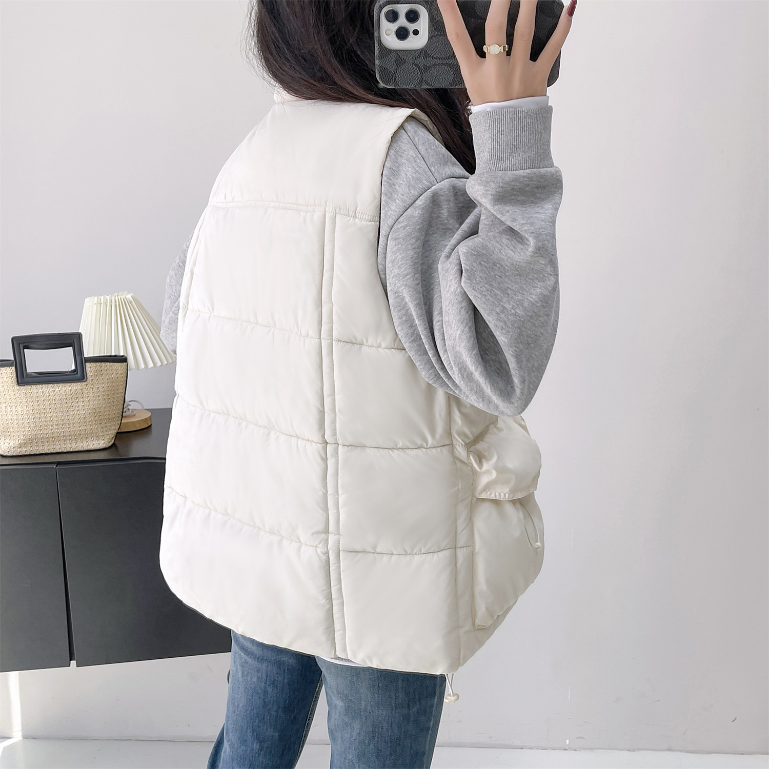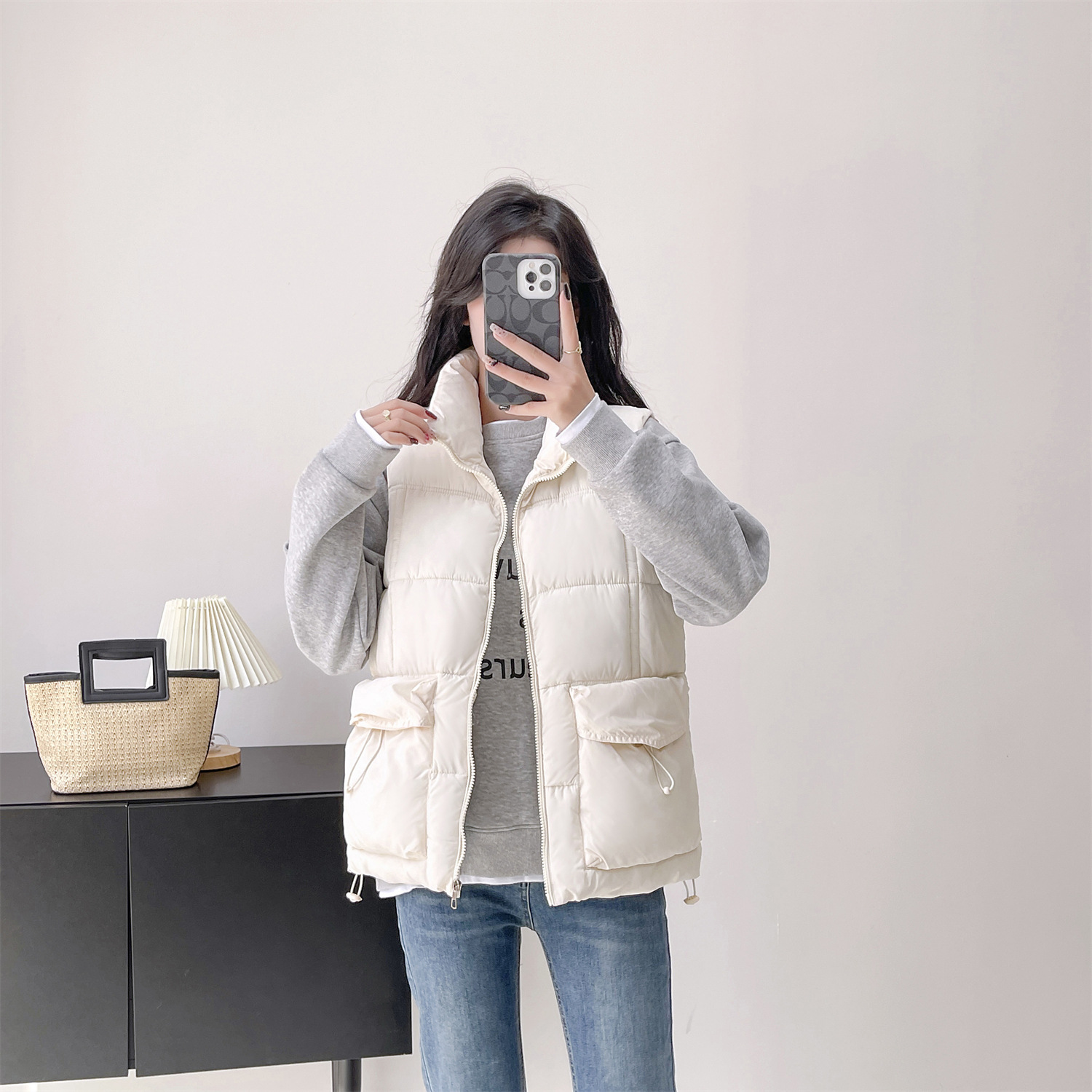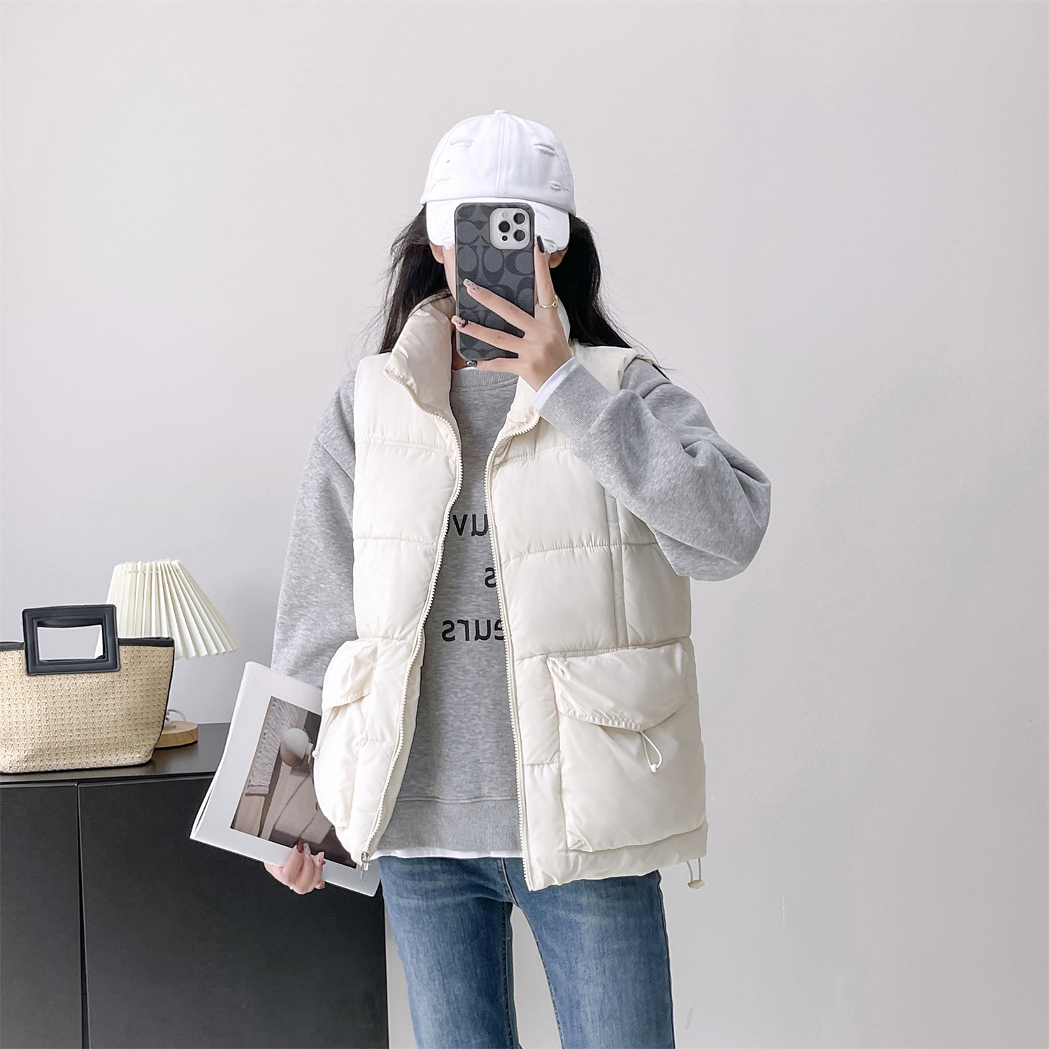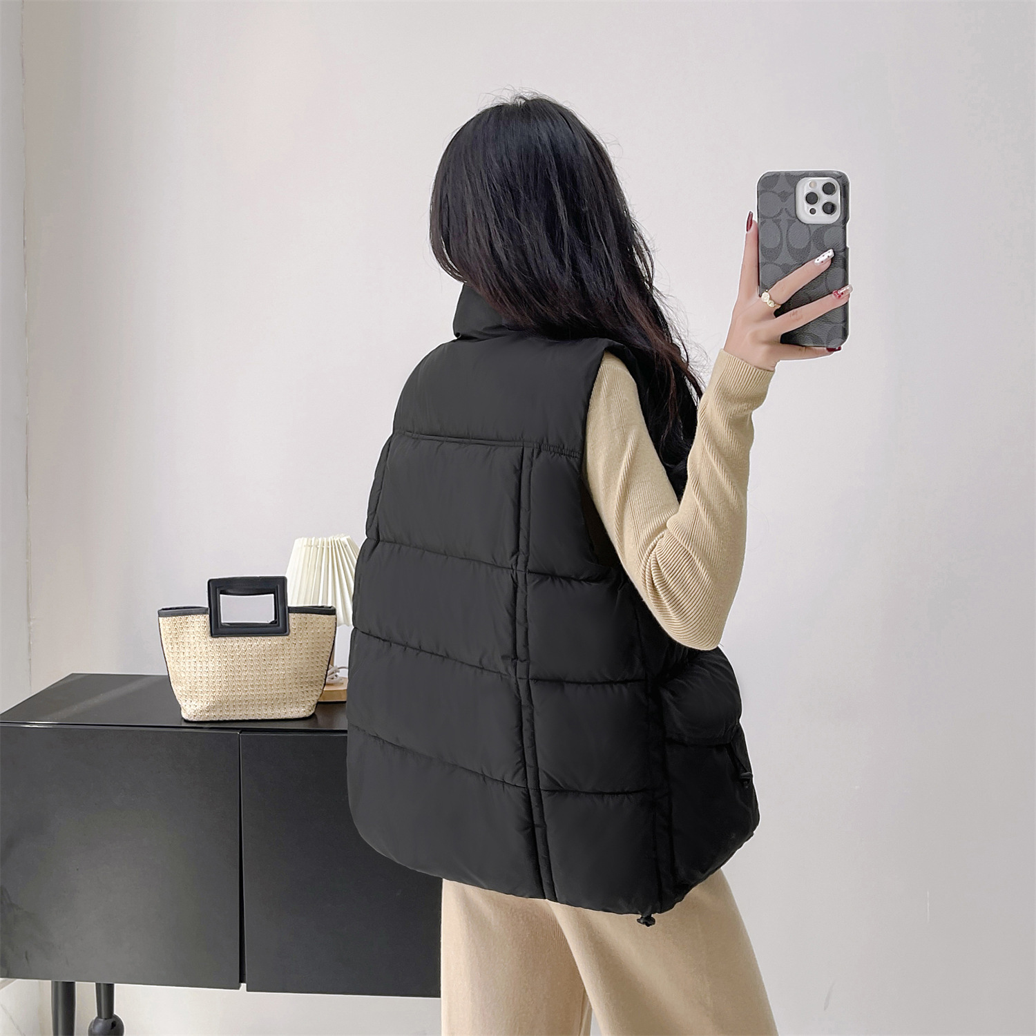 모조 다운 코튼 조끼 여성의 짧은 가을과 겨울 새로운 한국 스타일 느슨한 수직 칼라 조끼 웨이스트 코트 유행 여성 의류스토어 가기
