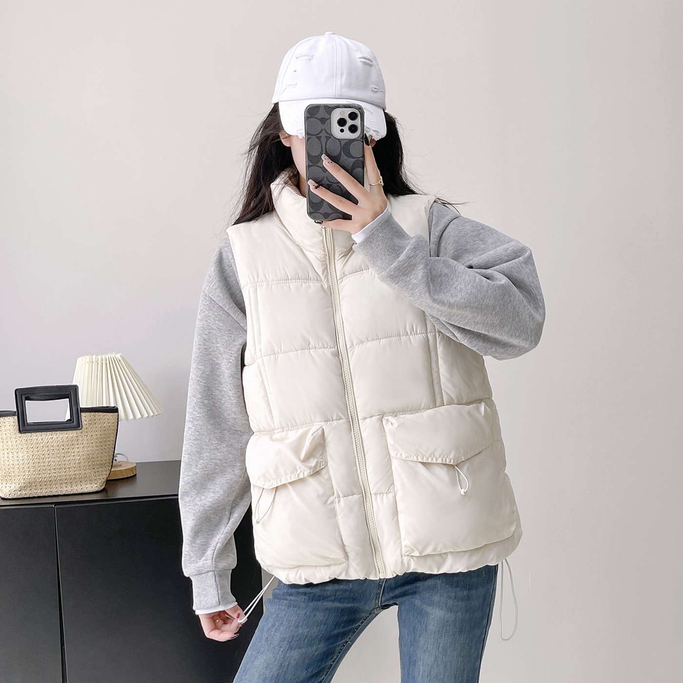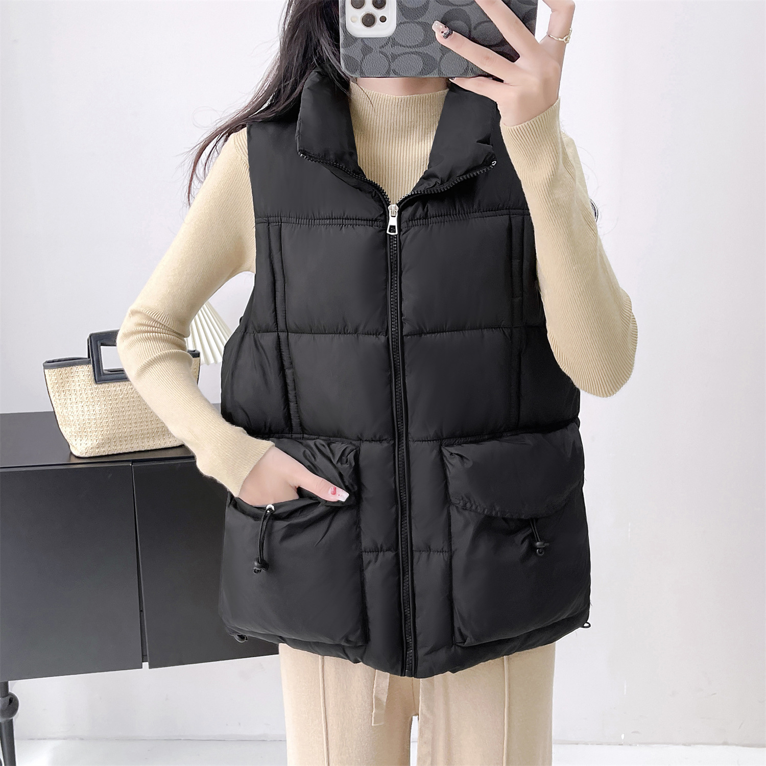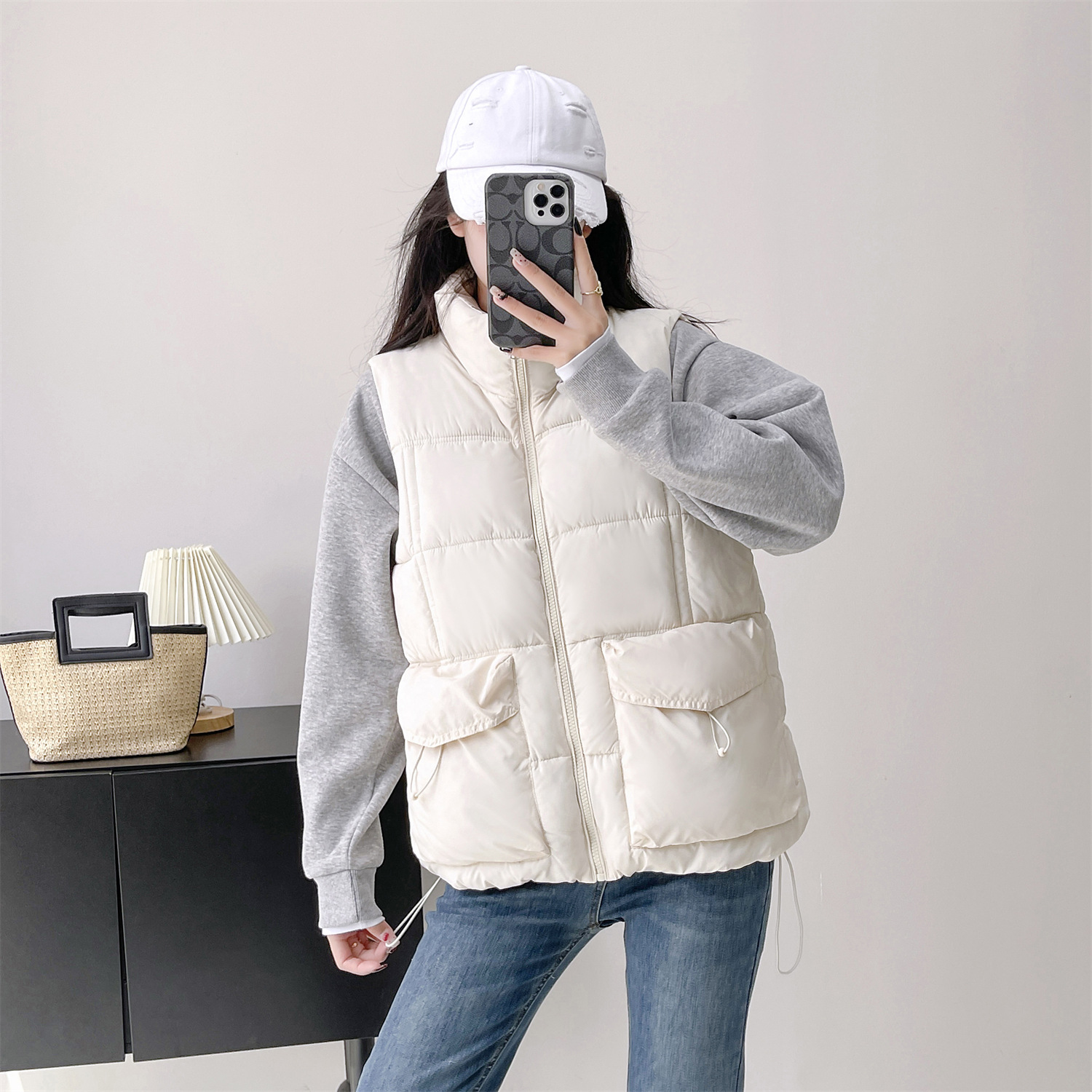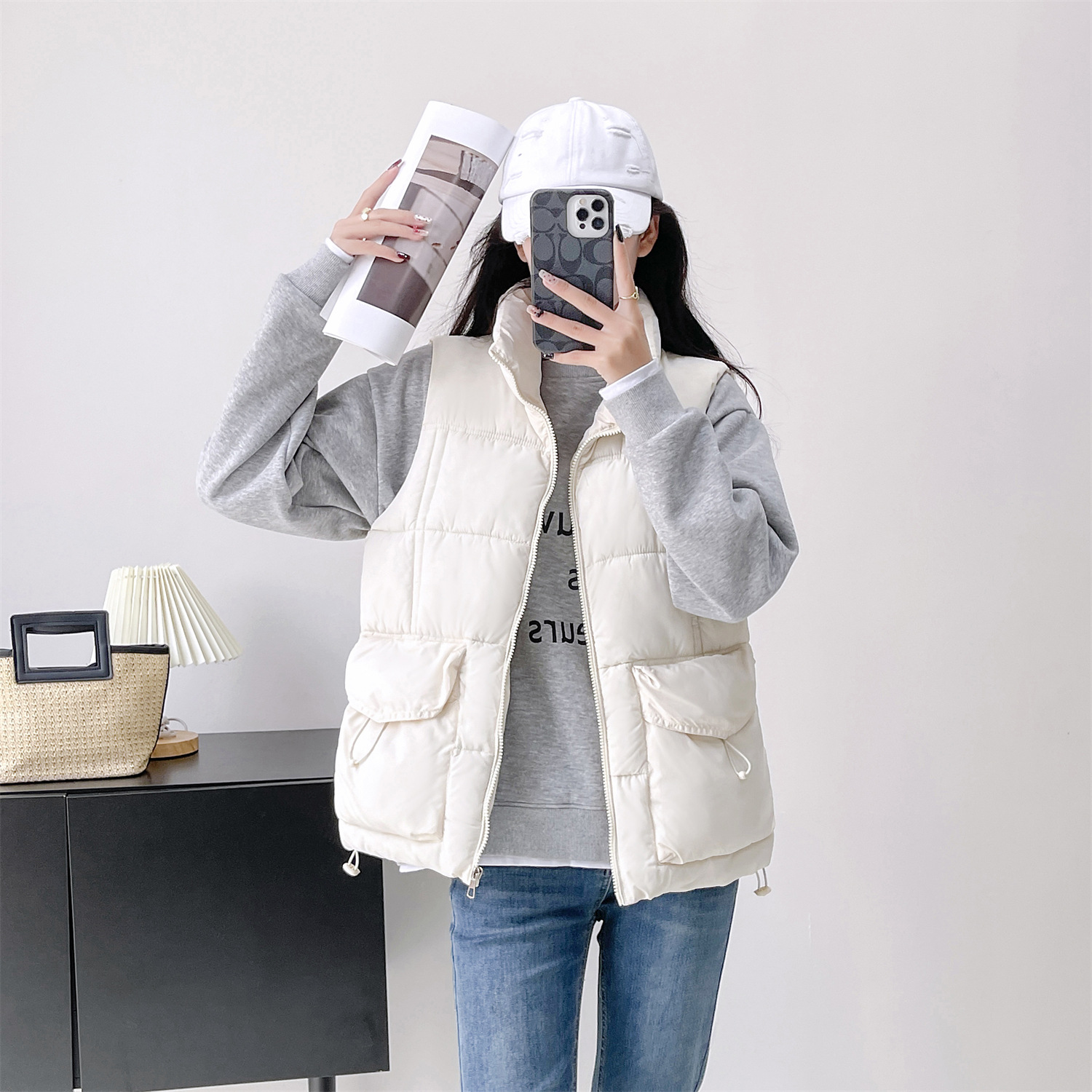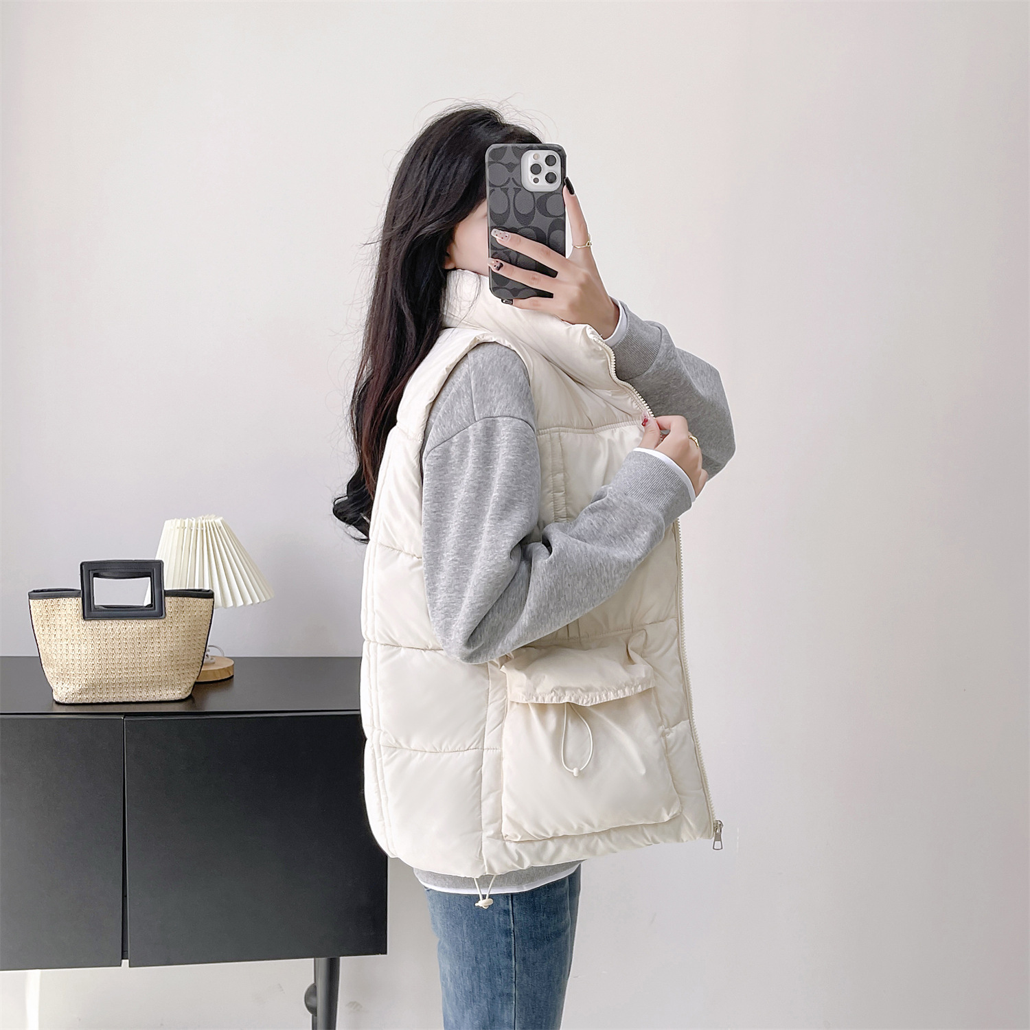 모조 다운 코튼 조끼 여성의 짧은 가을과 겨울 새로운 한국 스타일 느슨한 수직 칼라 조끼 웨이스트 코트 유행 여성 의류스토어 가기