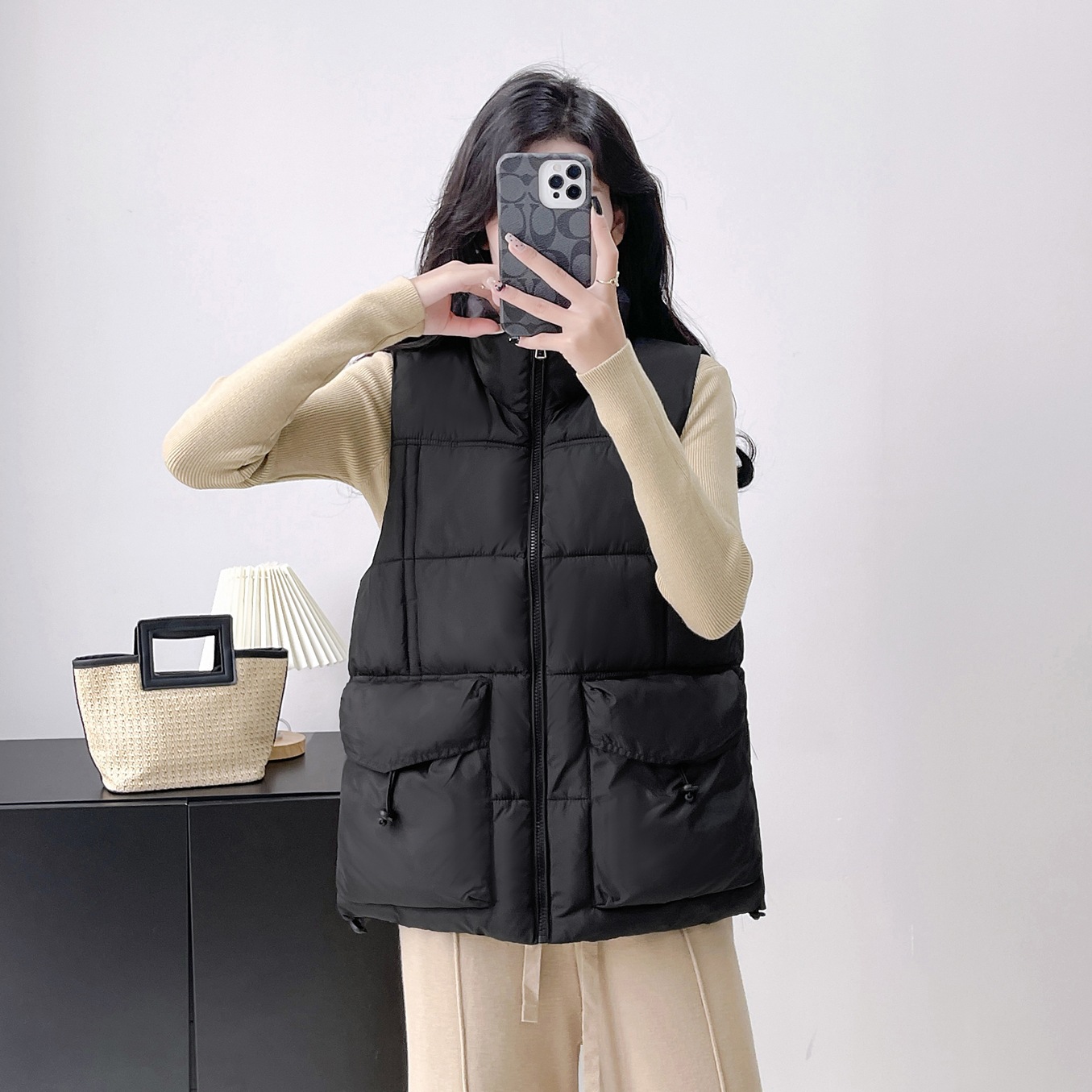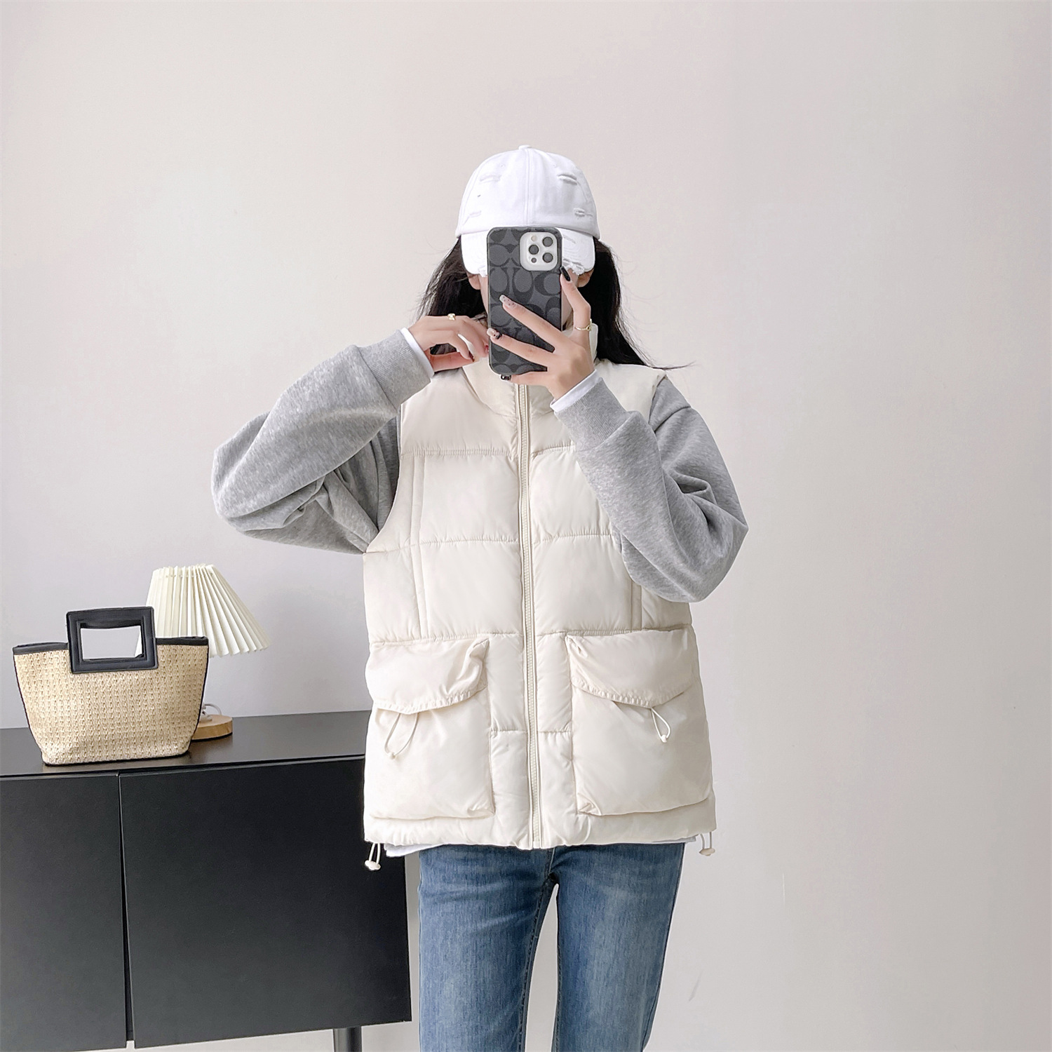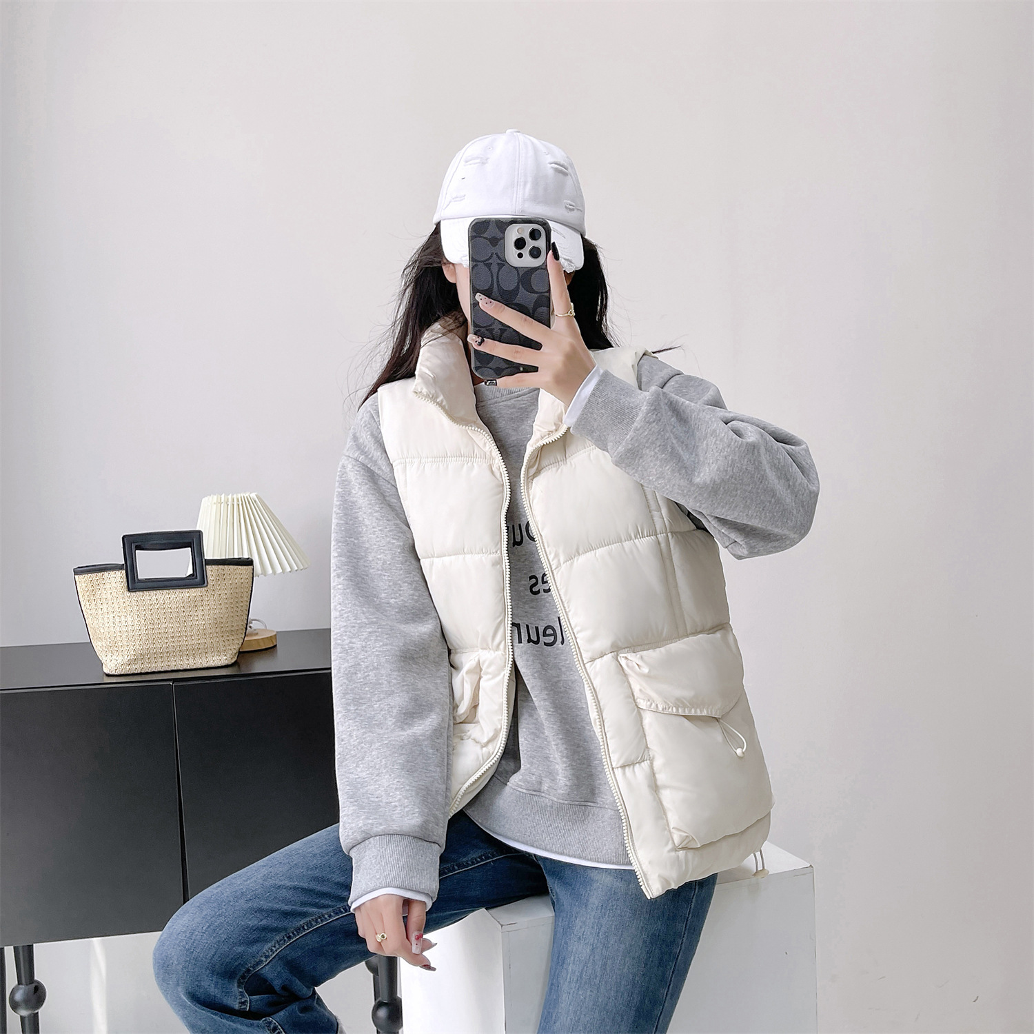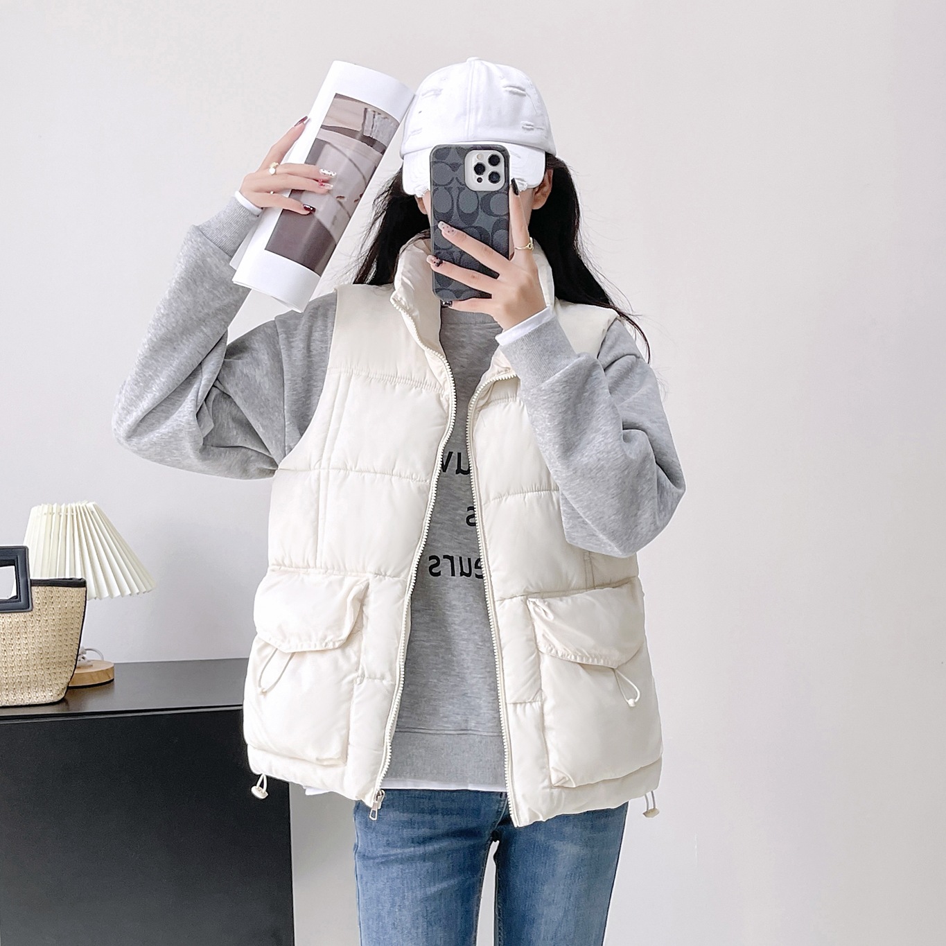 모조 다운 코튼 조끼 여성의 짧은 가을과 겨울 새로운 한국 스타일 느슨한 수직 칼라 조끼 웨이스트 코트 유행 여성 의류스토어 가기