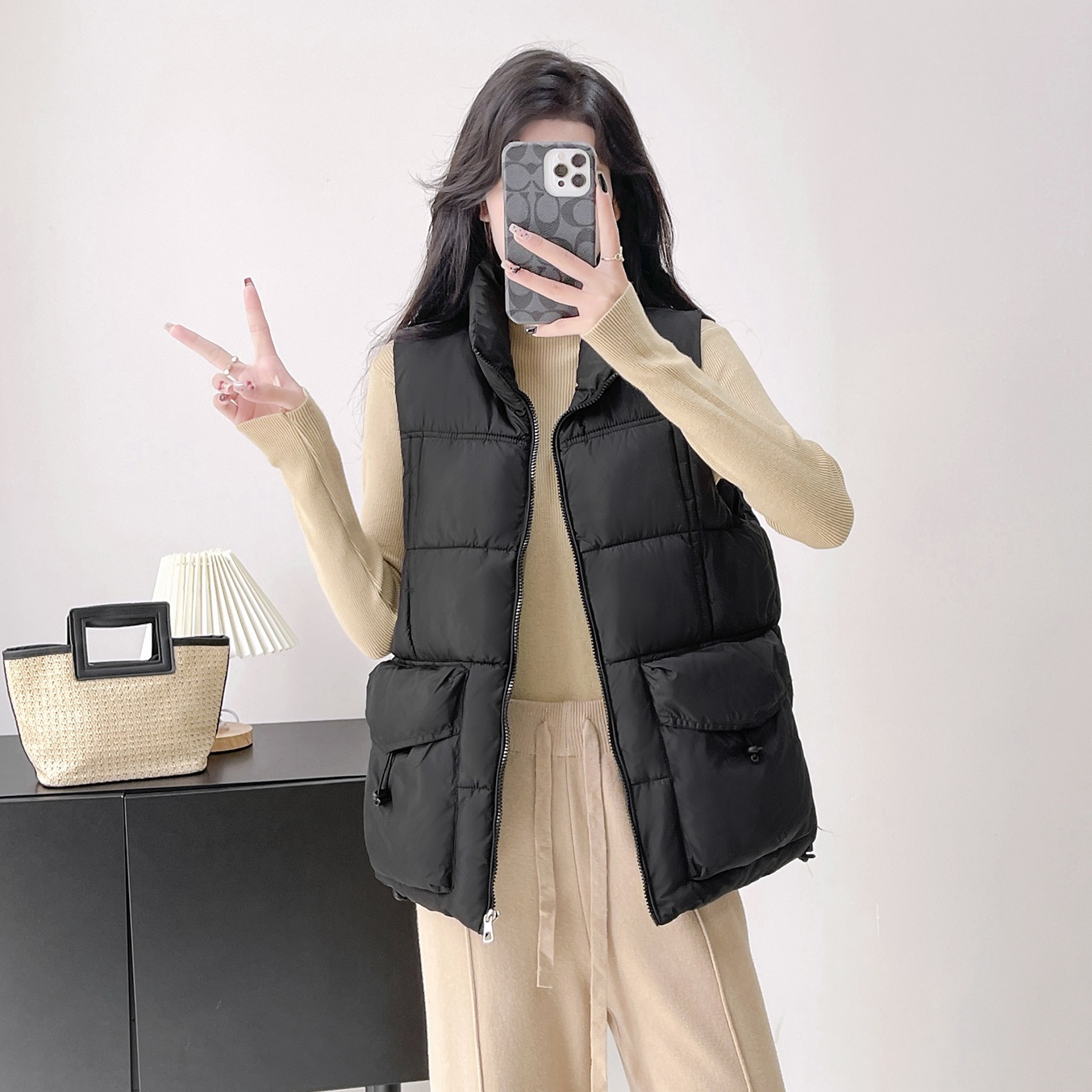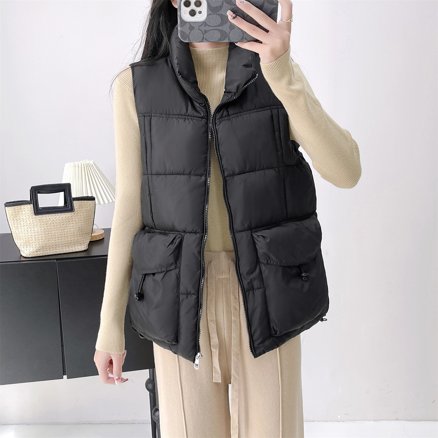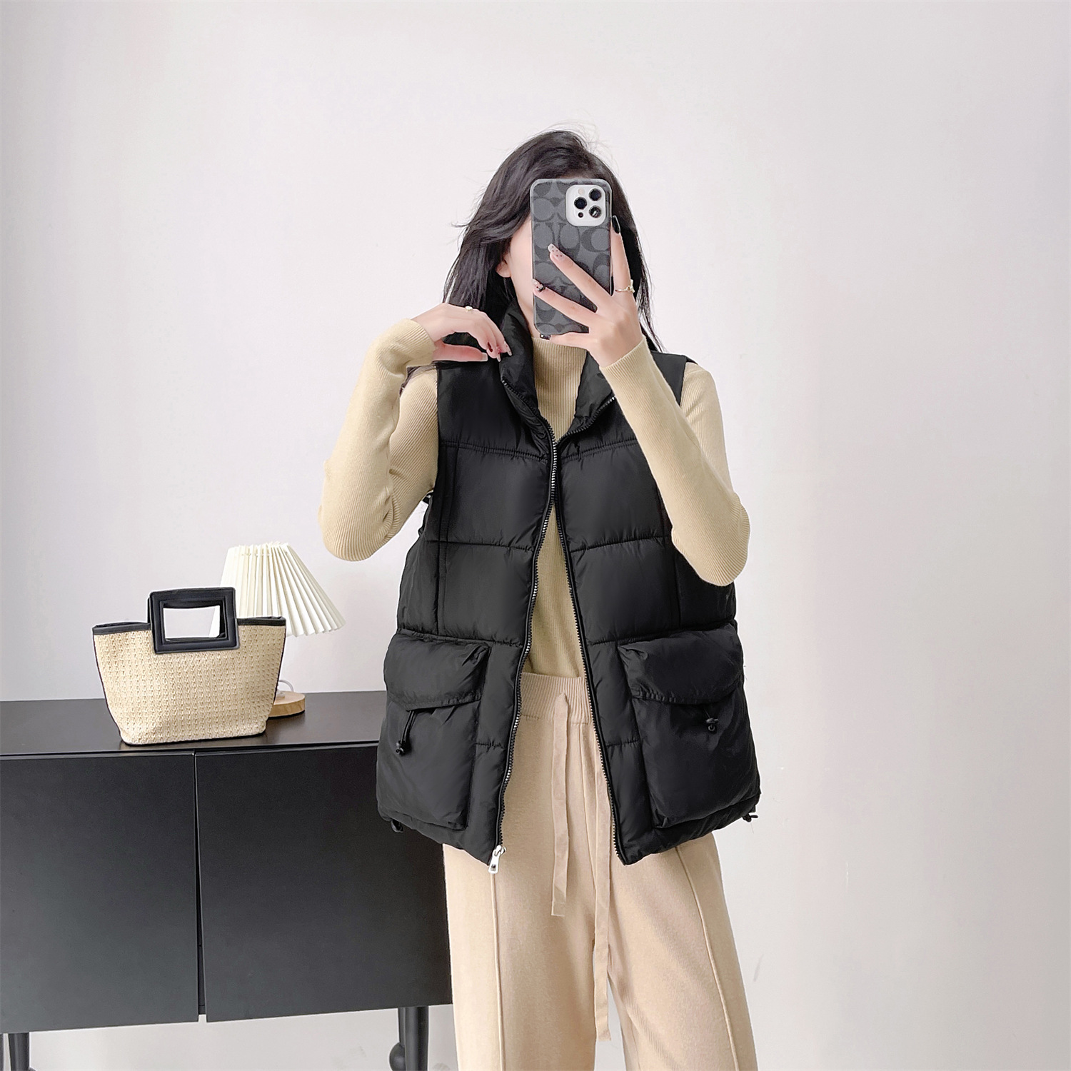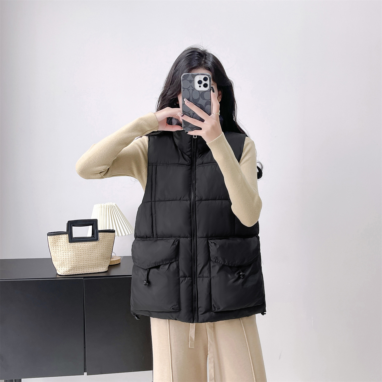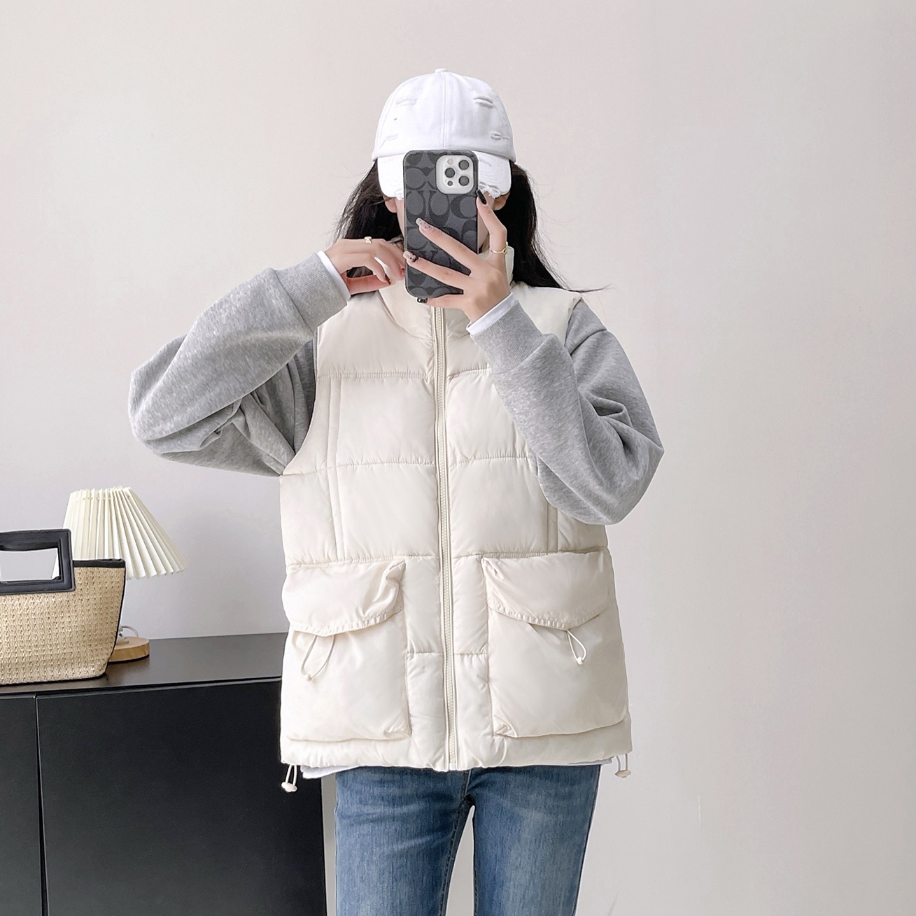 모조 다운 코튼 조끼 여성의 짧은 가을과 겨울 새로운 한국 스타일 느슨한 수직 칼라 조끼 웨이스트 코트 유행 여성 의류스토어 가기